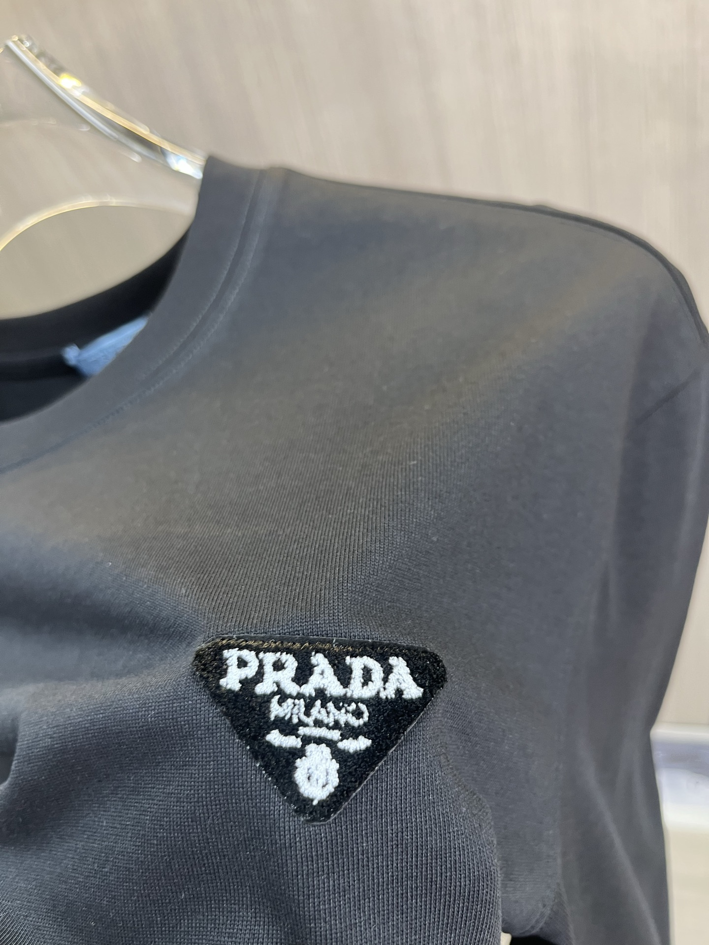这款衣服是AAAAA 1:1 质量 (非常棒). 使用了和原版一模一样的材料. 商标部分也保持了和普拉达/Prada一样. 图片拍摄是实物衣服拍摄, 您所收到的实物保证和我们图片一模一样.