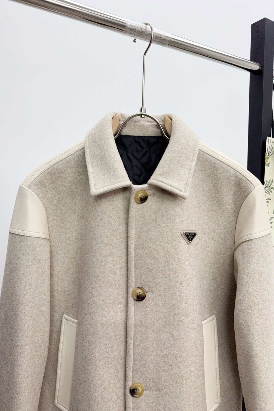 这款衣服是AAAAA 1:1 质量 (非常棒). 使用了和原版一模一样的材料. 商标部分也保持了和普拉达/Prada一样. 图片拍摄是实物衣服拍摄, 您所收到的实物保证和我们图片一模一样.