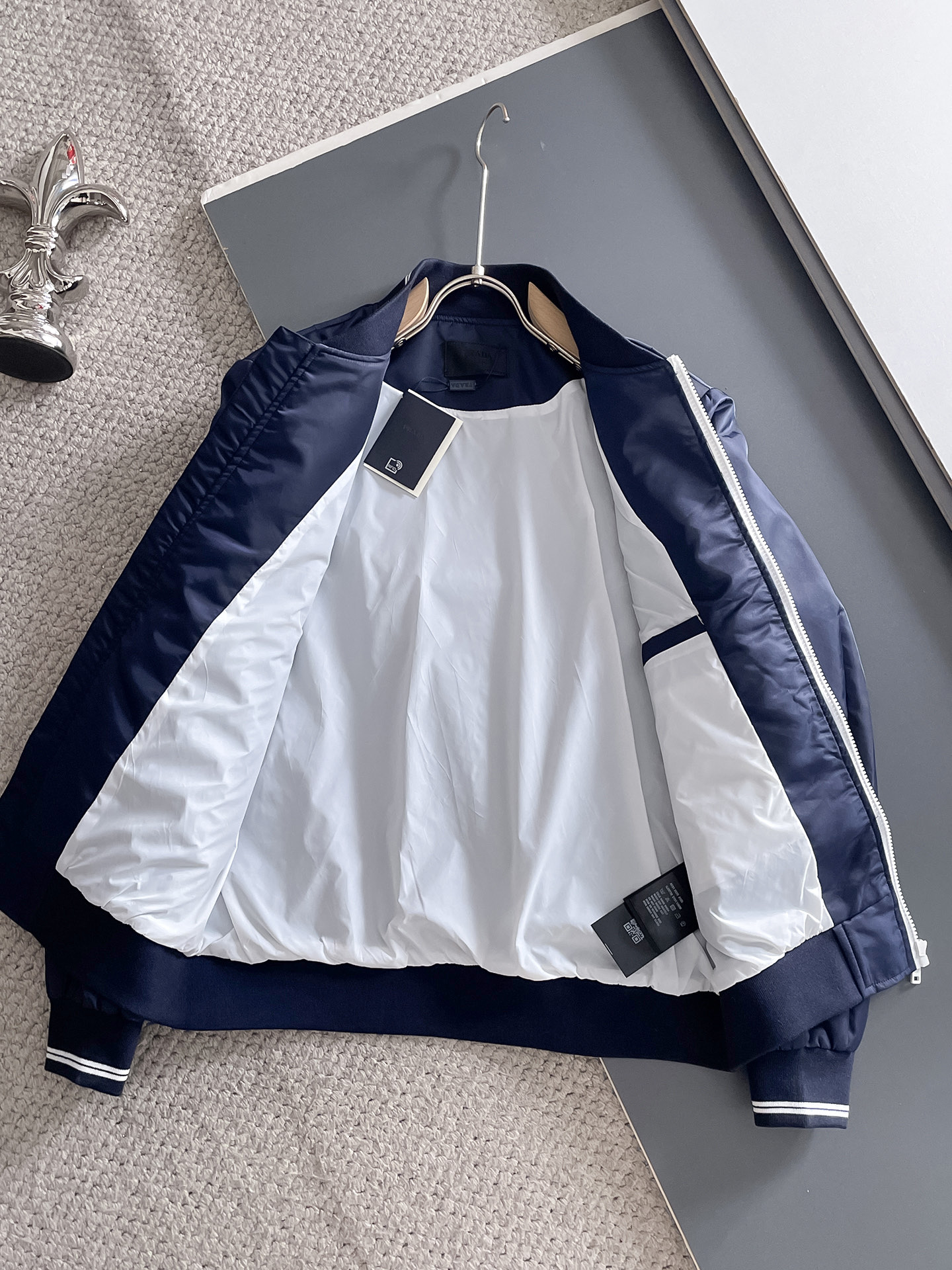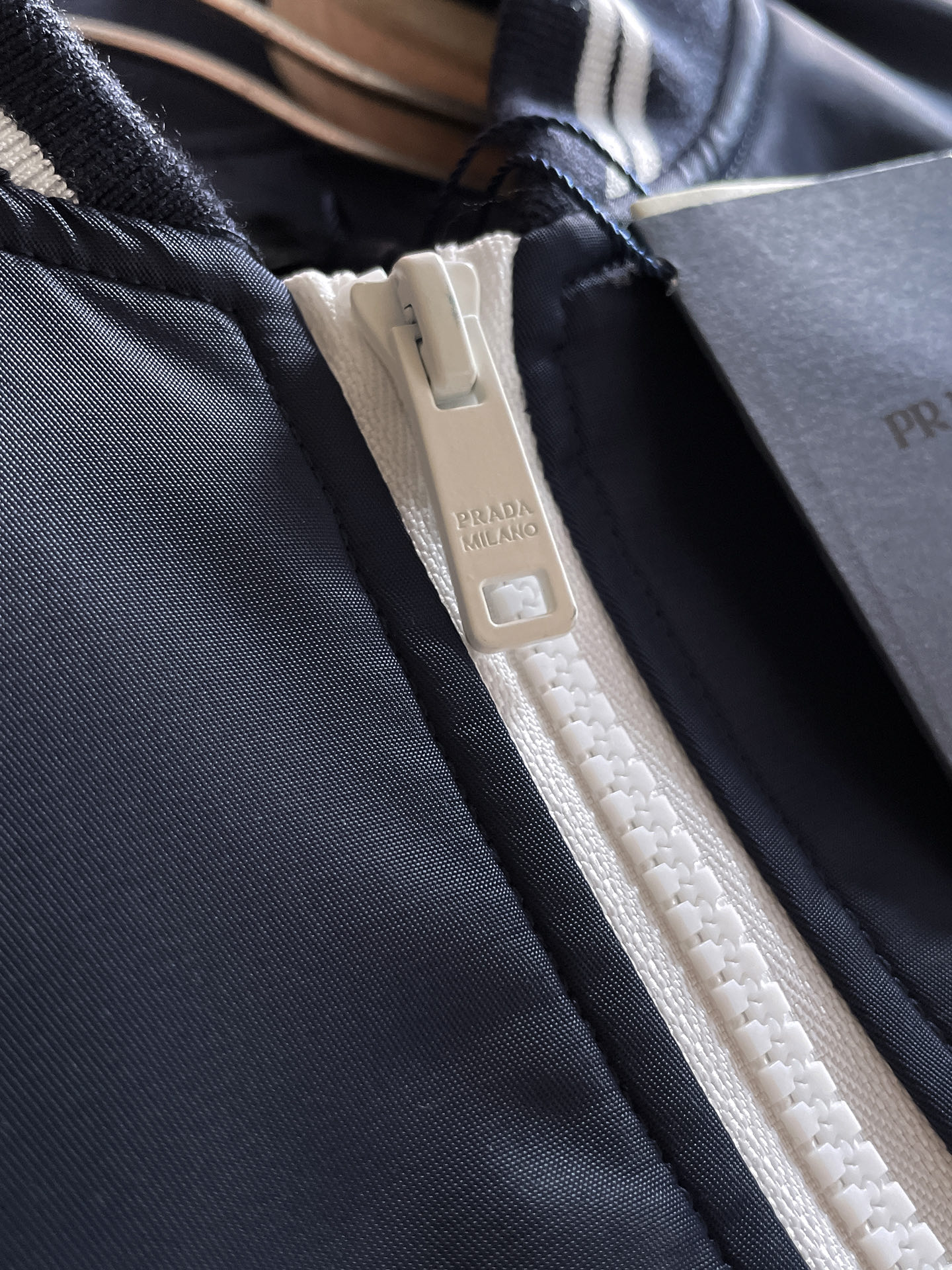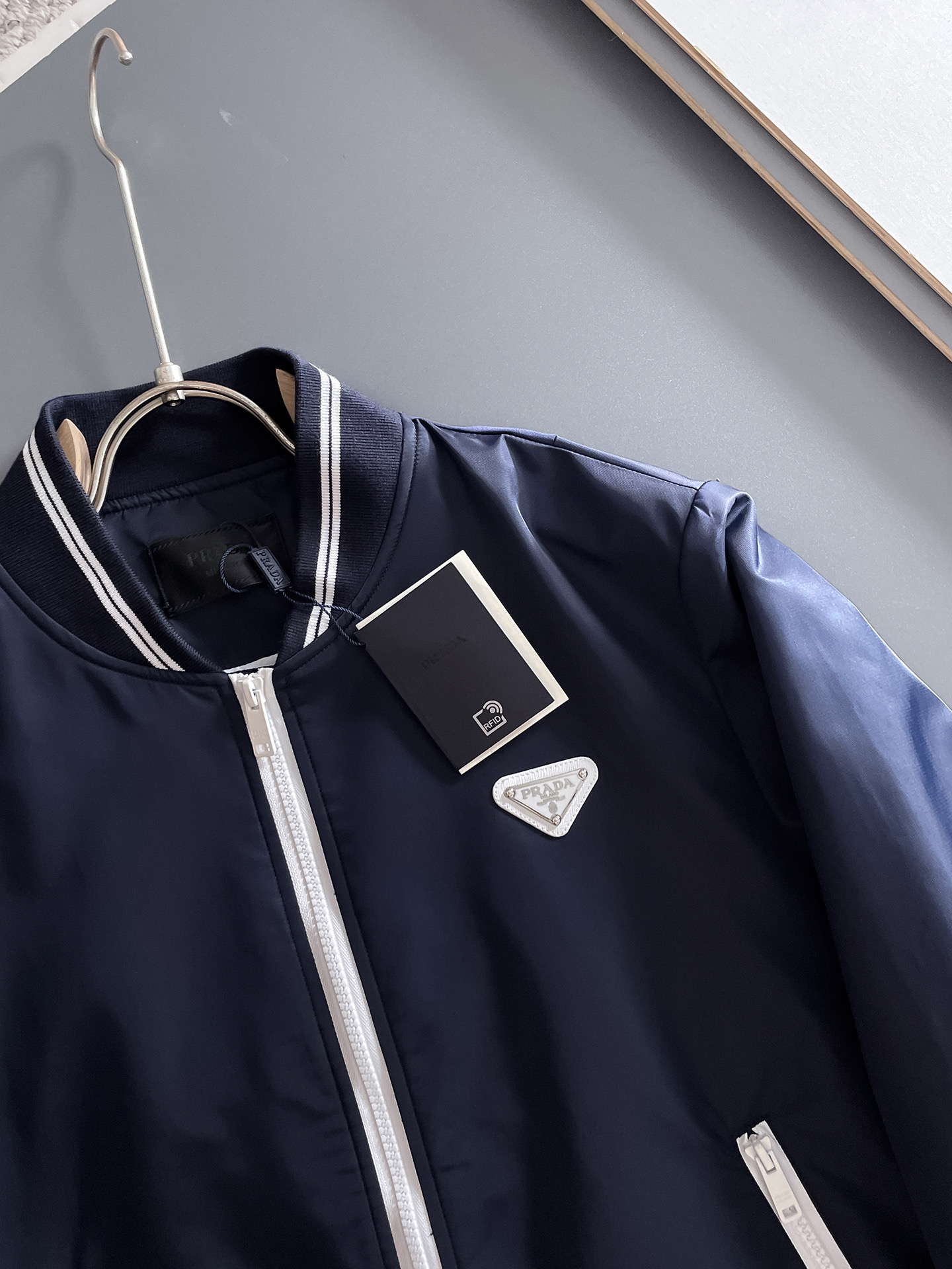 这款衣服是AAAAA 1:1 质量 (非常棒). 使用了和原版一模一样的材料. 商标部分也保持了和普拉达/Prada一样. 图片拍摄是实物衣服拍摄, 您所收到的实物保证和我们图片一模一样.