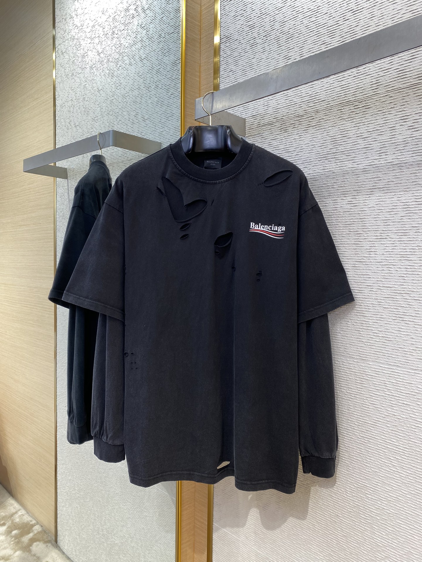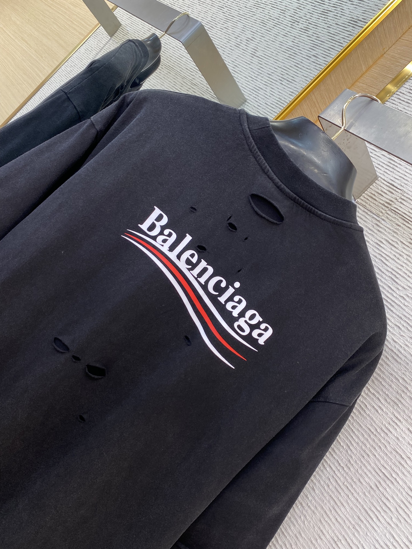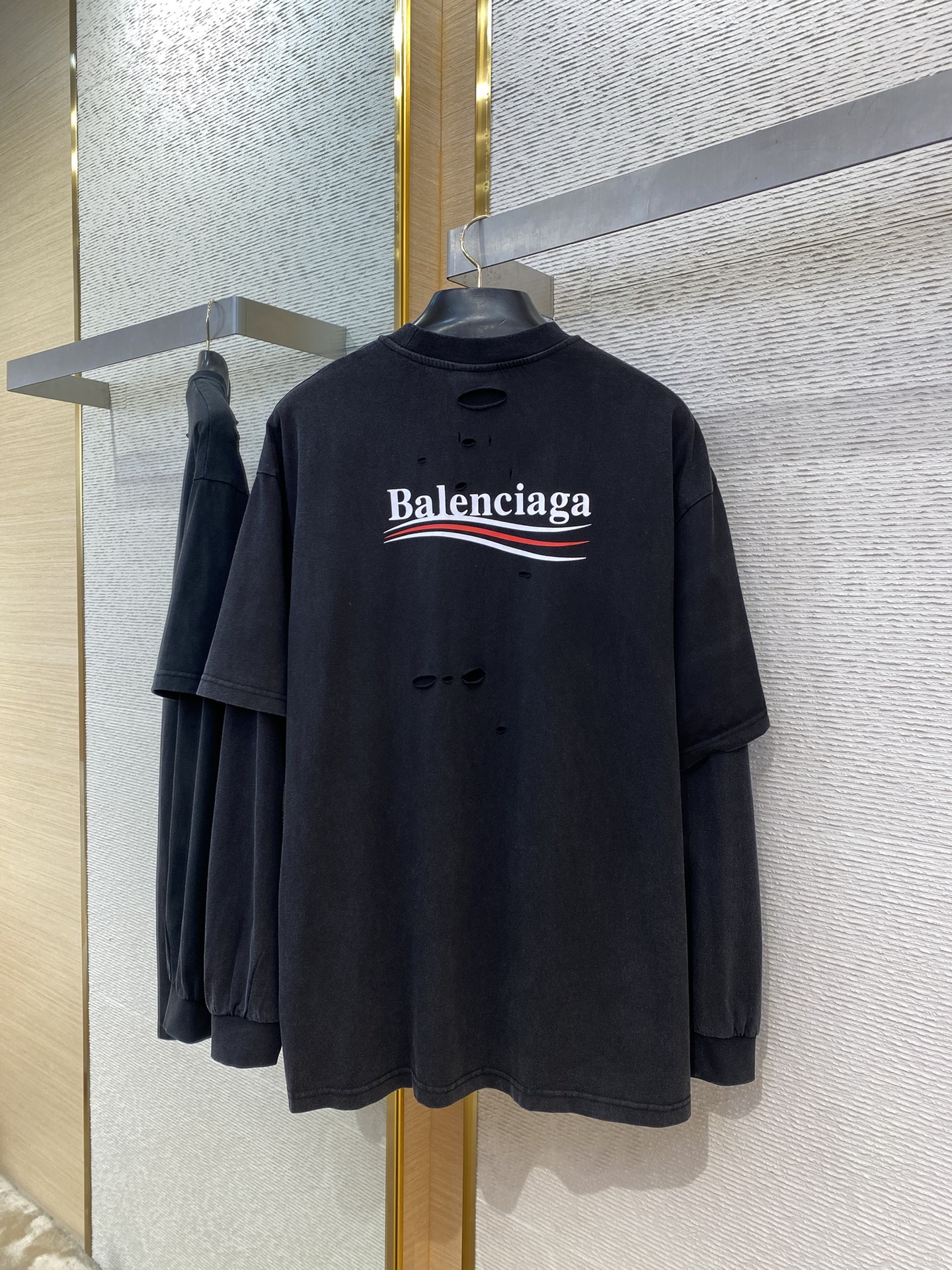 这款衣服是AAAAA 1:1 质量 (非常棒). 使用了和原版一模一样的材料. 商标部分也保持了和巴黎世家/Balenciaga一样. 图片拍摄是实物衣服拍摄, 您所收到的实物保证和我们图片一模一样.