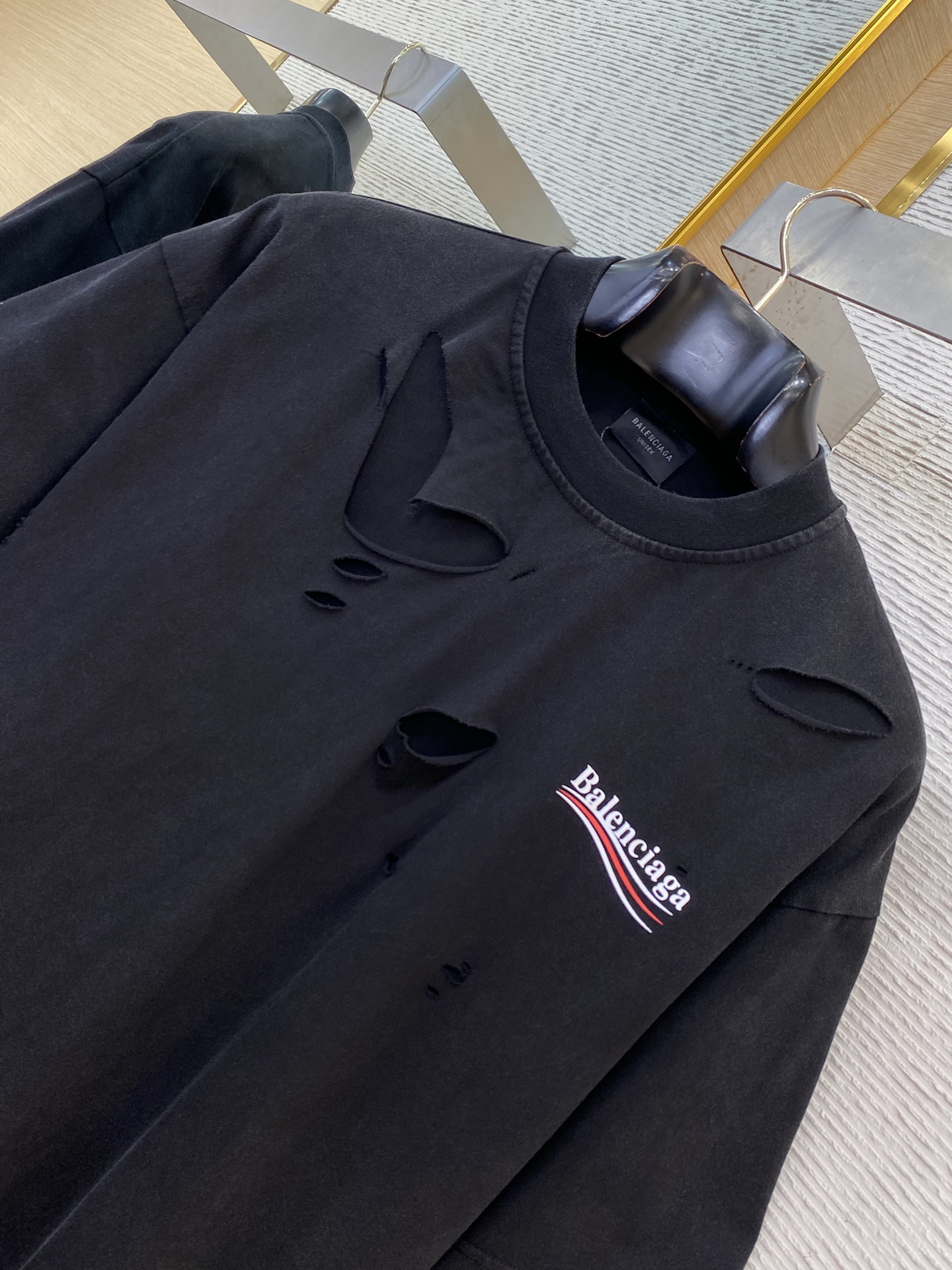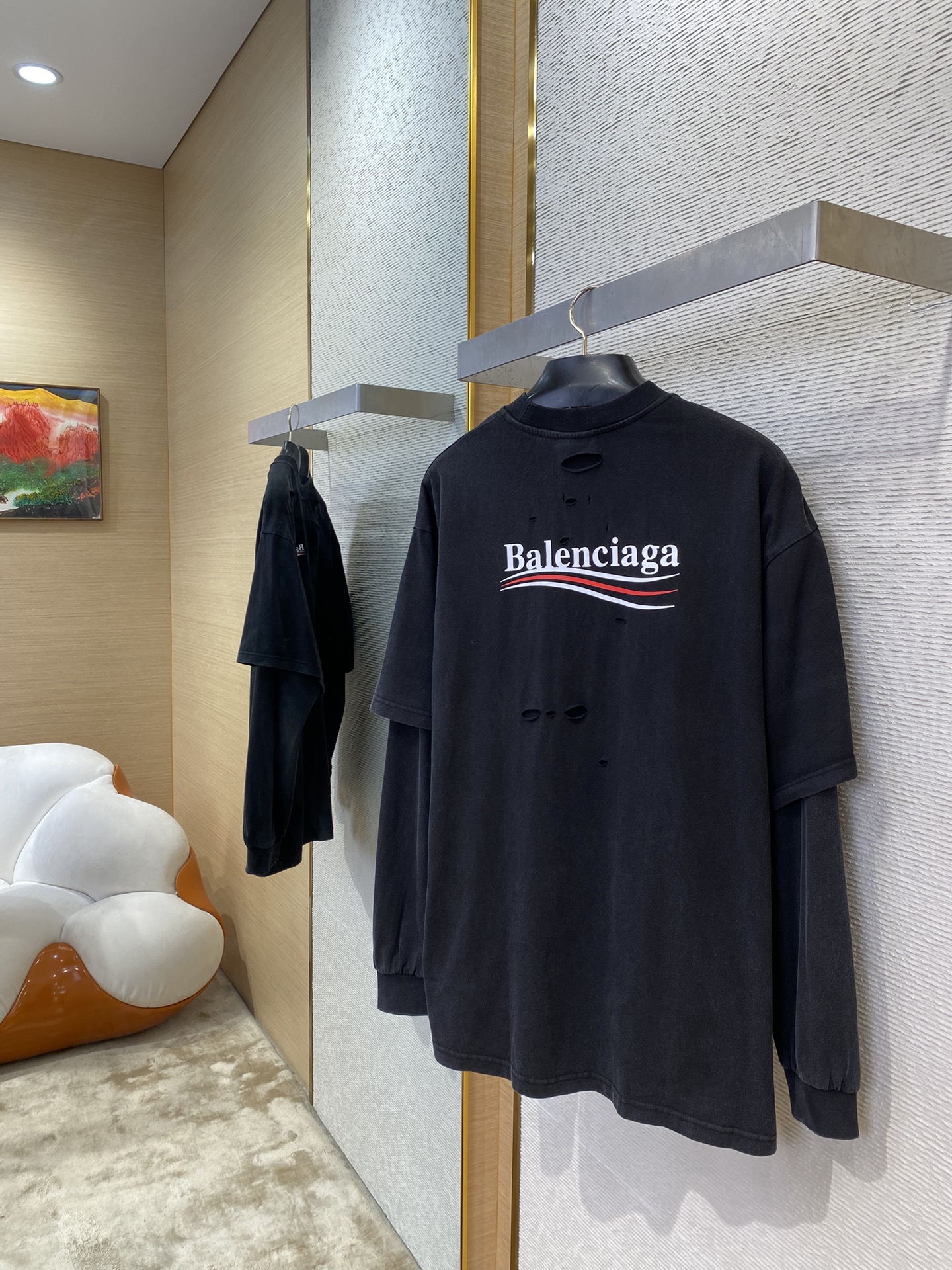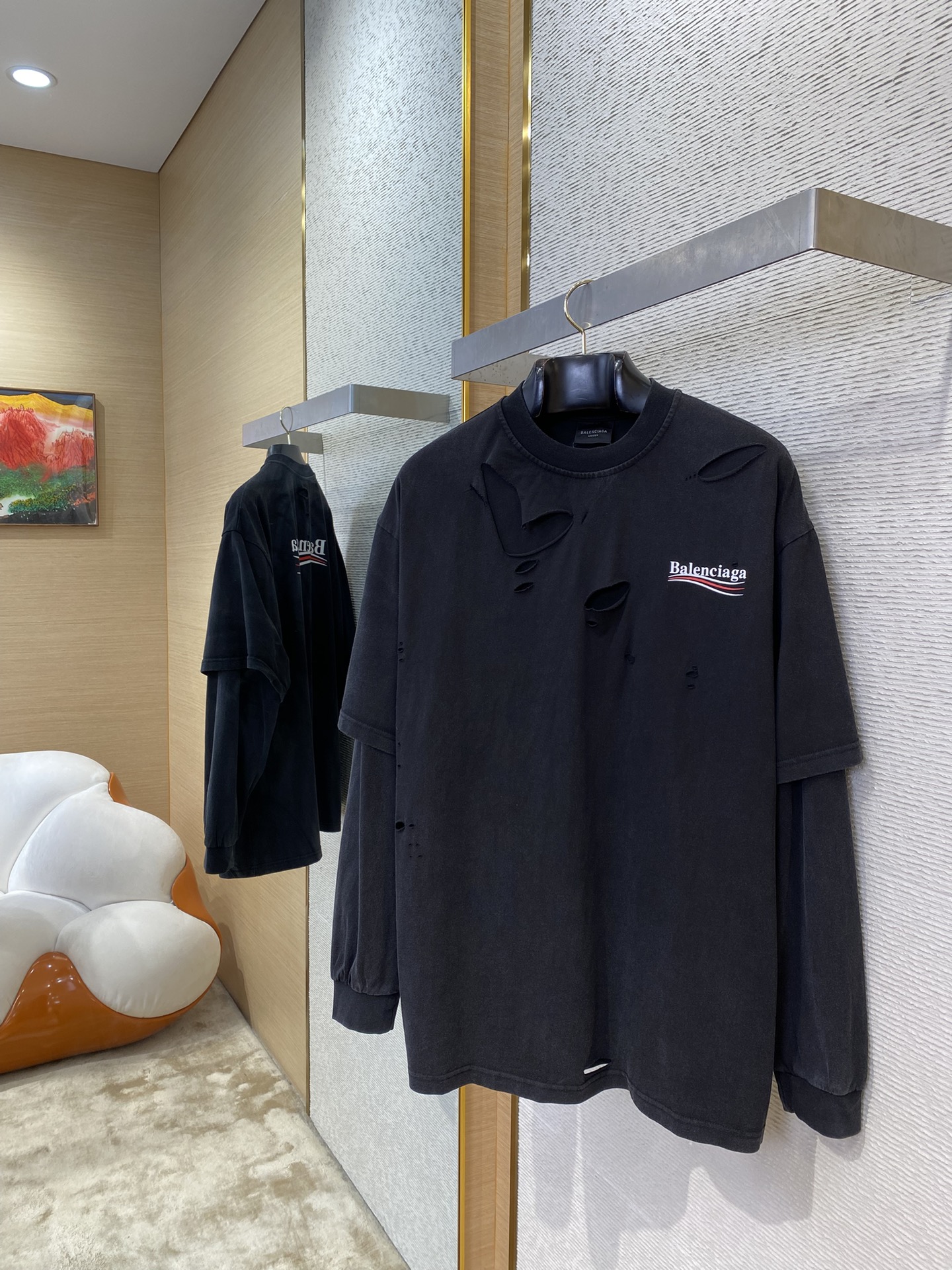 这款衣服是AAAAA 1:1 质量 (非常棒). 使用了和原版一模一样的材料. 商标部分也保持了和巴黎世家/Balenciaga一样. 图片拍摄是实物衣服拍摄, 您所收到的实物保证和我们图片一模一样.