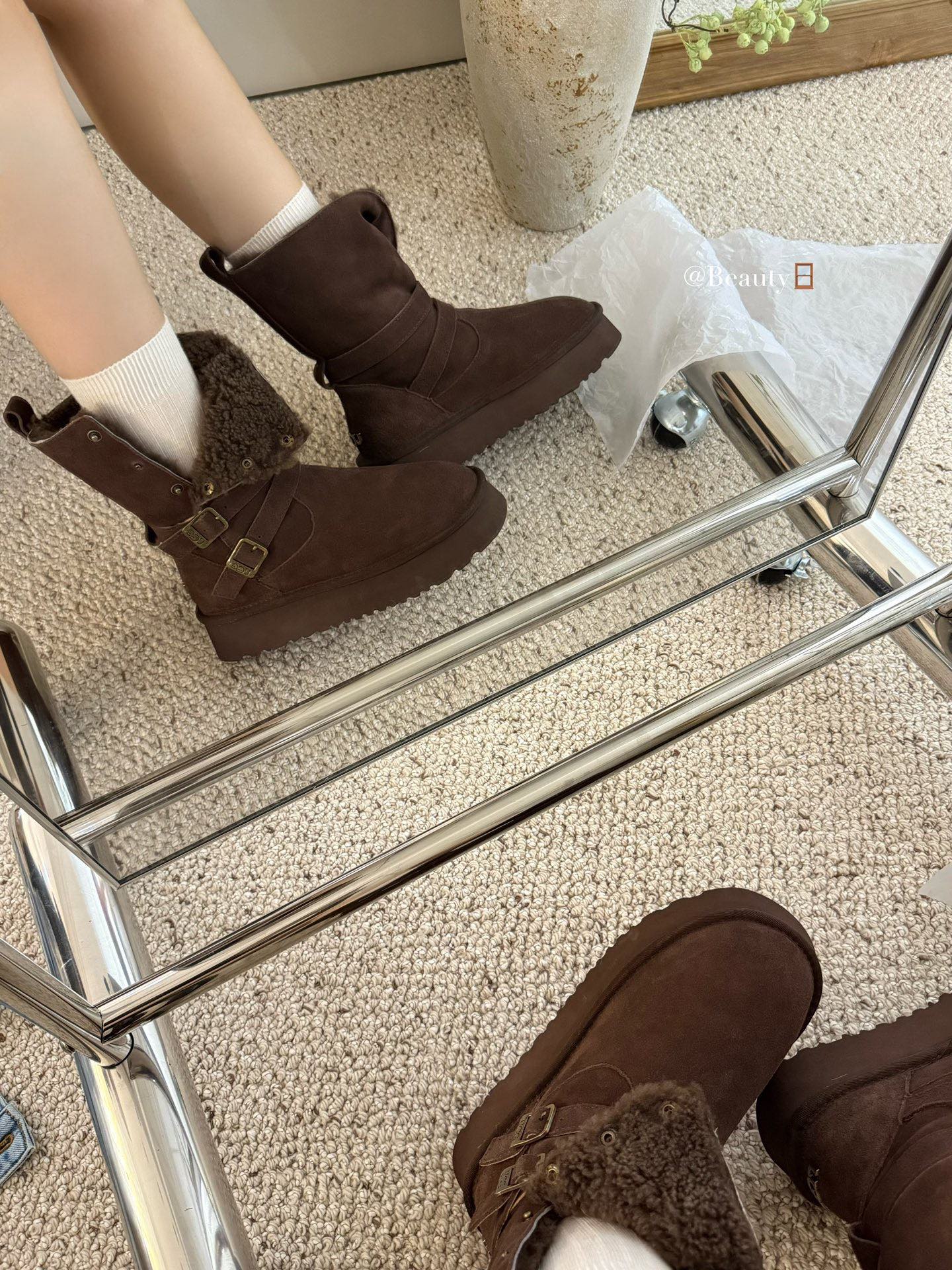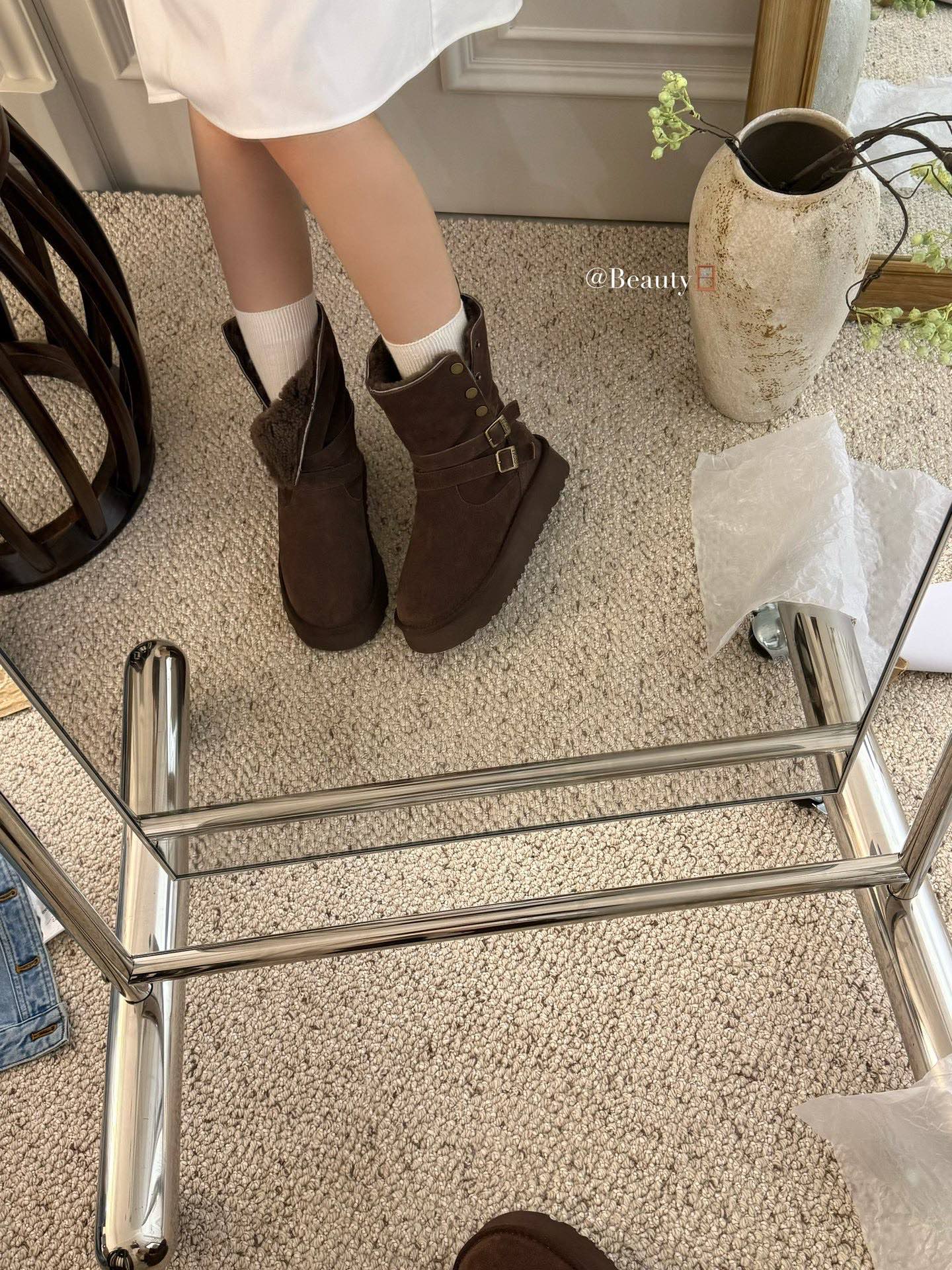 这款鞋子是AAAAA 1:1 质量 (非常棒). 使用了和原版一模一样的材料. 商标部分也保持了和UGG雪地靴一样. 图片拍摄是实物鞋子拍摄, 您所收到的实物保证和我们图片一模一样.