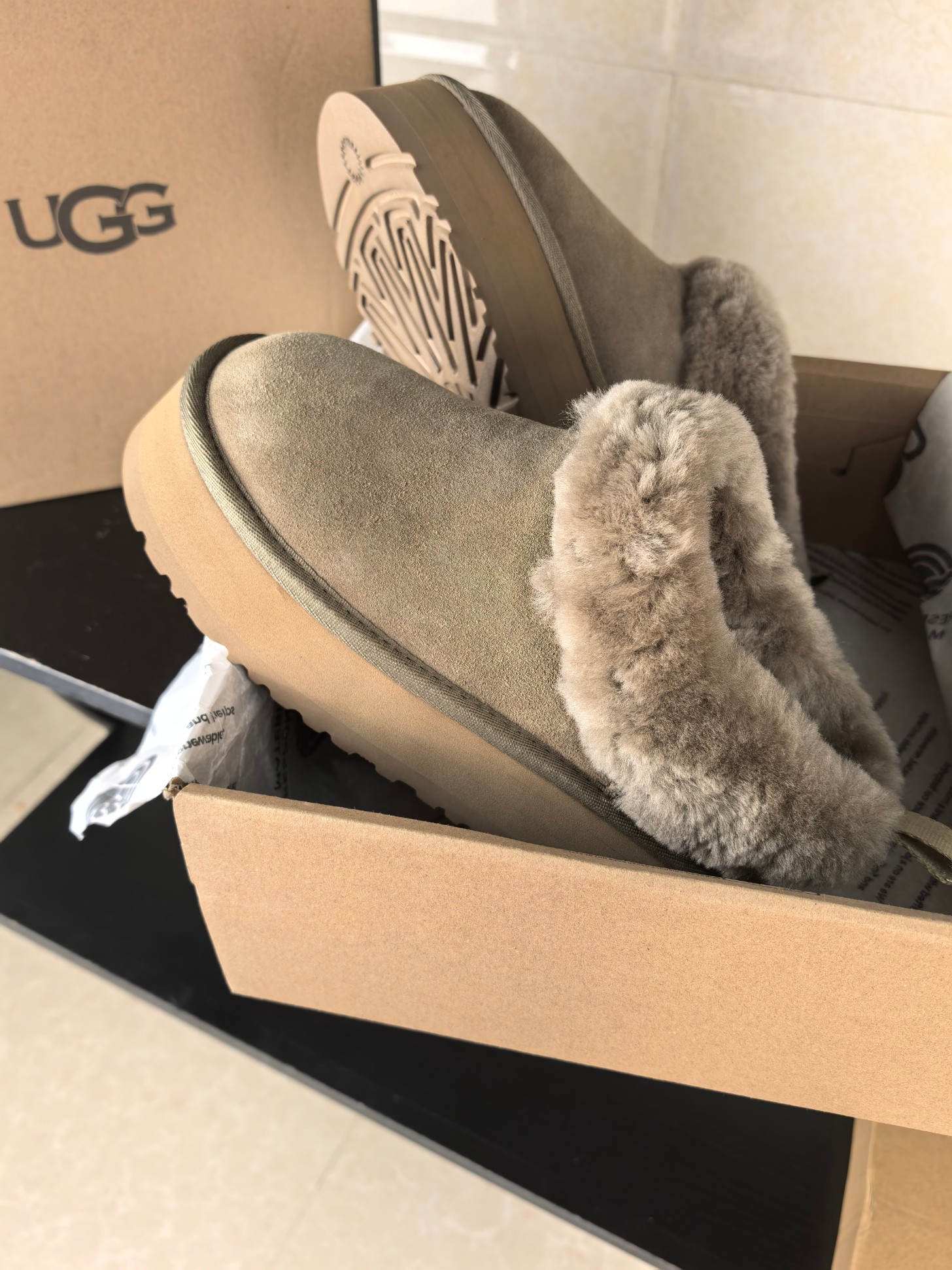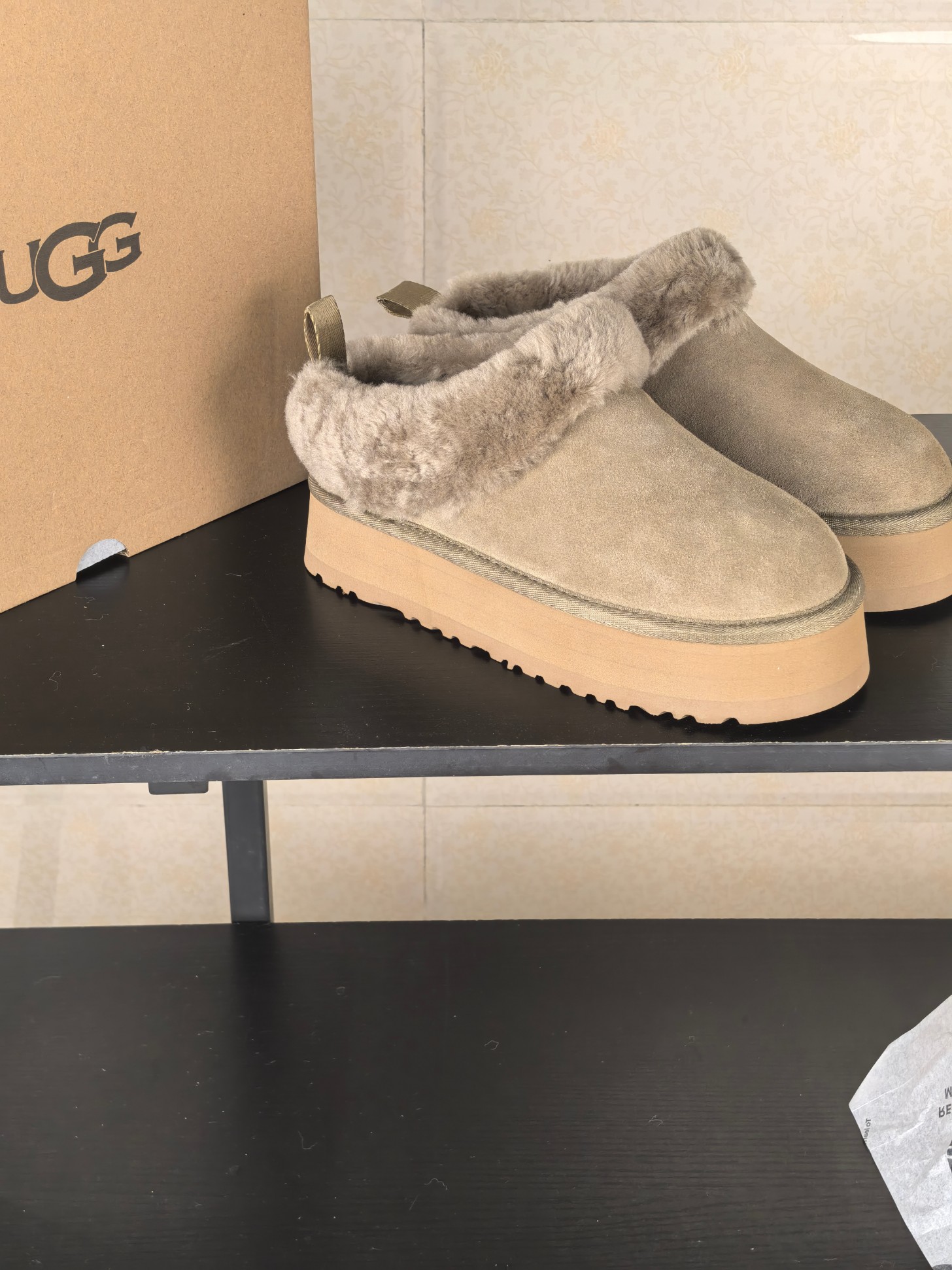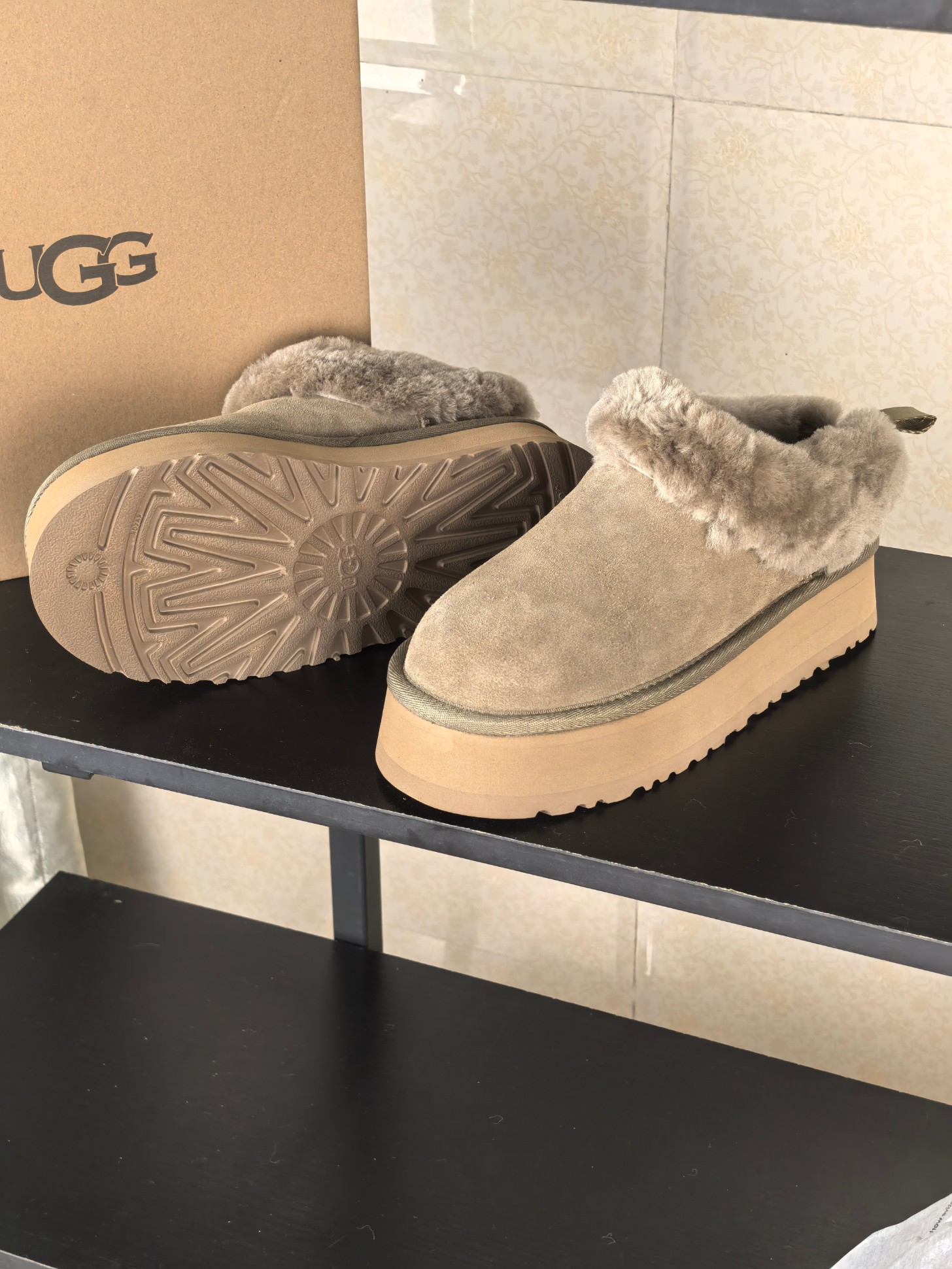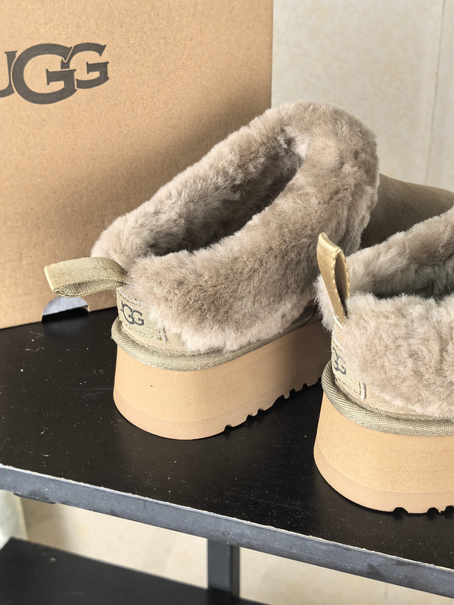 这款鞋子是AAAAA 1:1 质量 (非常棒). 使用了和原版一模一样的材料. 商标部分也保持了和UGG雪地靴一样. 图片拍摄是实物鞋子拍摄, 您所收到的实物保证和我们图片一模一样.