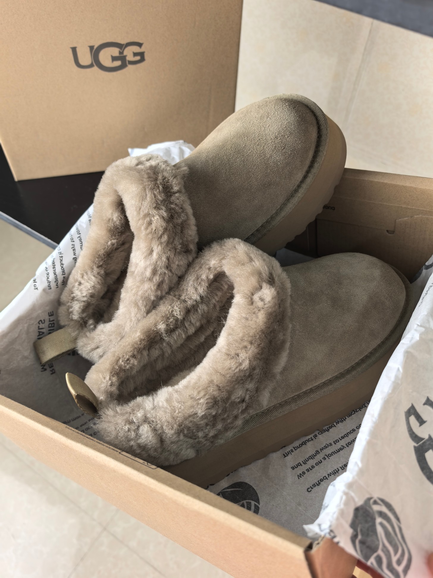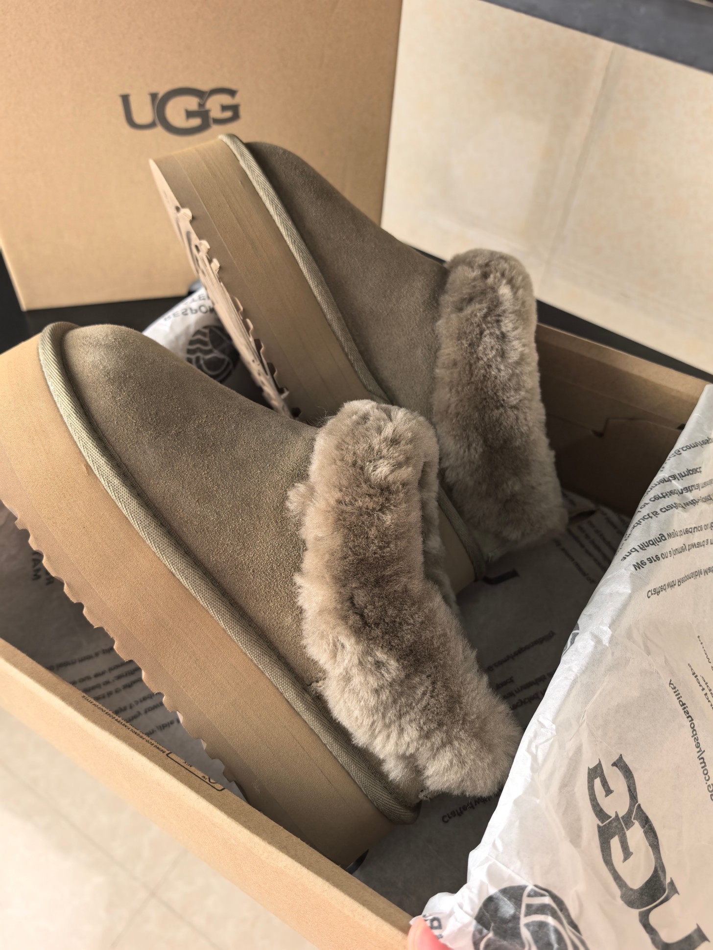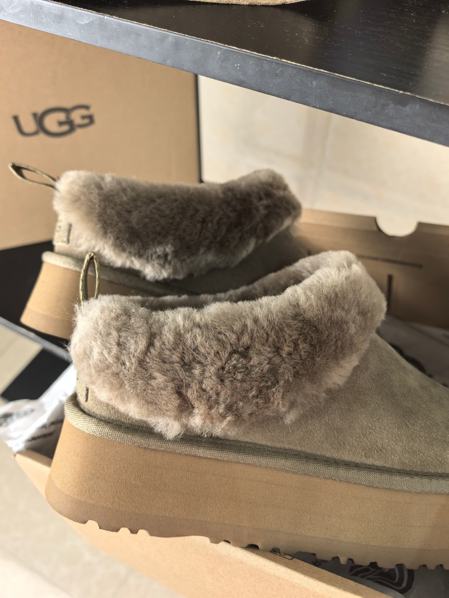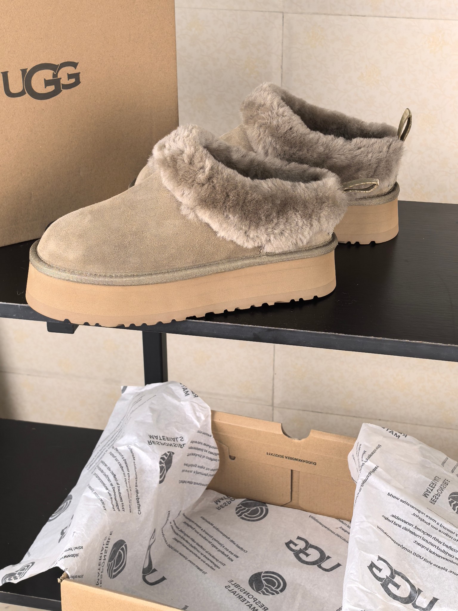 这款鞋子是AAAAA 1:1 质量 (非常棒). 使用了和原版一模一样的材料. 商标部分也保持了和UGG雪地靴一样. 图片拍摄是实物鞋子拍摄, 您所收到的实物保证和我们图片一模一样.