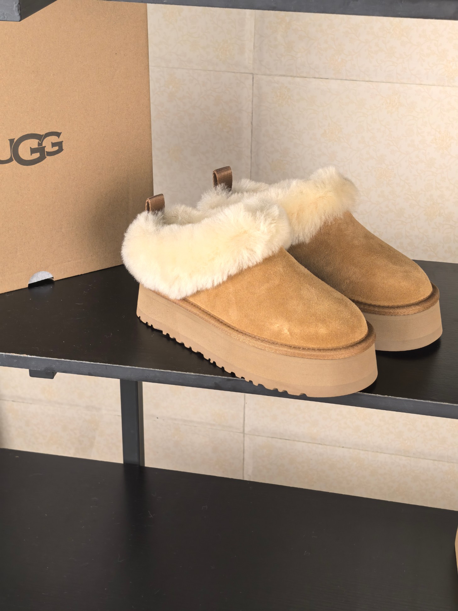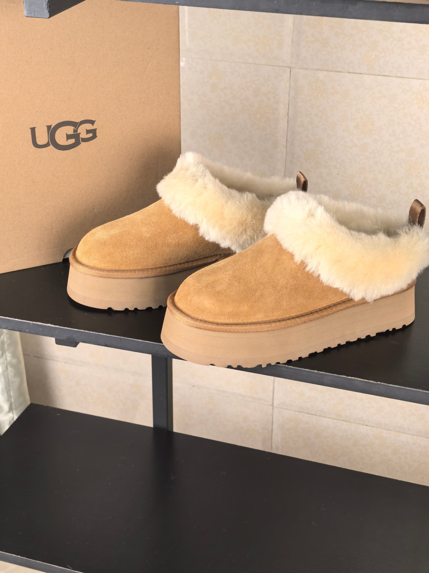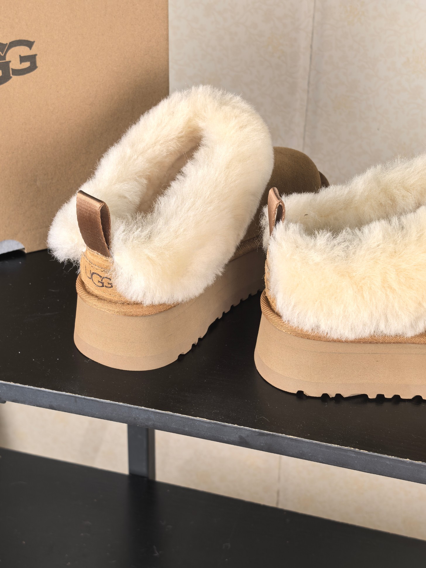 这款鞋子是AAAAA 1:1 质量 (非常棒). 使用了和原版一模一样的材料. 商标部分也保持了和UGG雪地靴一样. 图片拍摄是实物鞋子拍摄, 您所收到的实物保证和我们图片一模一样.