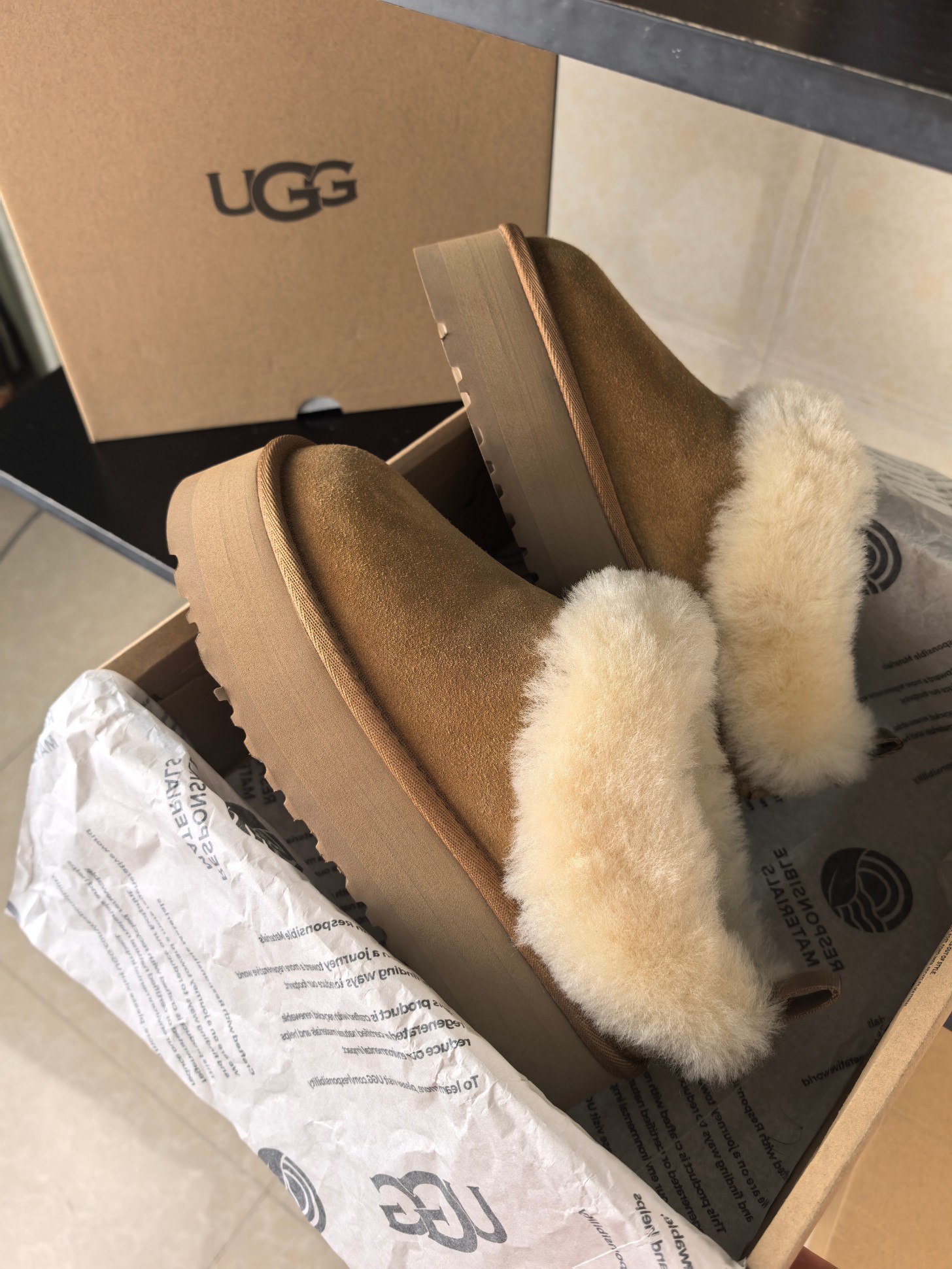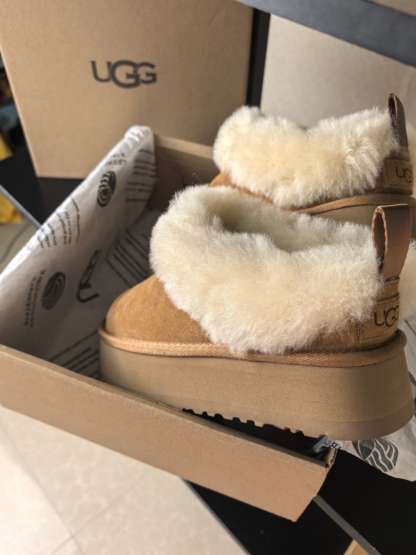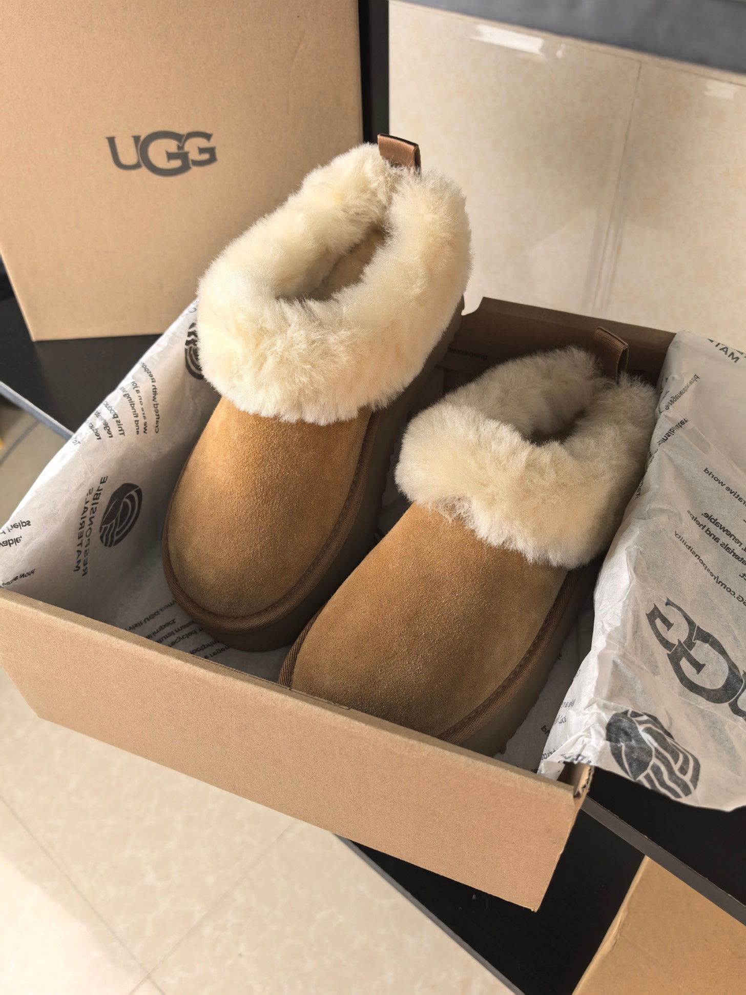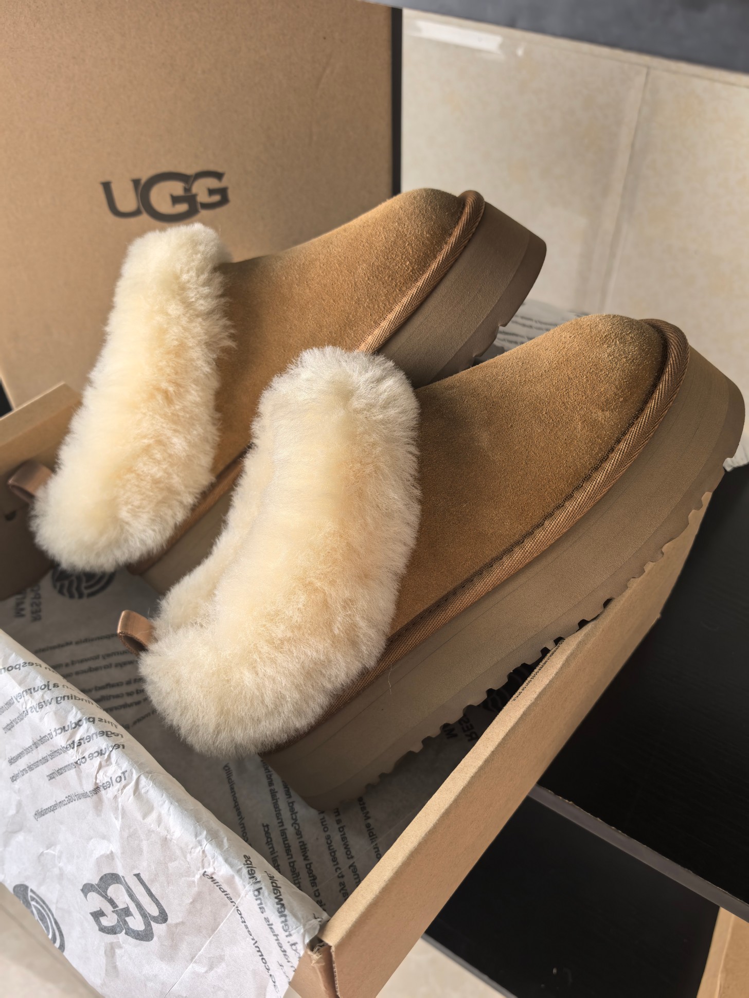 这款鞋子是AAAAA 1:1 质量 (非常棒). 使用了和原版一模一样的材料. 商标部分也保持了和UGG雪地靴一样. 图片拍摄是实物鞋子拍摄, 您所收到的实物保证和我们图片一模一样.