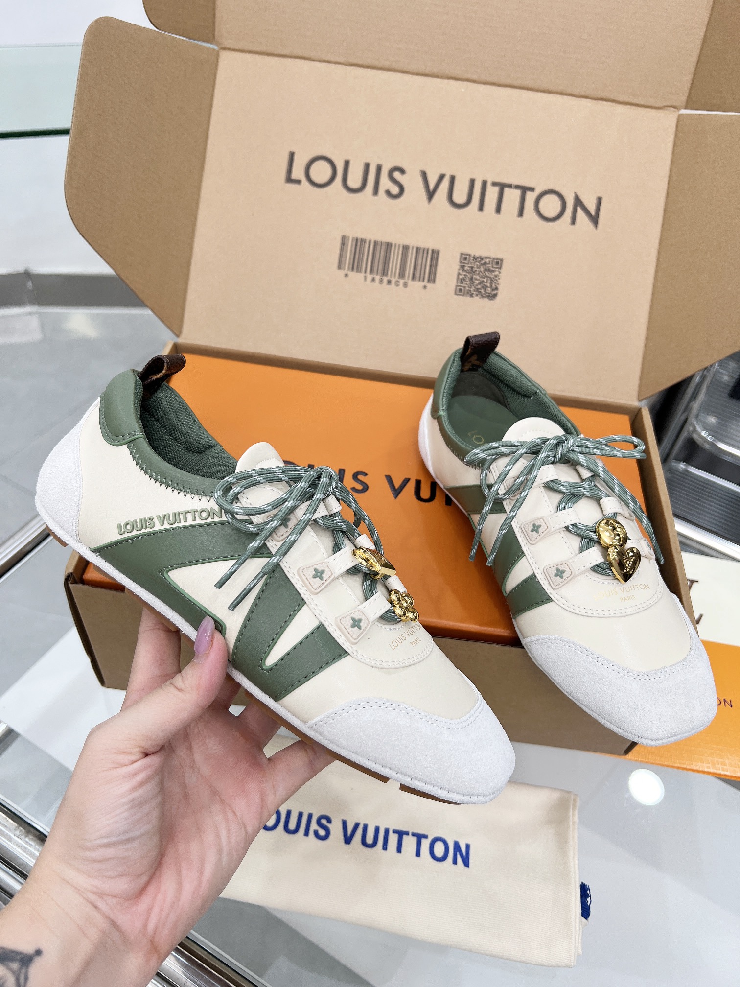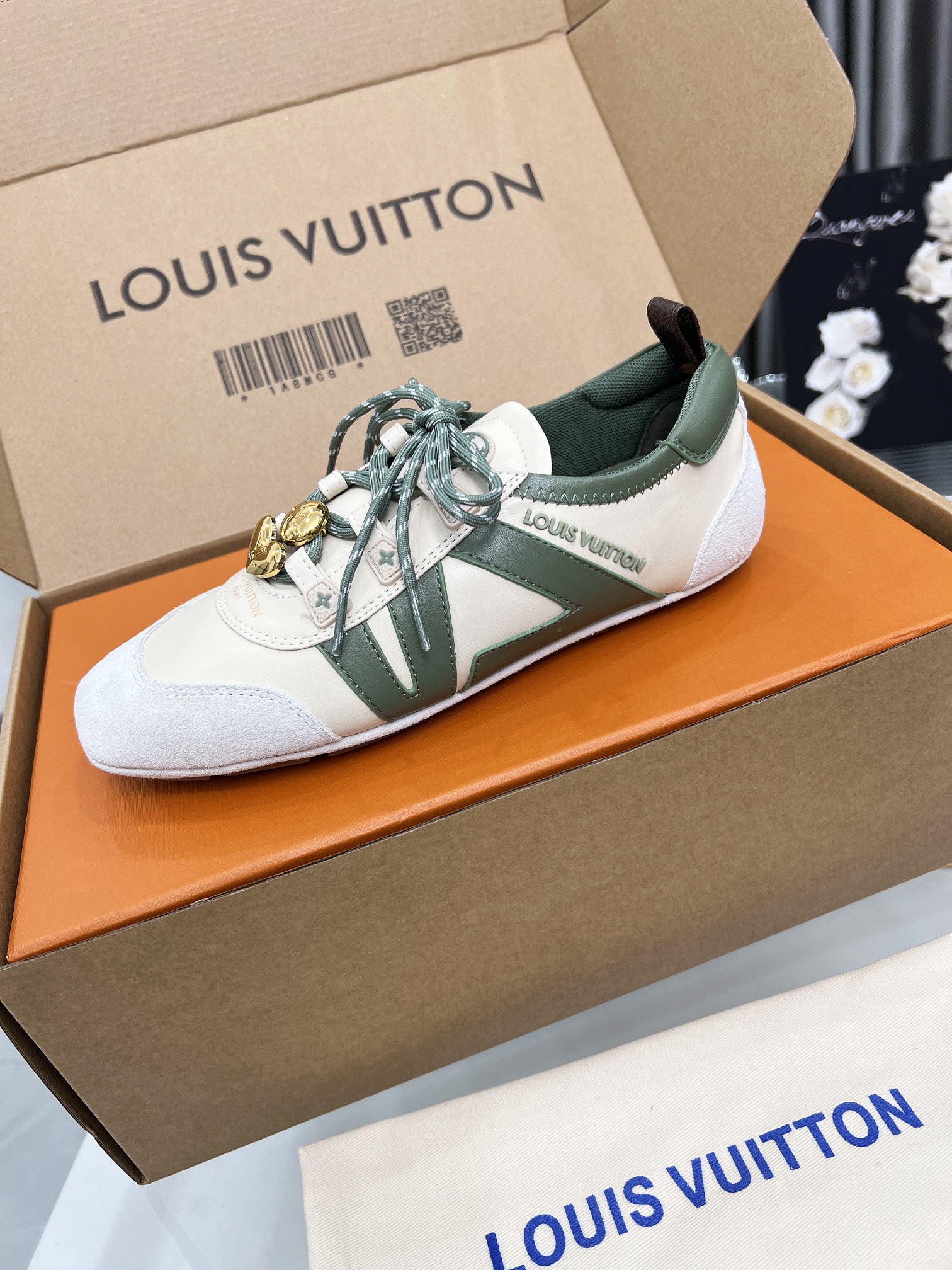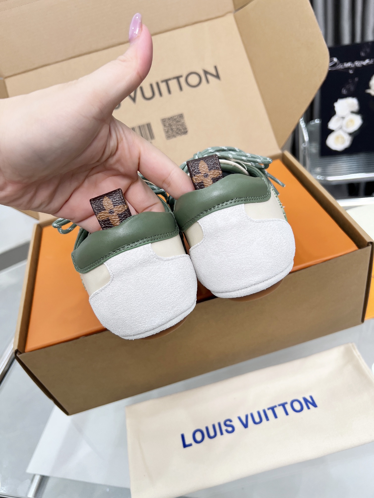 这款鞋子是AAAAA 1:1 质量 (非常棒). 使用了和原版一模一样的材料. 商标部分也保持了和路易威登/Louis Vuitton一样. 图片拍摄是实物鞋子拍摄, 您所收到的实物保证和我们图片一模一样.