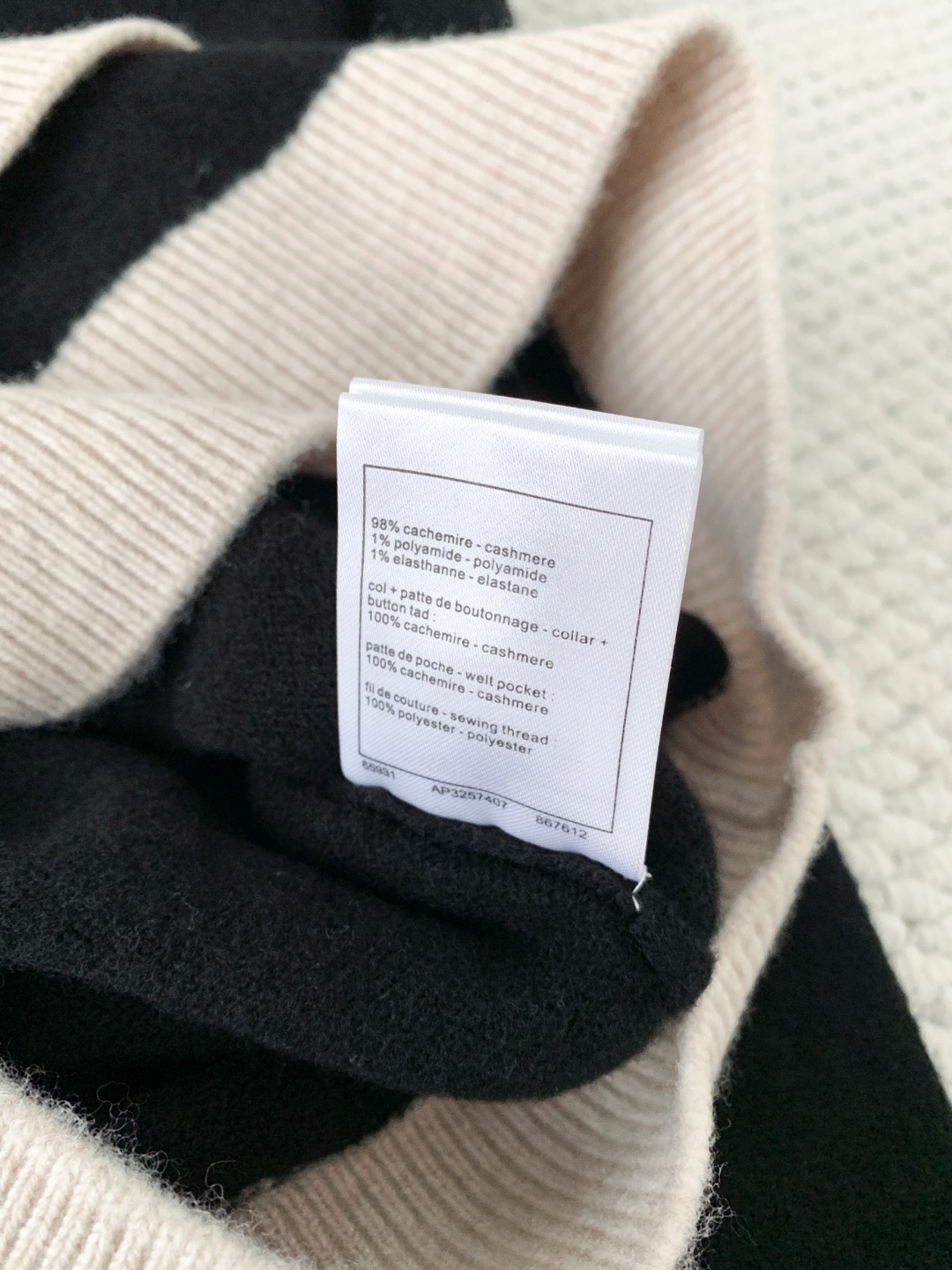 这款衣服是AAAAA 1:1 质量 (非常棒). 使用了和原版一模一样的材料. 商标部分也保持了和香奈儿/Chanel一样. 图片拍摄是实物衣服拍摄, 您所收到的实物保证和我们图片一模一样.