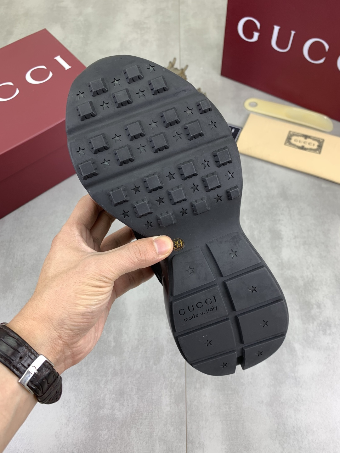 这款鞋子是AAAAA 1:1 质量 (非常棒). 使用了和原版一模一样的材料. 商标部分也保持了和古奇/Gucci一样. 图片拍摄是实物鞋子拍摄, 您所收到的实物保证和我们图片一模一样.