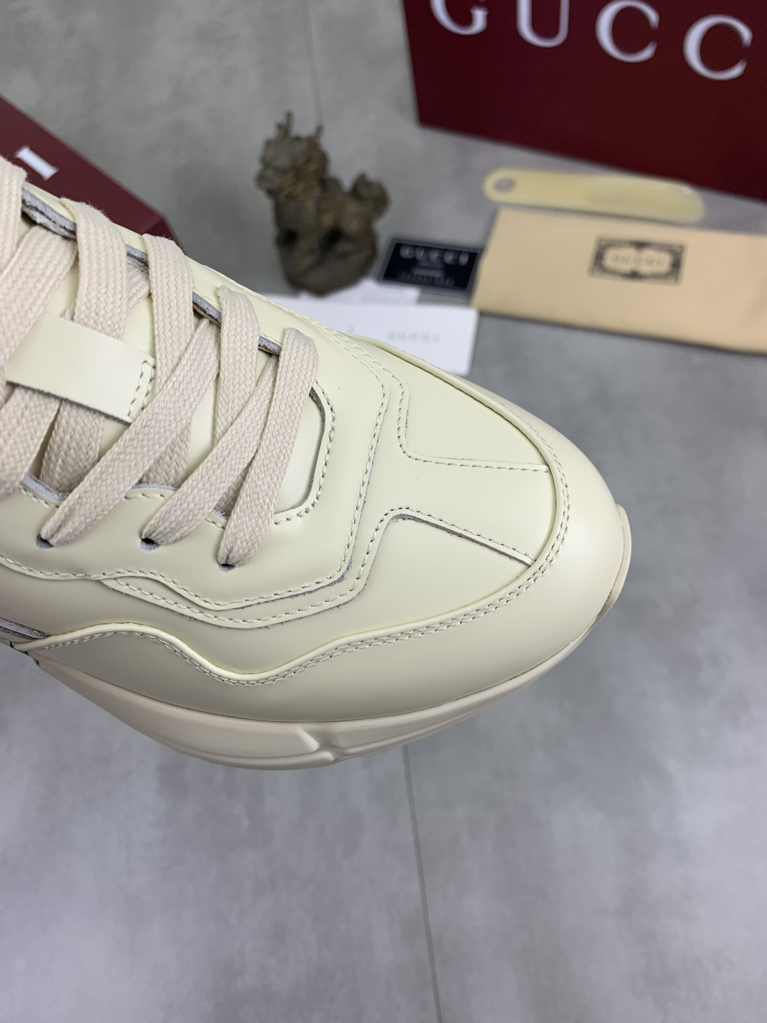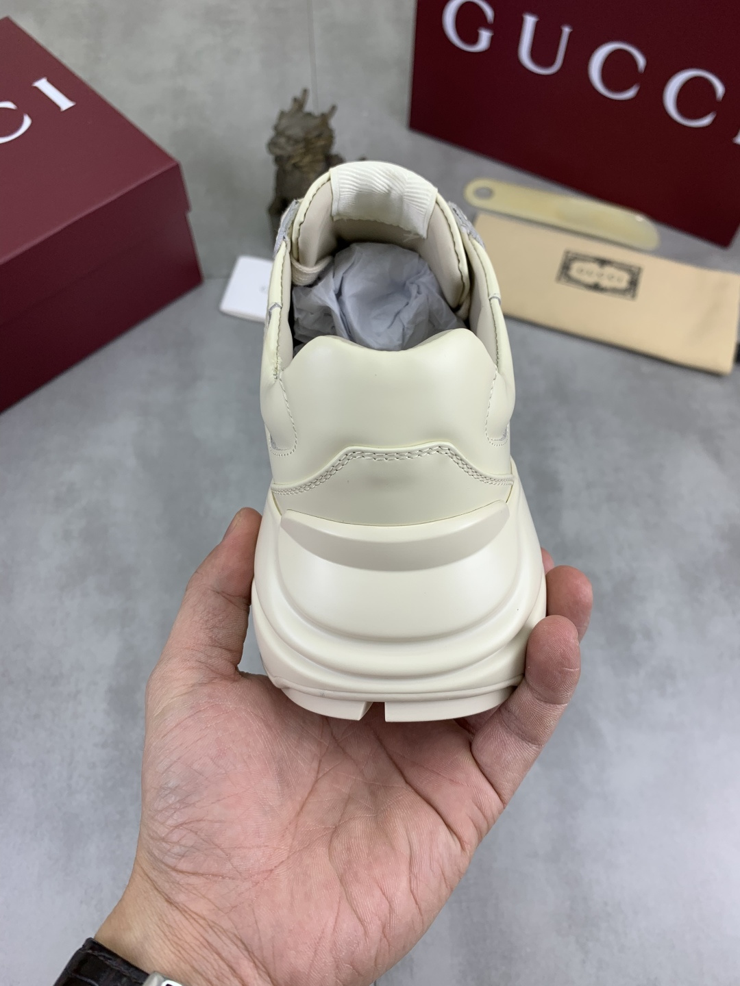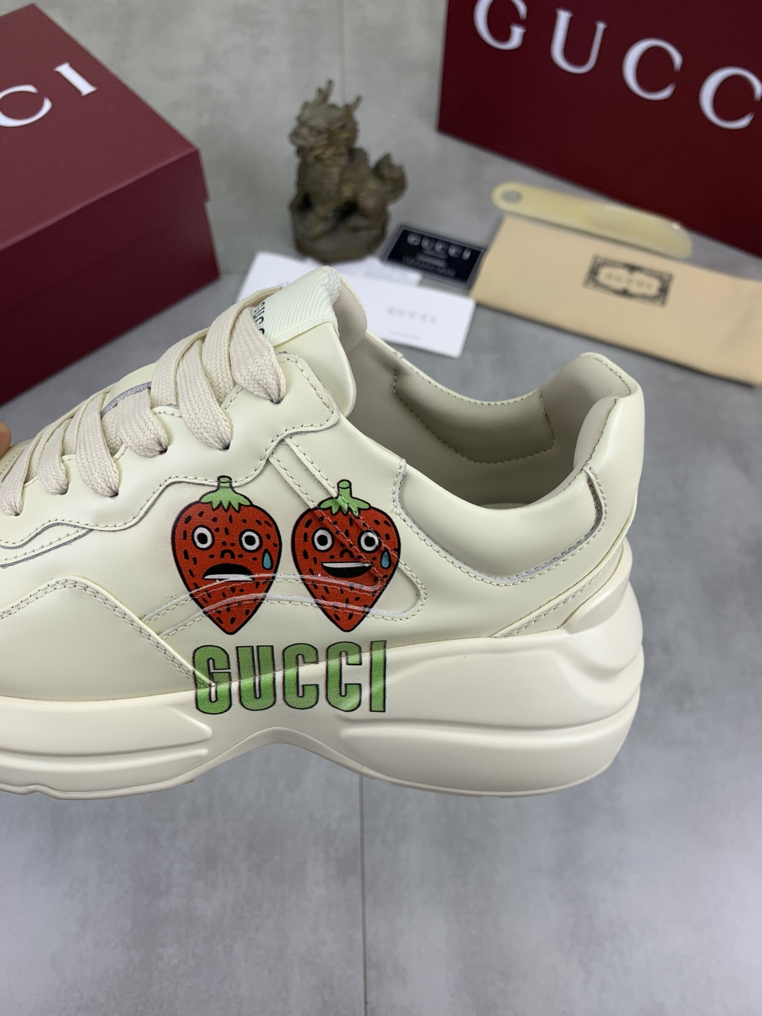 这款鞋子是AAAAA 1:1 质量 (非常棒). 使用了和原版一模一样的材料. 商标部分也保持了和古奇/Gucci一样. 图片拍摄是实物鞋子拍摄, 您所收到的实物保证和我们图片一模一样.