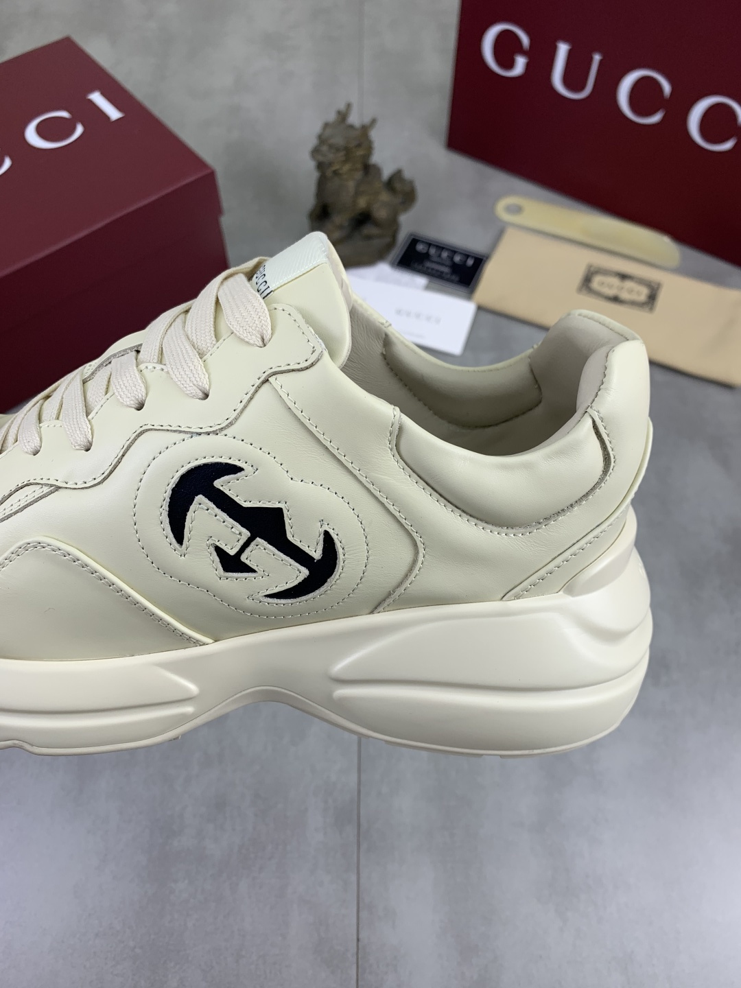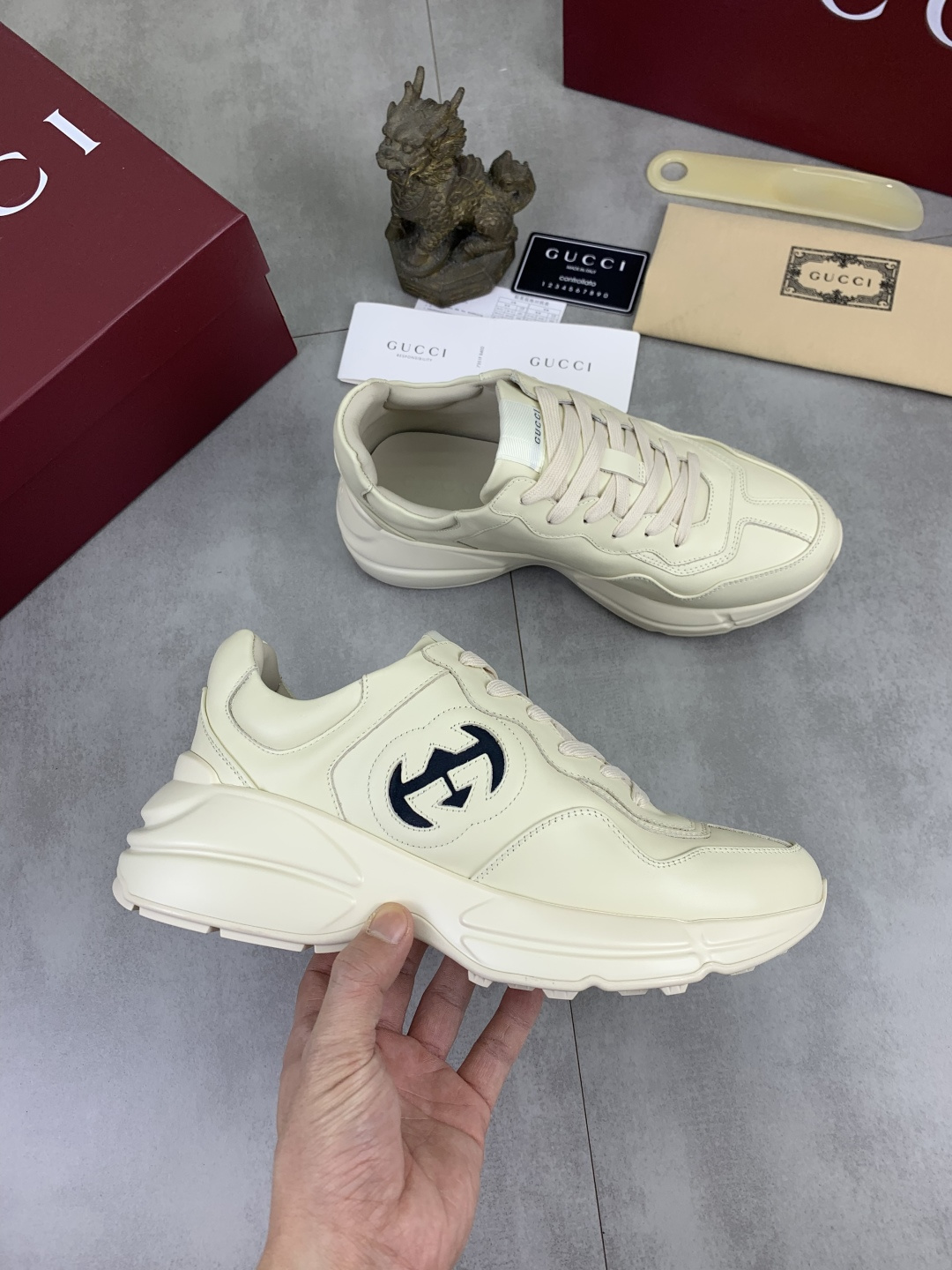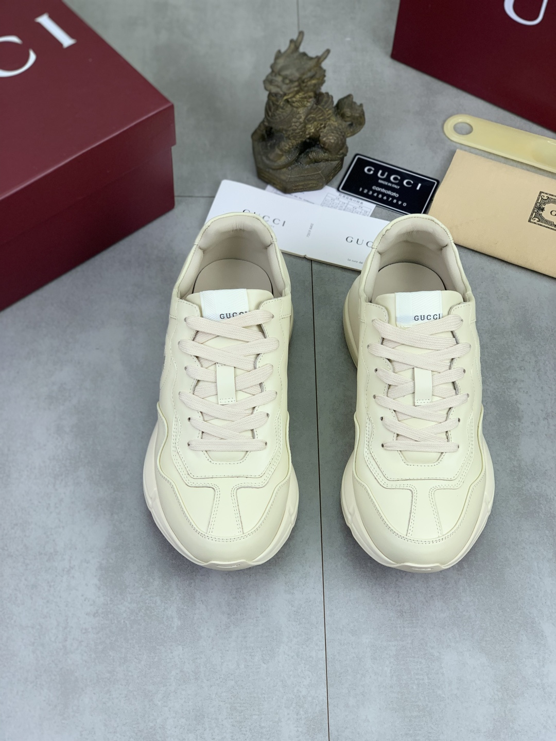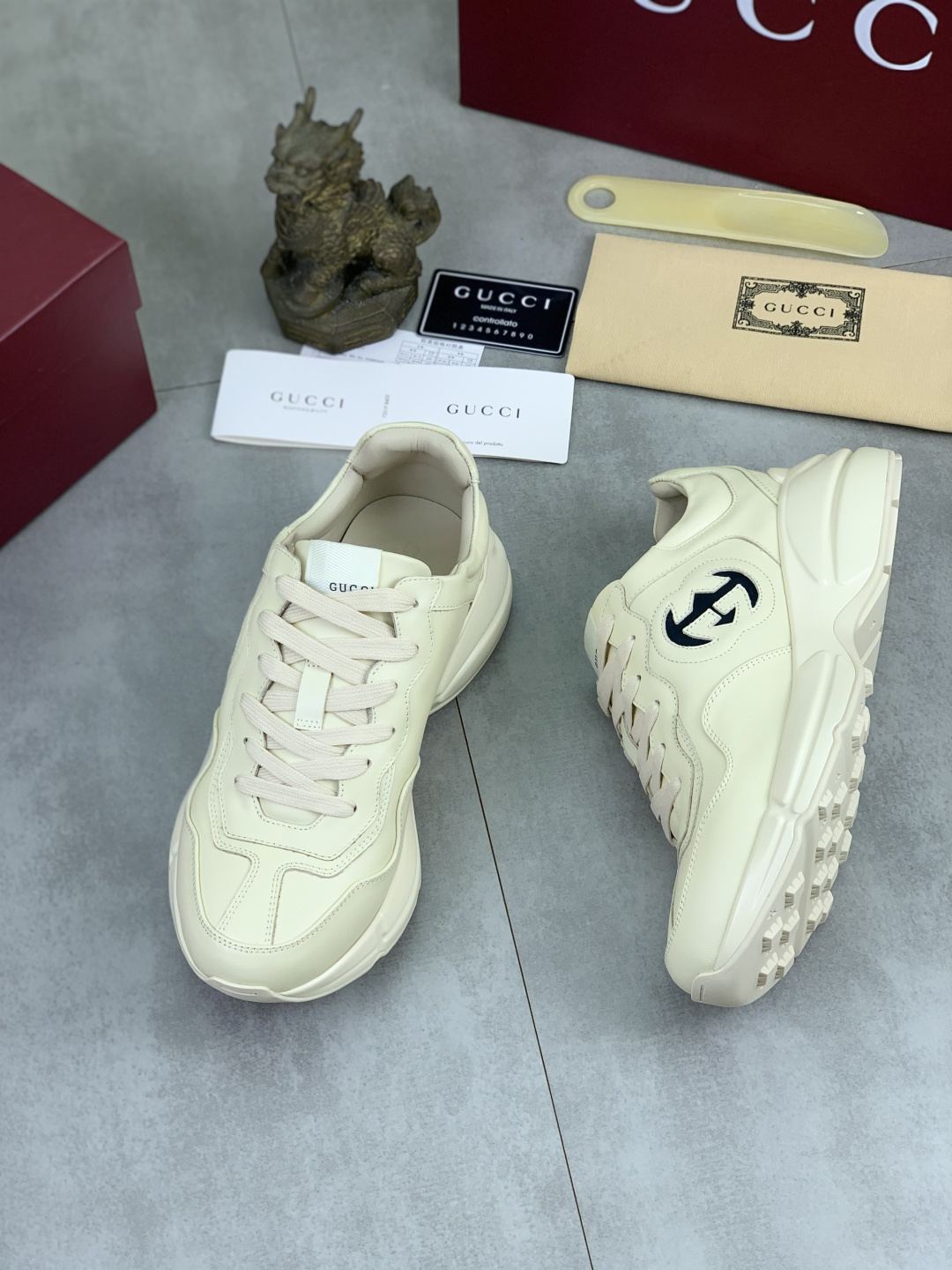 这款鞋子是AAAAA 1:1 质量 (非常棒). 使用了和原版一模一样的材料. 商标部分也保持了和古奇/Gucci一样. 图片拍摄是实物鞋子拍摄, 您所收到的实物保证和我们图片一模一样.
