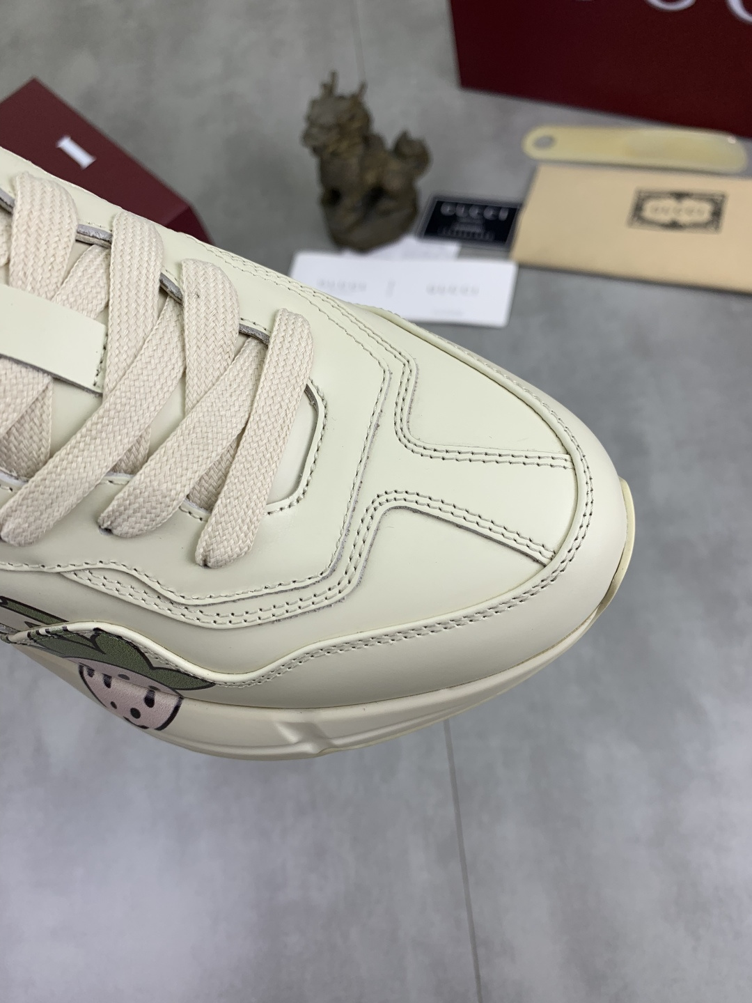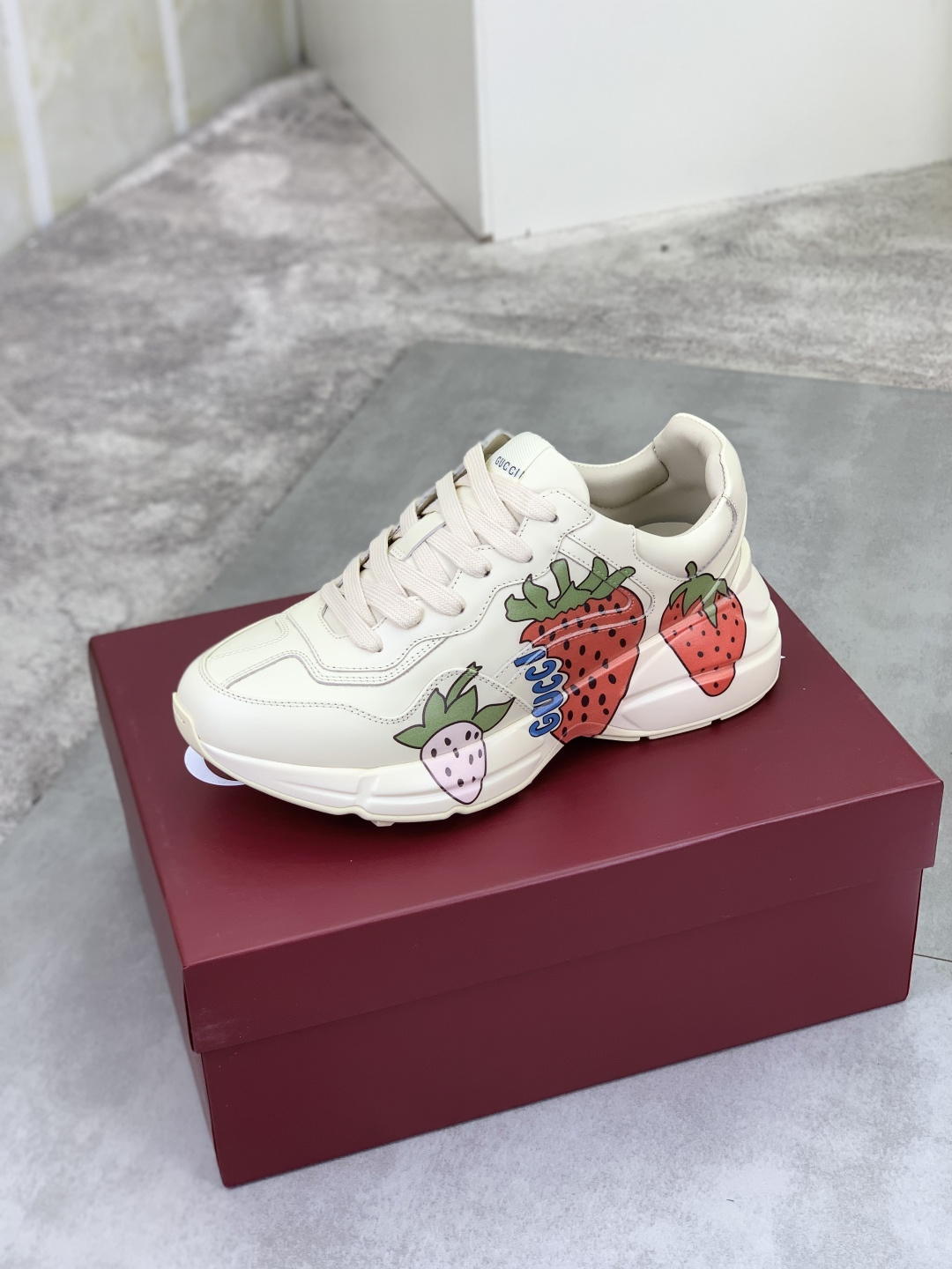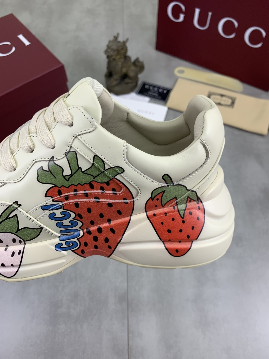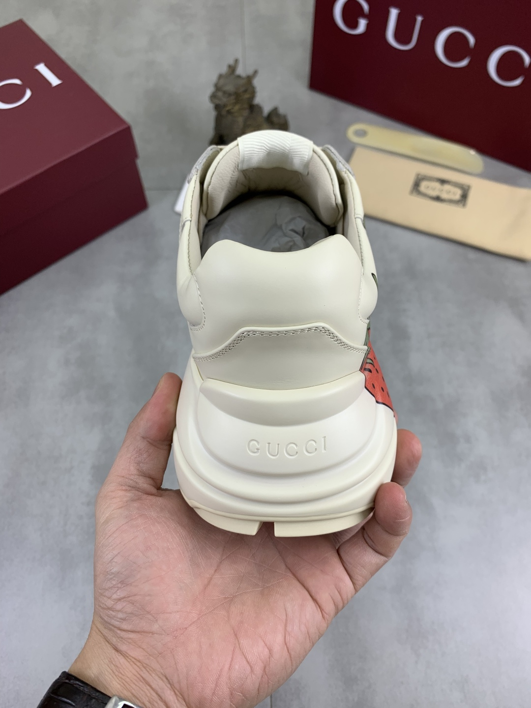 这款鞋子是AAAAA 1:1 质量 (非常棒). 使用了和原版一模一样的材料. 商标部分也保持了和古奇/Gucci一样. 图片拍摄是实物鞋子拍摄, 您所收到的实物保证和我们图片一模一样.