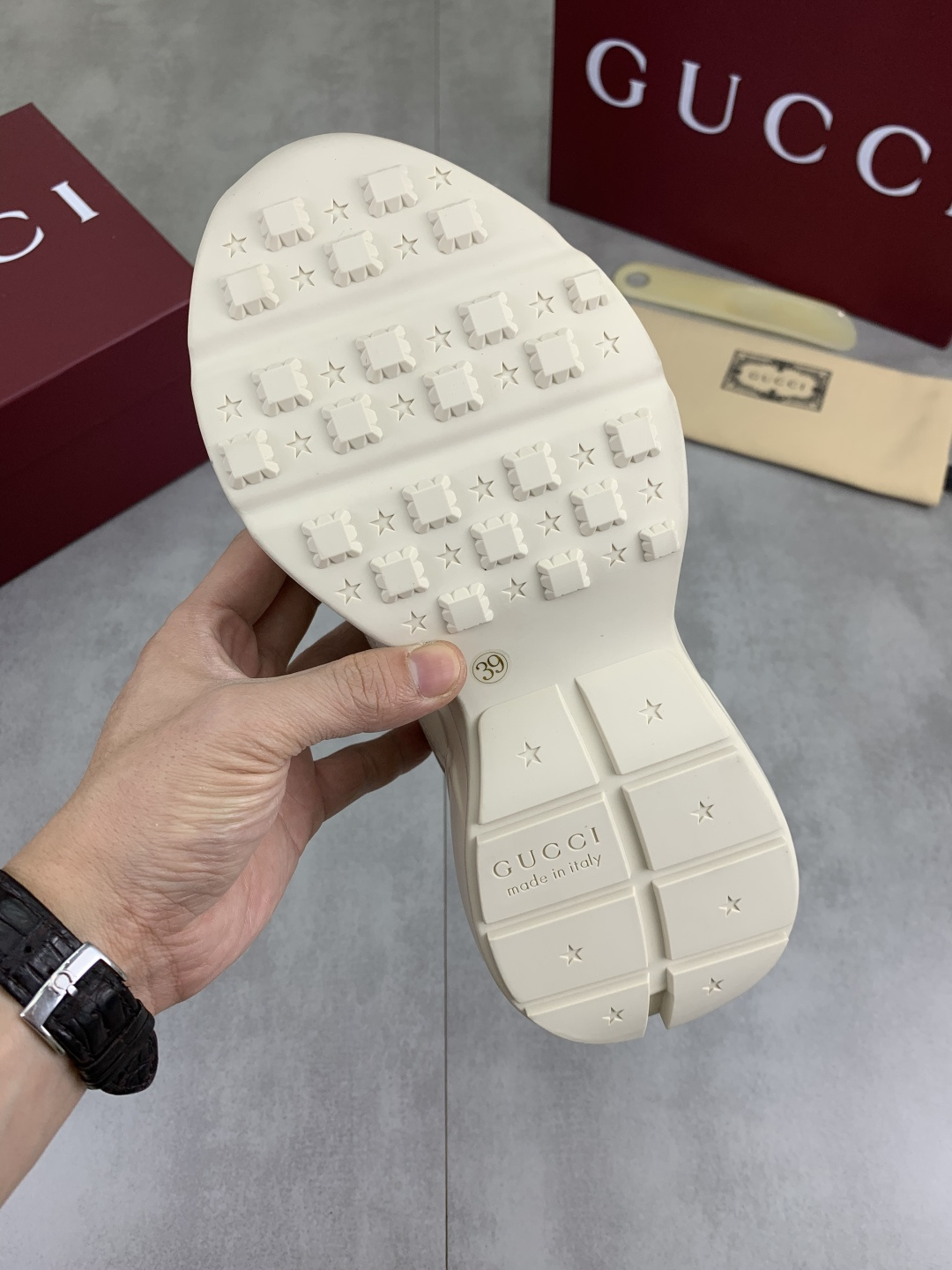 这款鞋子是AAAAA 1:1 质量 (非常棒). 使用了和原版一模一样的材料. 商标部分也保持了和古奇/Gucci一样. 图片拍摄是实物鞋子拍摄, 您所收到的实物保证和我们图片一模一样.
