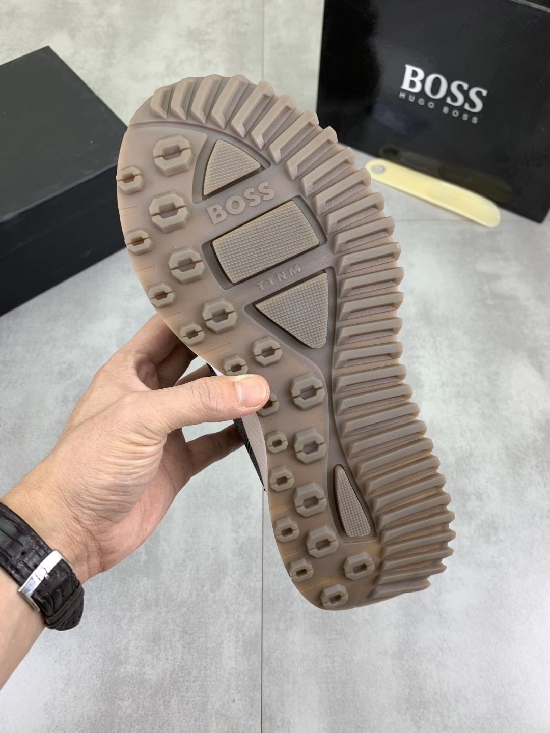 这款鞋子是AAAAA 1:1 质量 (非常棒). 使用了和原版一模一样的材料. 商标部分也保持了和BOSS一样. 图片拍摄是实物鞋子拍摄, 您所收到的实物保证和我们图片一模一样.