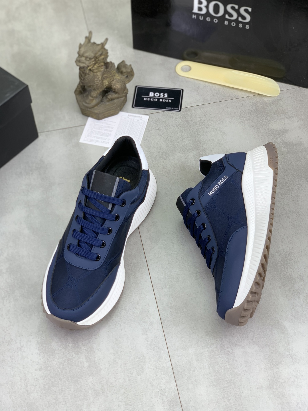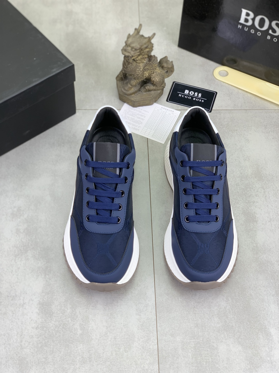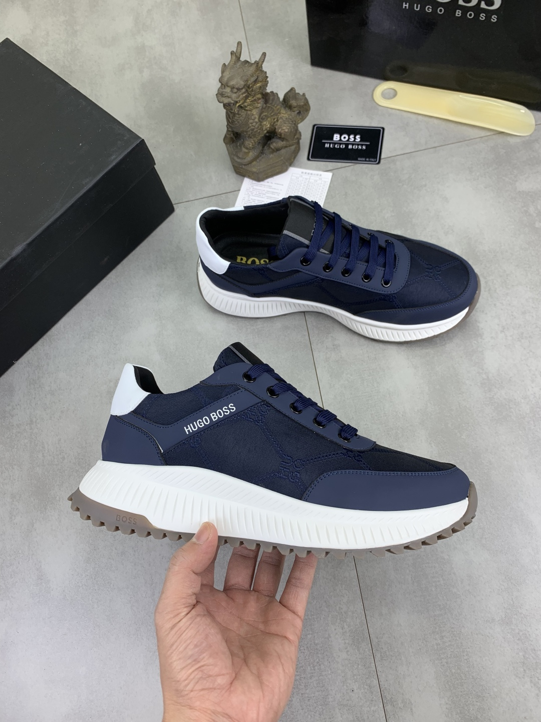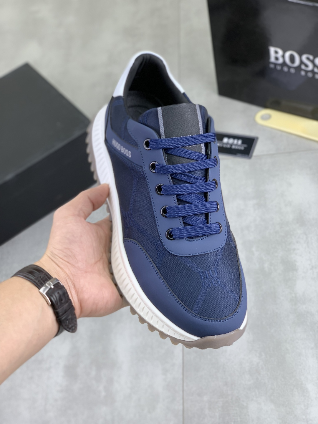 这款鞋子是AAAAA 1:1 质量 (非常棒). 使用了和原版一模一样的材料. 商标部分也保持了和BOSS一样. 图片拍摄是实物鞋子拍摄, 您所收到的实物保证和我们图片一模一样.