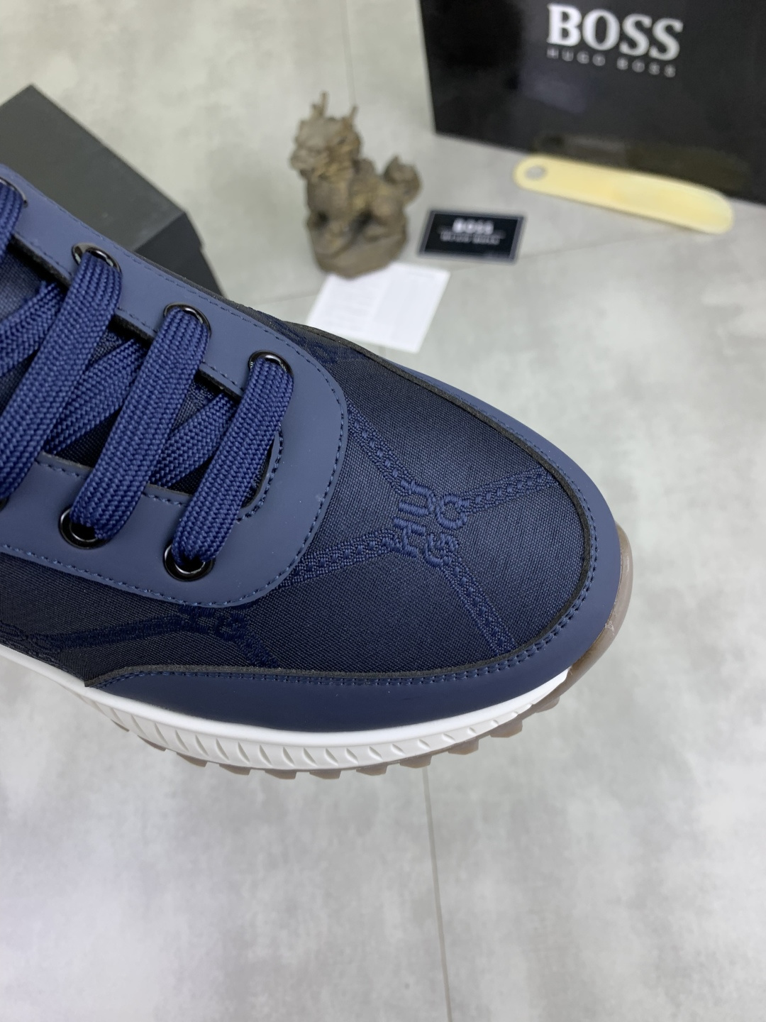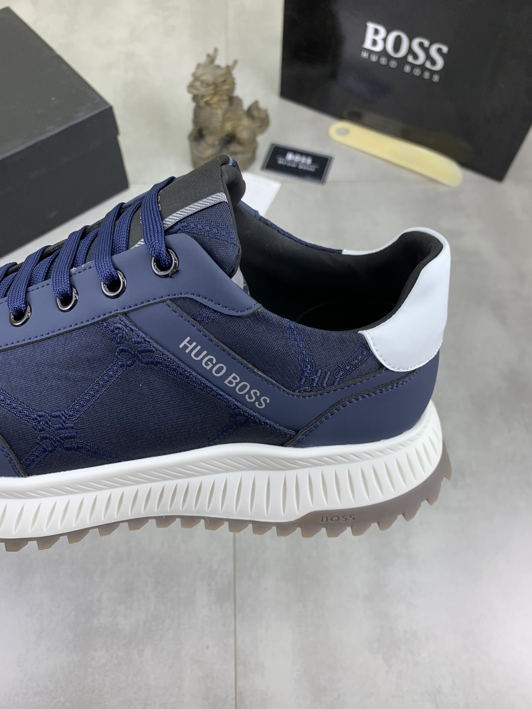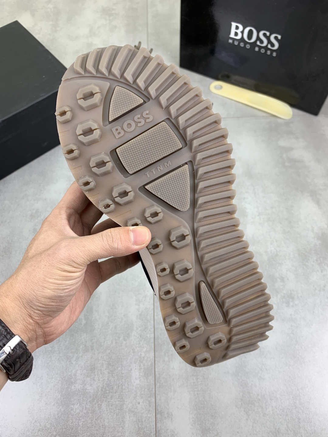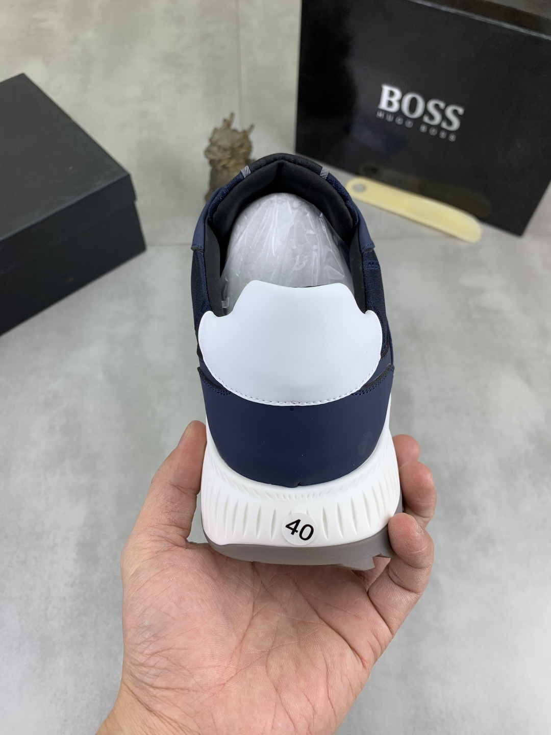 这款鞋子是AAAAA 1:1 质量 (非常棒). 使用了和原版一模一样的材料. 商标部分也保持了和BOSS一样. 图片拍摄是实物鞋子拍摄, 您所收到的实物保证和我们图片一模一样.