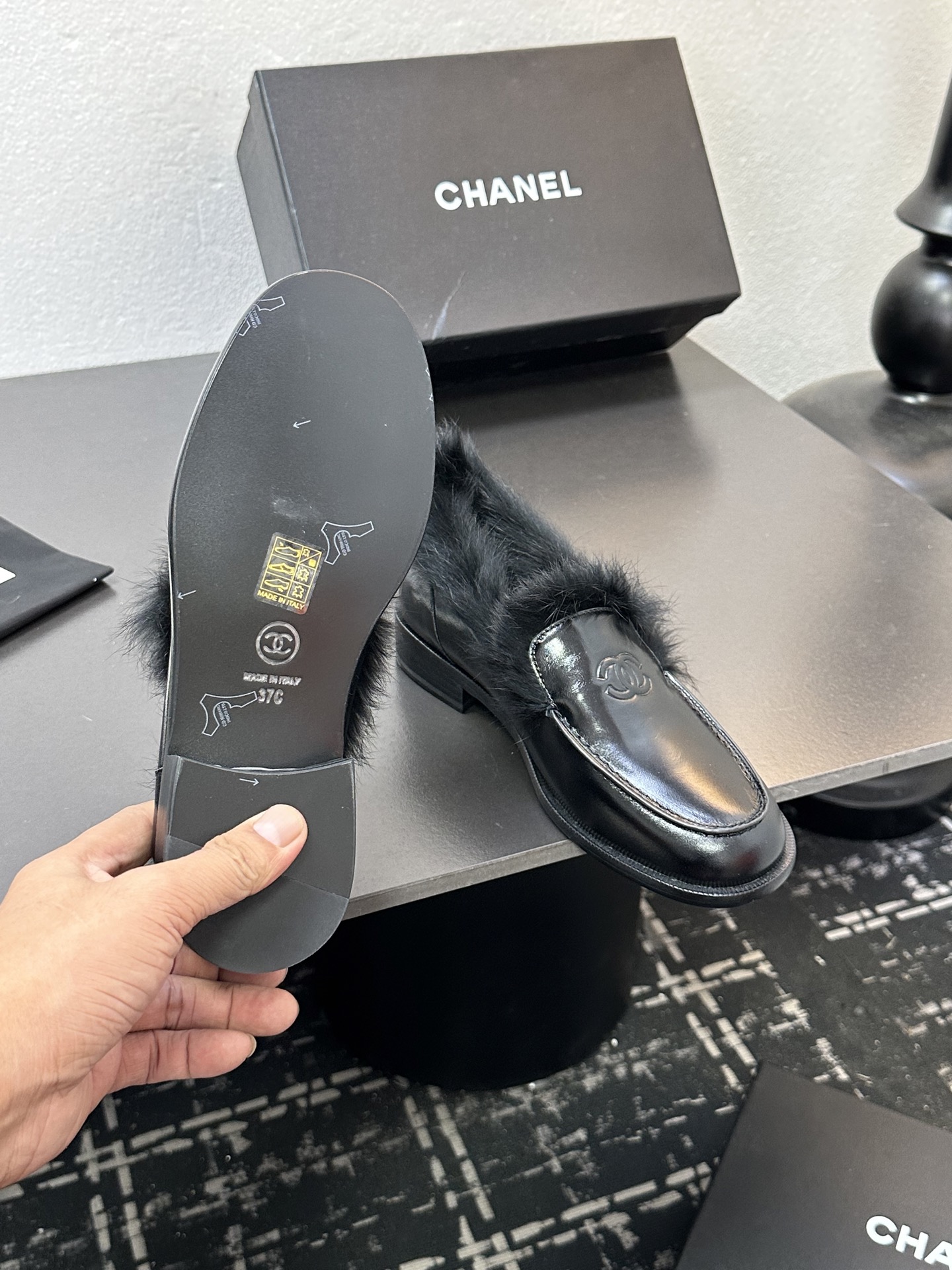 这款鞋子是AAAAA 1:1 质量 (非常棒). 使用了和原版一模一样的材料. 商标部分也保持了和香奈儿/Chanel一样. 图片拍摄是实物鞋子拍摄, 您所收到的实物保证和我们图片一模一样.