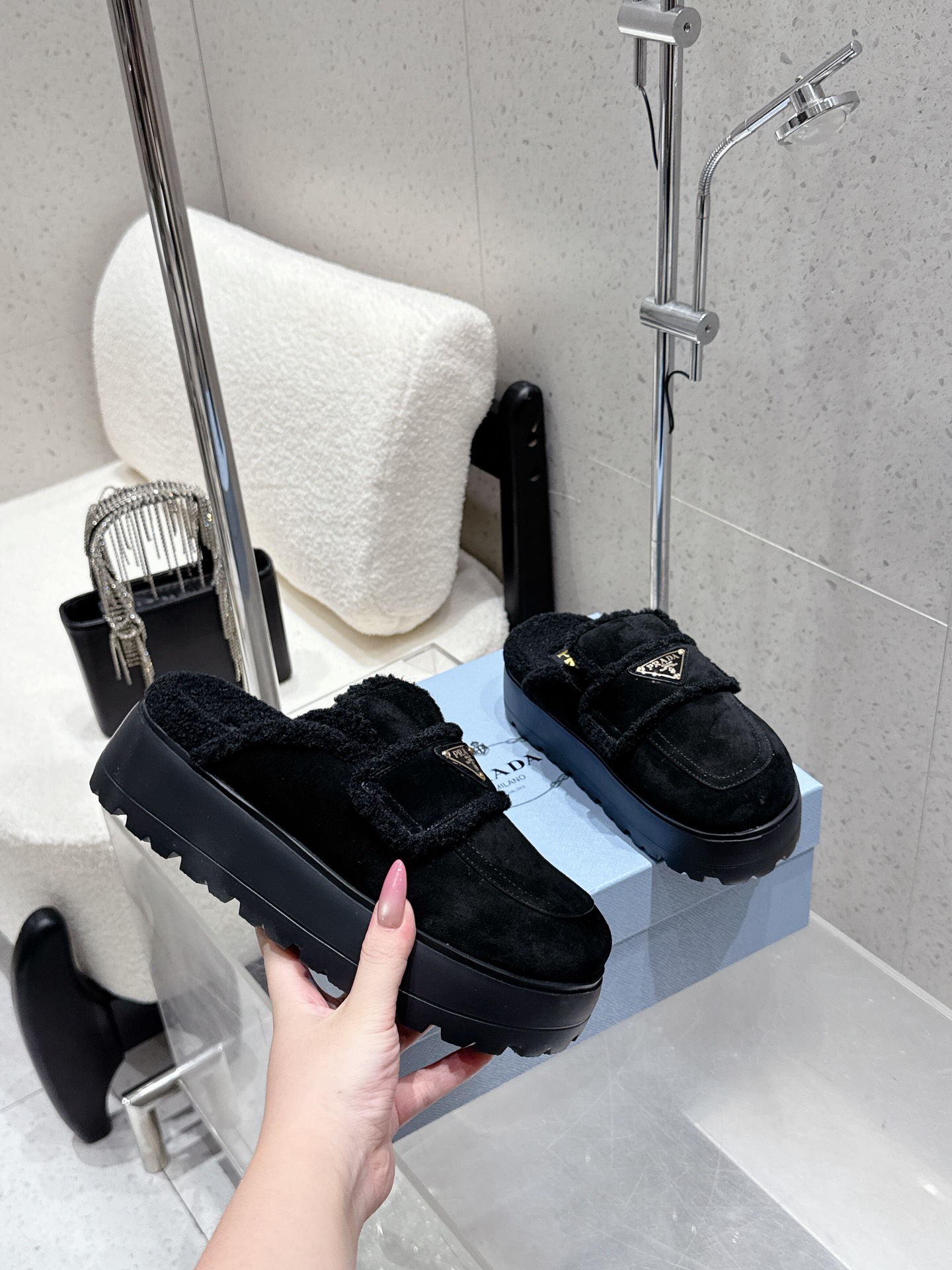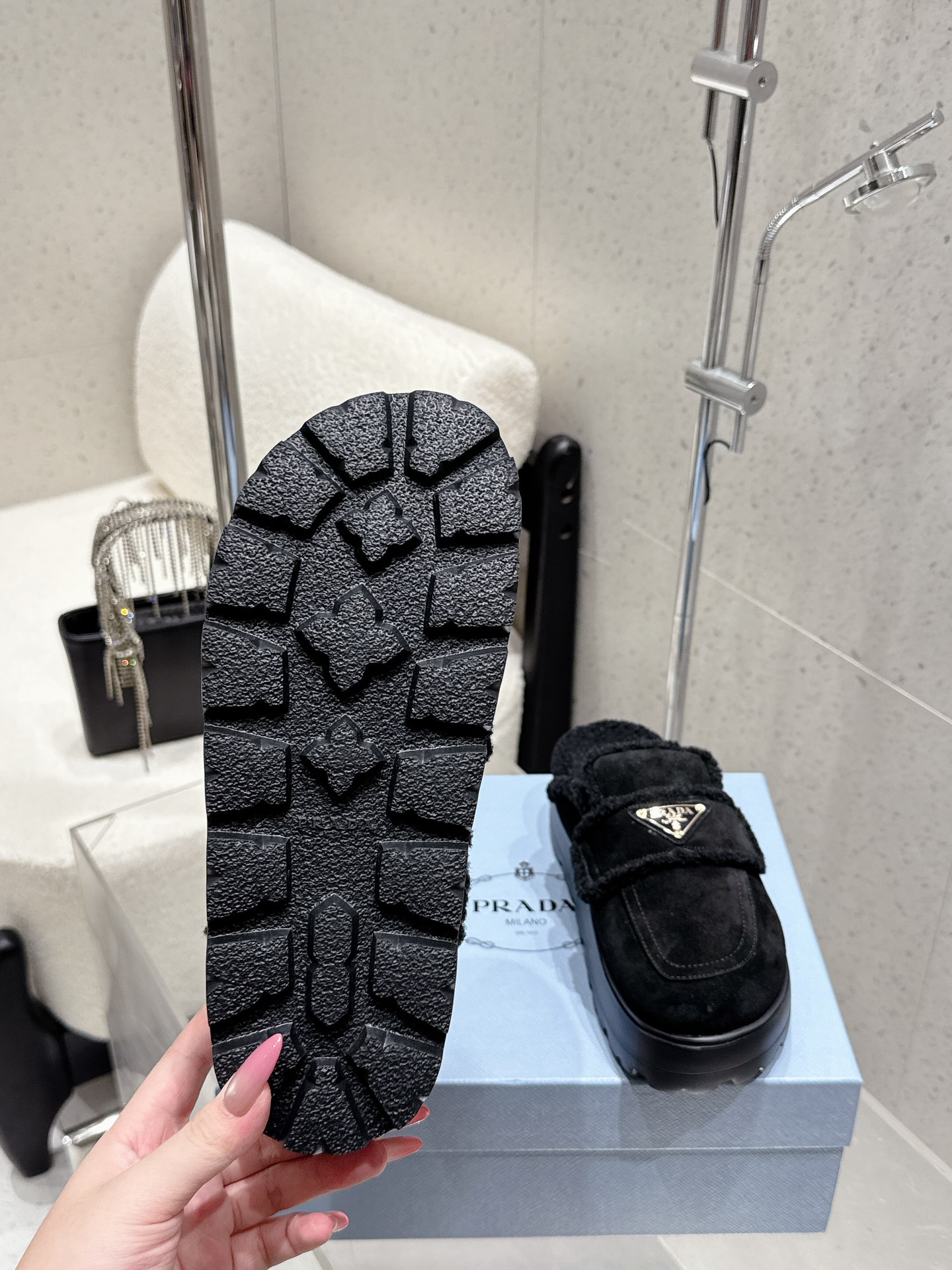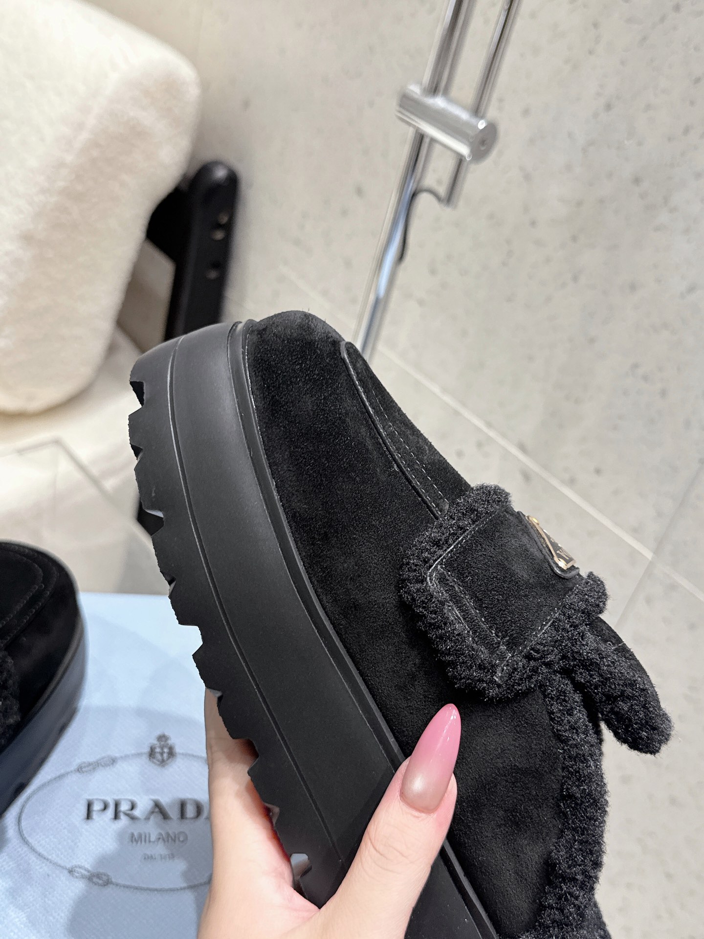 这款鞋子是AAAAA 1:1 质量 (非常棒). 使用了和原版一模一样的材料. 商标部分也保持了和普拉达/Prada一样. 图片拍摄是实物鞋子拍摄, 您所收到的实物保证和我们图片一模一样.