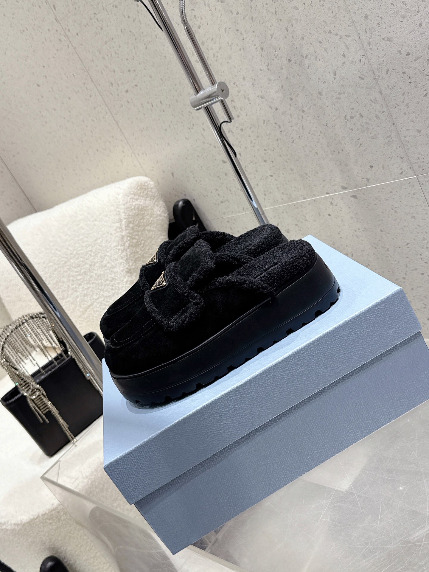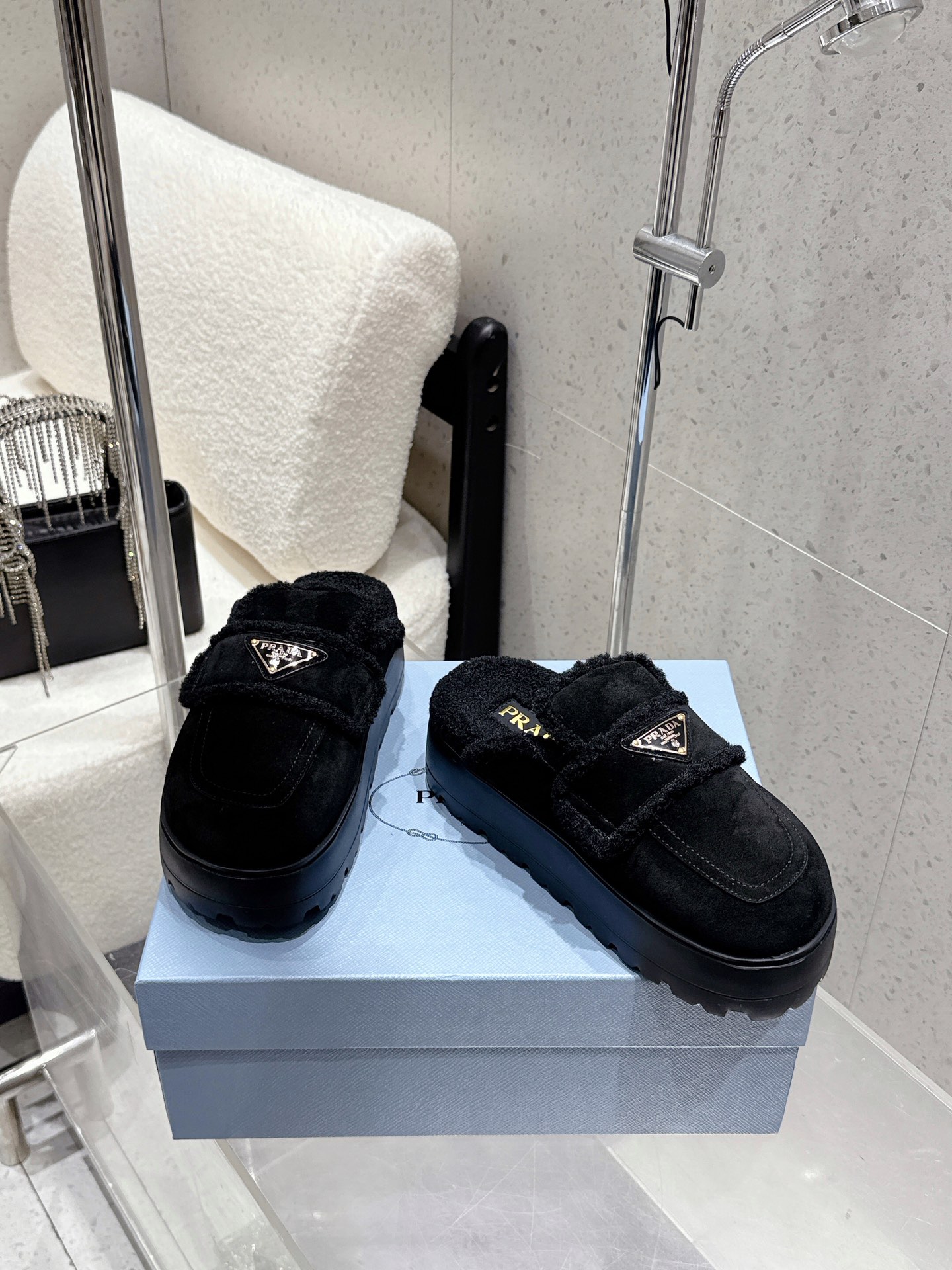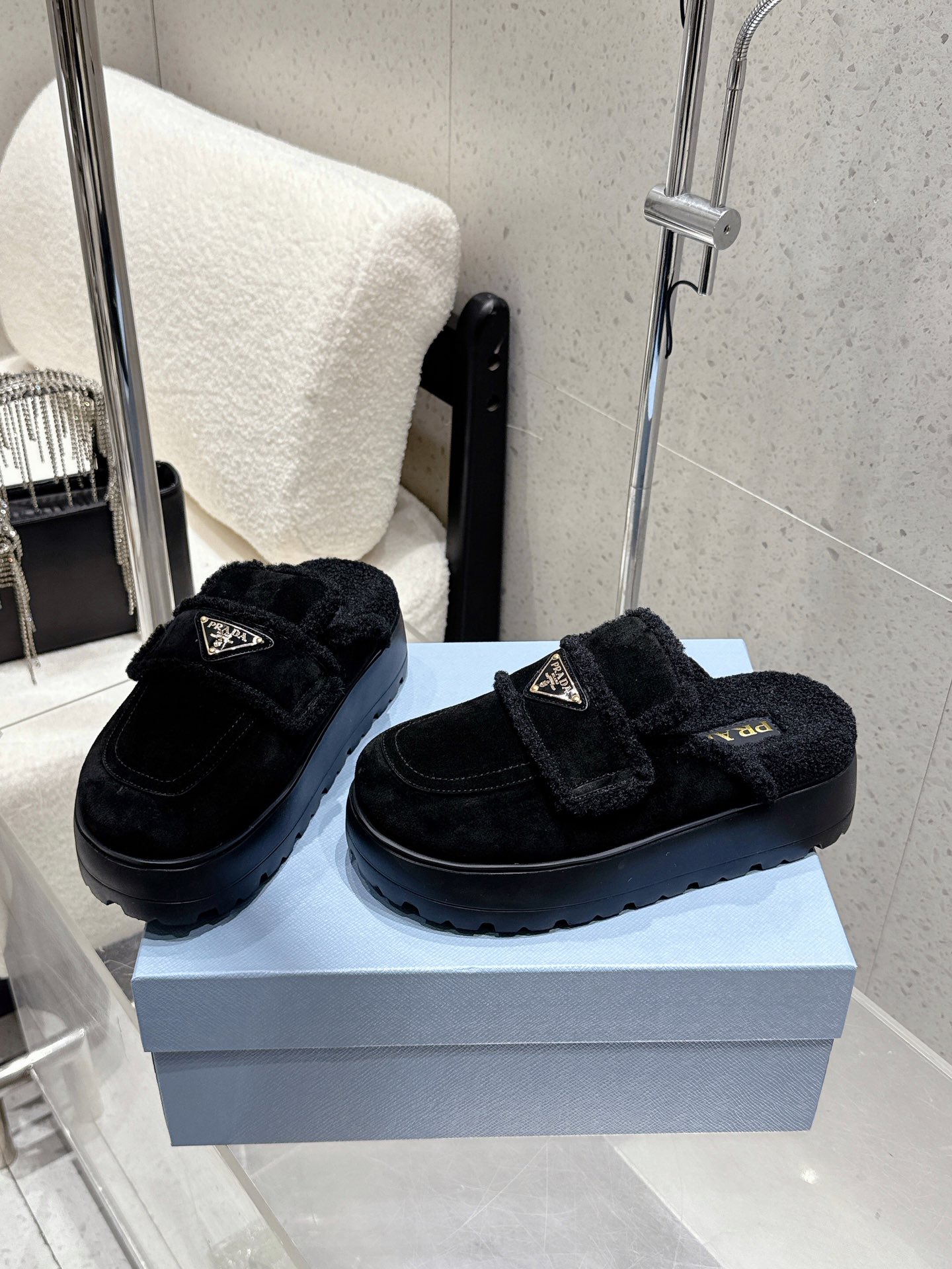 这款鞋子是AAAAA 1:1 质量 (非常棒). 使用了和原版一模一样的材料. 商标部分也保持了和普拉达/Prada一样. 图片拍摄是实物鞋子拍摄, 您所收到的实物保证和我们图片一模一样.