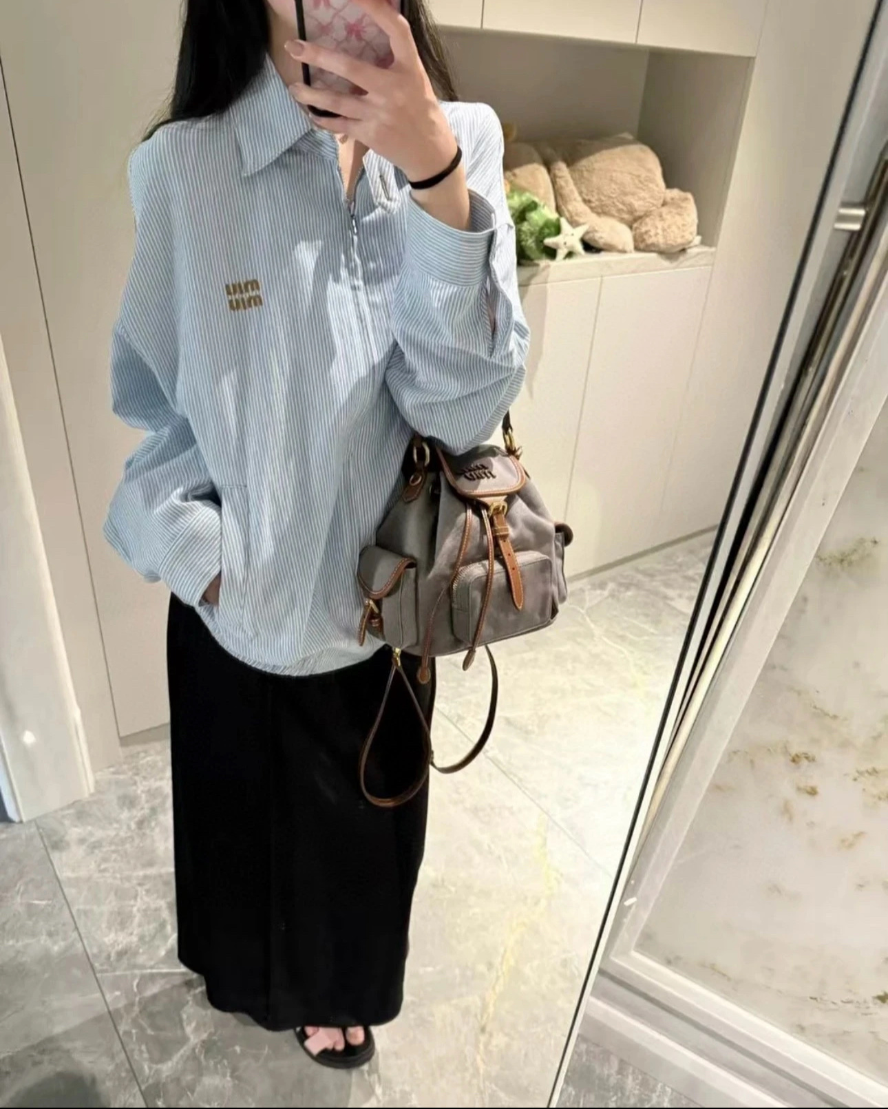这款衣服是AAAAA 1:1 质量 (非常棒). 使用了和原版一模一样的材料. 商标部分也保持了和缪缪/Miu Miu一样. 图片拍摄是实物衣服拍摄, 您所收到的实物保证和我们图片一模一样.