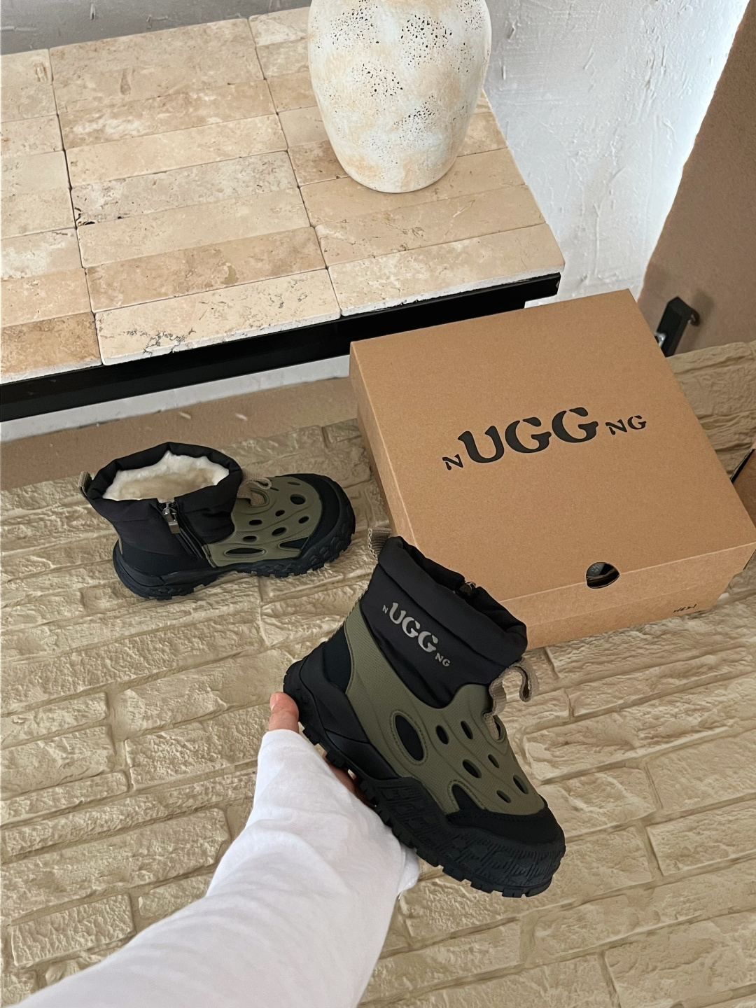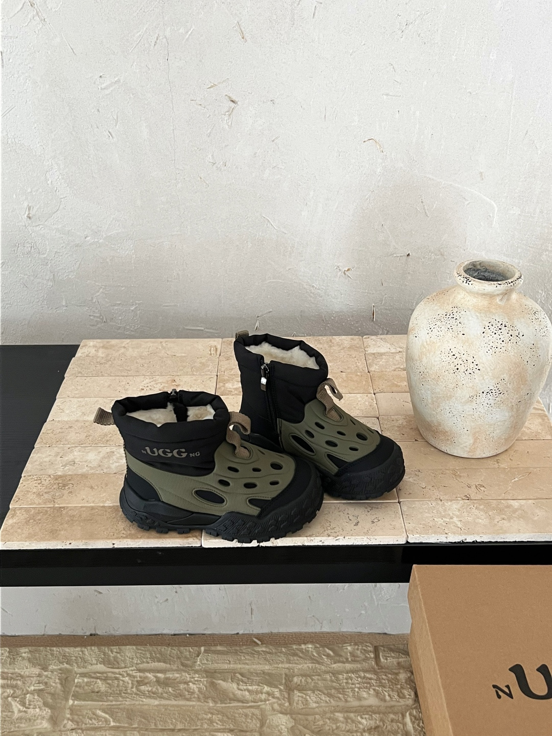 这款兒童鞋是AAAAA 1:1 质量 (非常棒). 使用了和原版一模一样的材料. 商标部分也保持了和UGG雪地靴一样. 图片拍摄是实物兒童鞋拍摄, 您所收到的实物保证和我们图片一模一样.