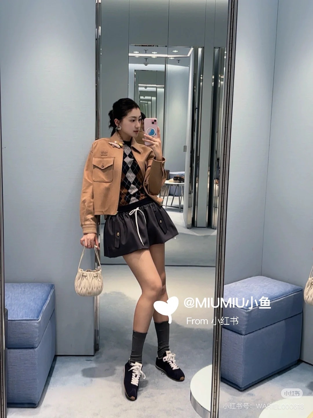 这款衣服是AAAAA 1:1 质量 (非常棒). 使用了和原版一模一样的材料. 商标部分也保持了和缪缪/Miu Miu一样. 图片拍摄是实物衣服拍摄, 您所收到的实物保证和我们图片一模一样.