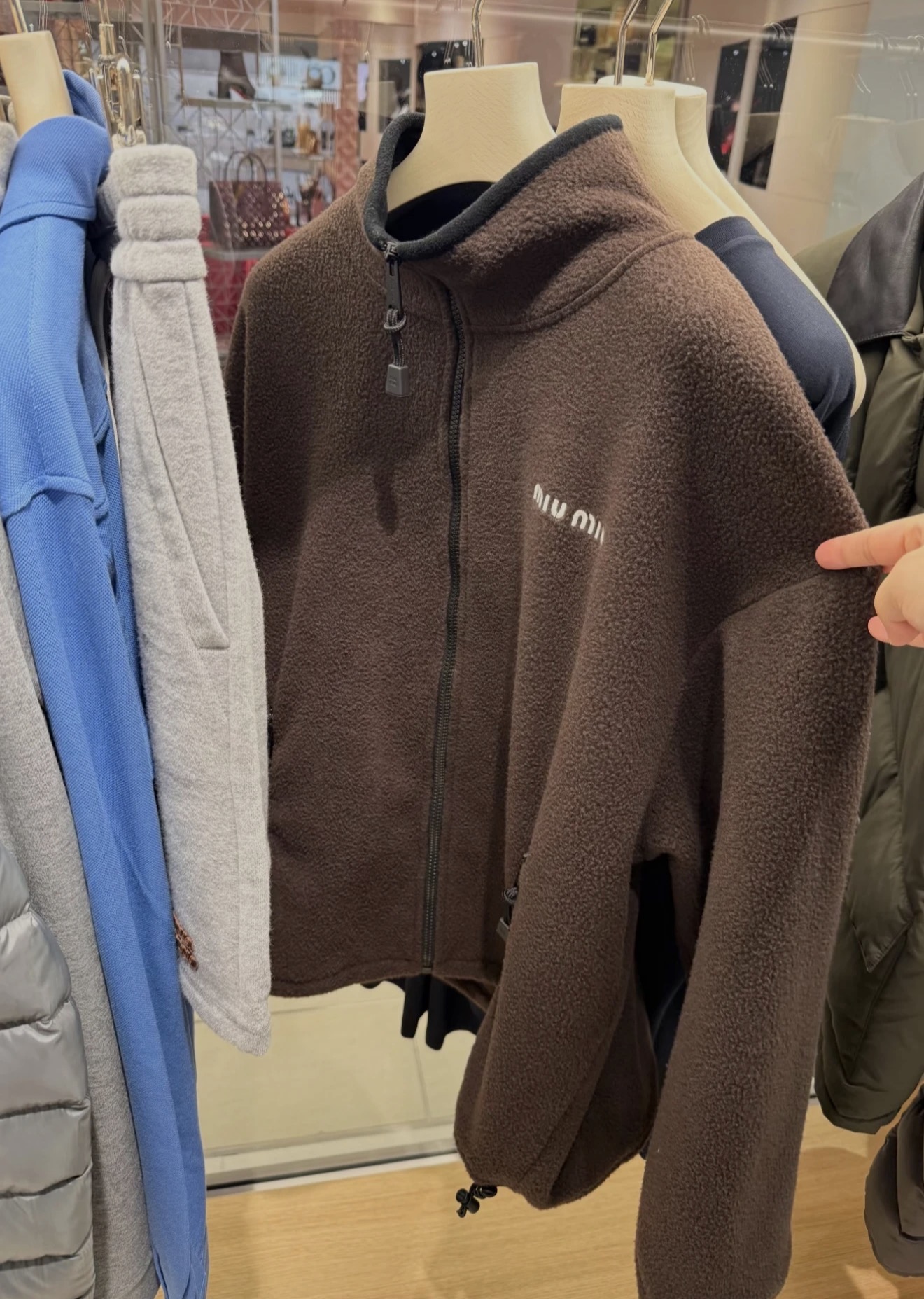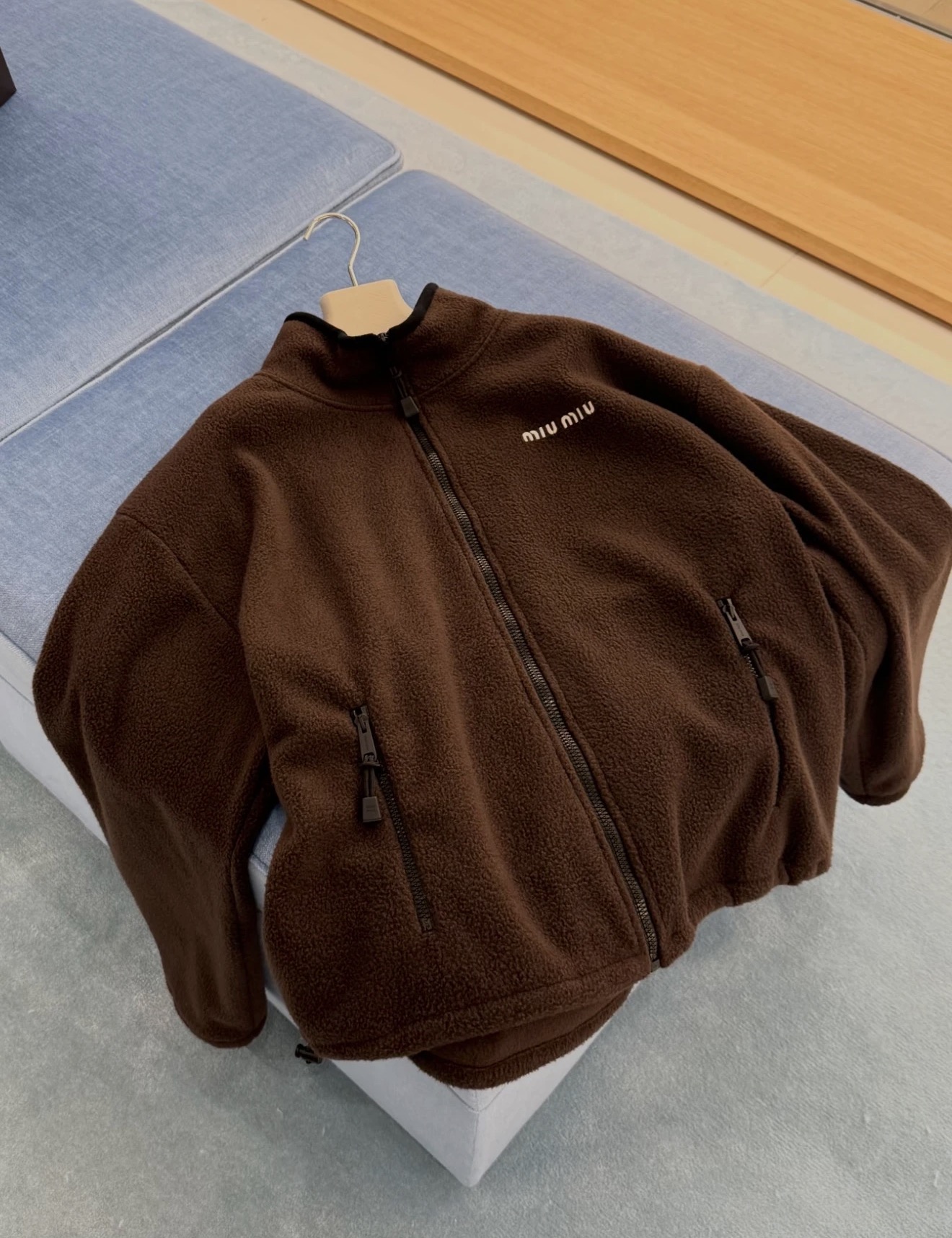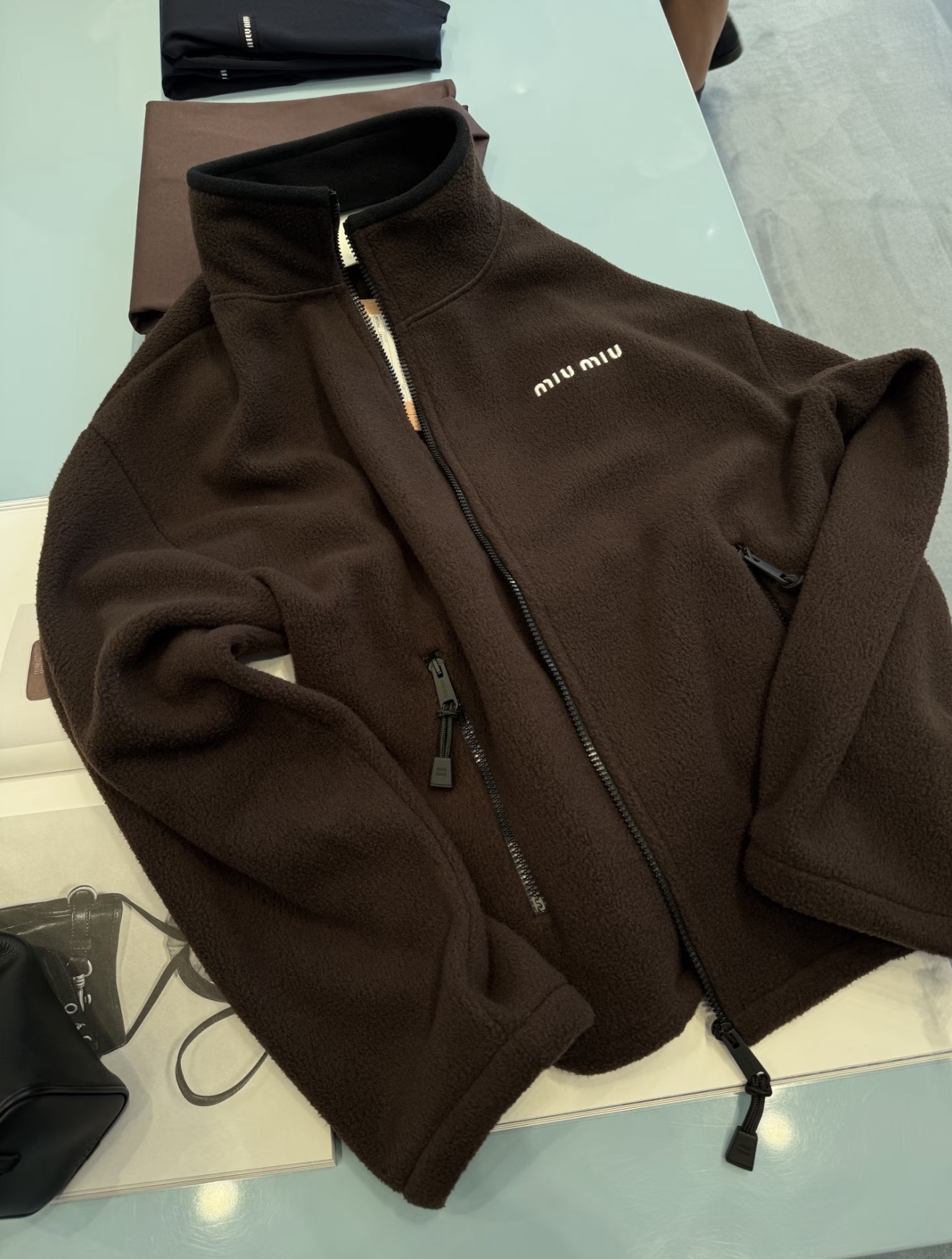 这款衣服是AAAAA 1:1 质量 (非常棒). 使用了和原版一模一样的材料. 商标部分也保持了和缪缪/Miu Miu一样. 图片拍摄是实物衣服拍摄, 您所收到的实物保证和我们图片一模一样.