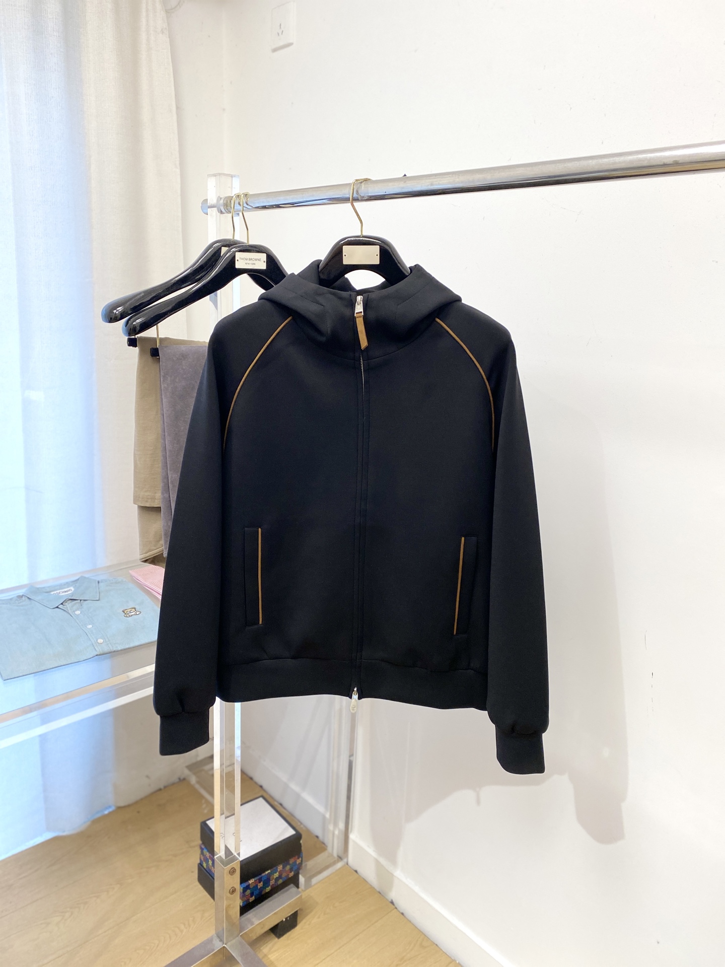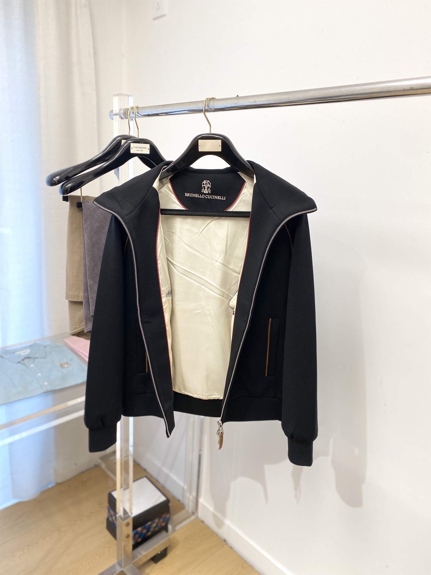 这款衣服是AAAAA 1:1 质量 (非常棒). 使用了和原版一模一样的材料. 商标部分也保持了和Brunello Cucinelli一样. 图片拍摄是实物衣服拍摄, 您所收到的实物保证和我们图片一模一样.