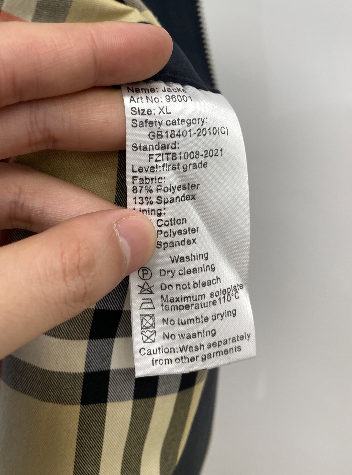这款衣服是AAAAA 1:1 质量 (非常棒). 使用了和原版一模一样的材料. 商标部分也保持了和巴宝莉/Burberry一样. 图片拍摄是实物衣服拍摄, 您所收到的实物保证和我们图片一模一样.