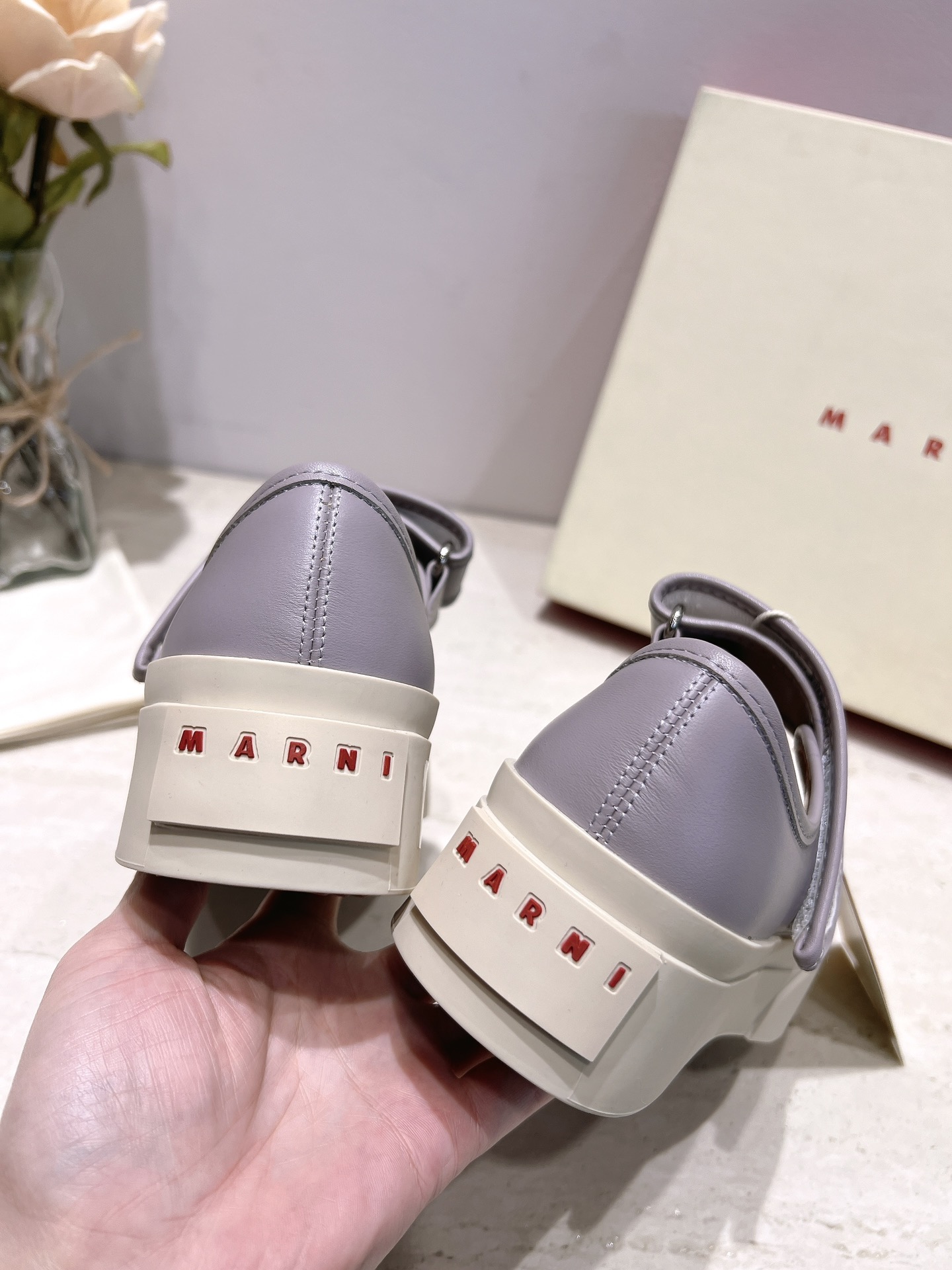 这款鞋子是AAAAA 1:1 质量 (非常棒). 使用了和原版一模一样的材料. 商标部分也保持了和马尔尼/Marni一样. 图片拍摄是实物鞋子拍摄, 您所收到的实物保证和我们图片一模一样.