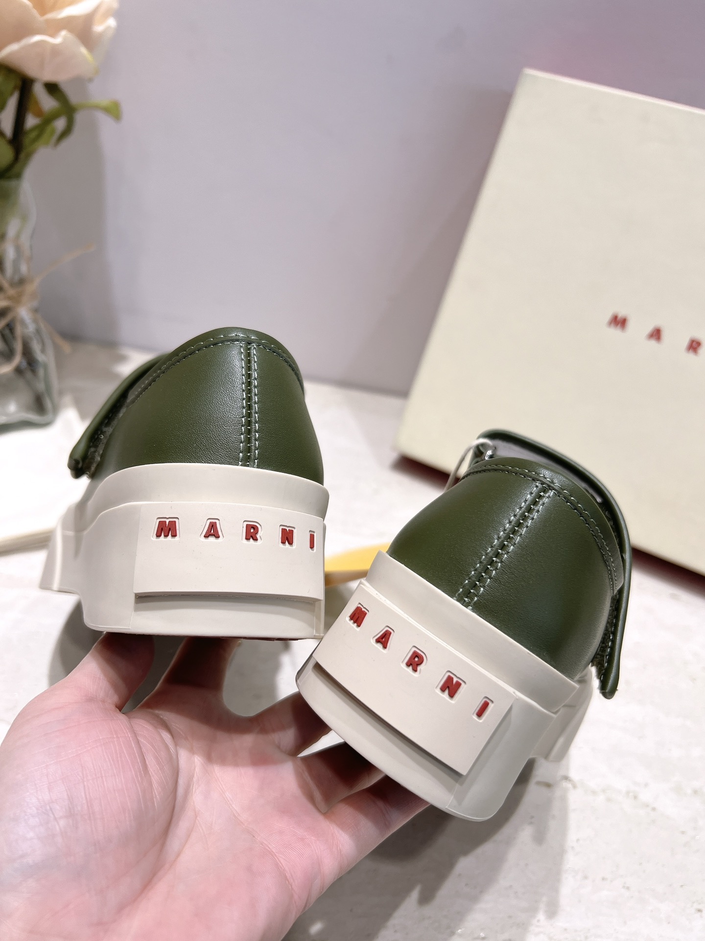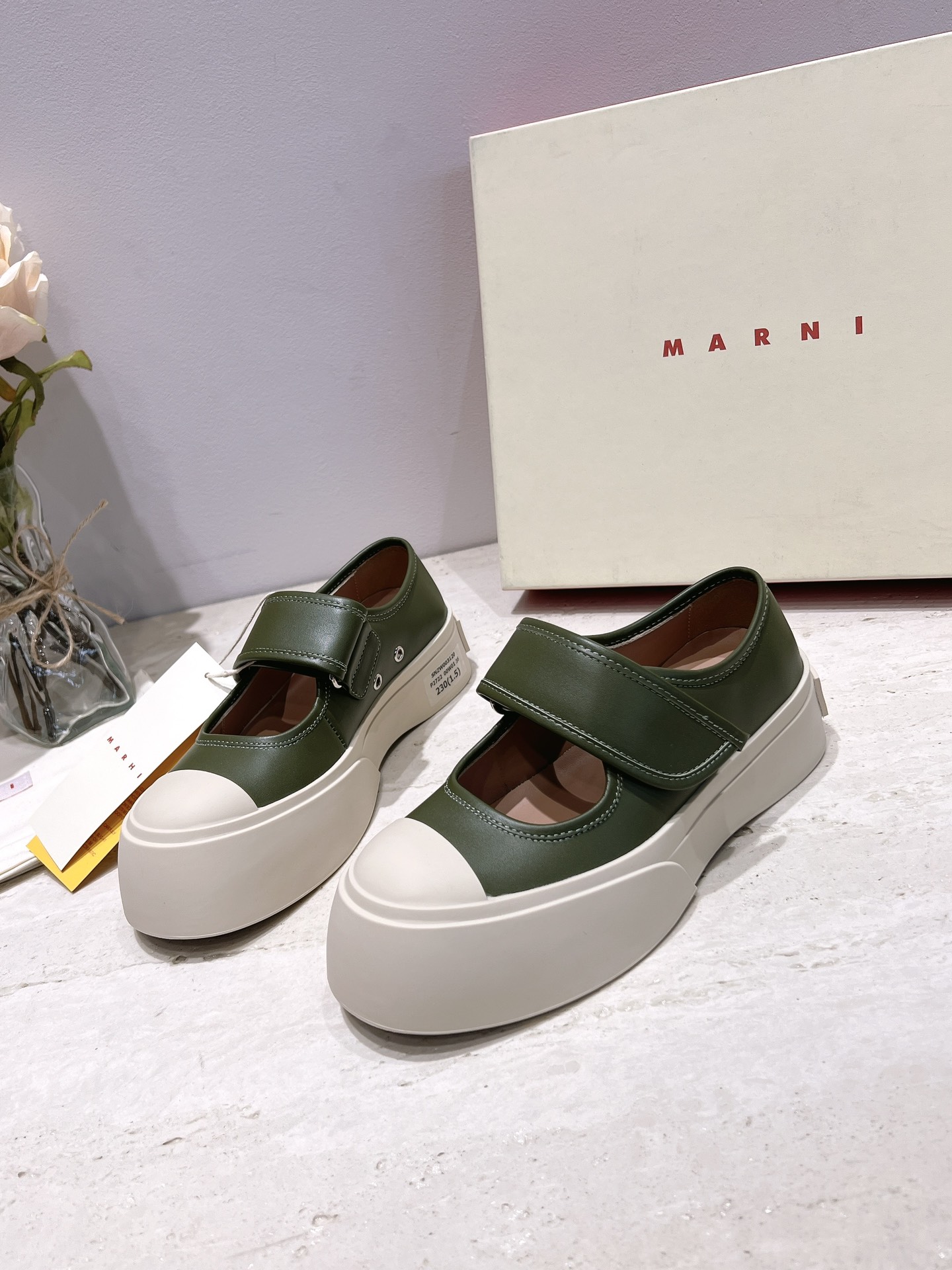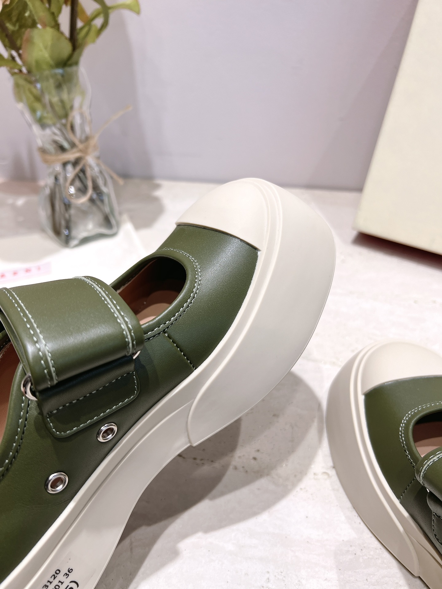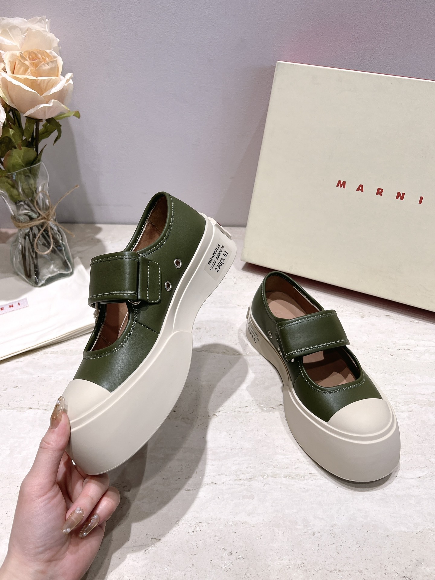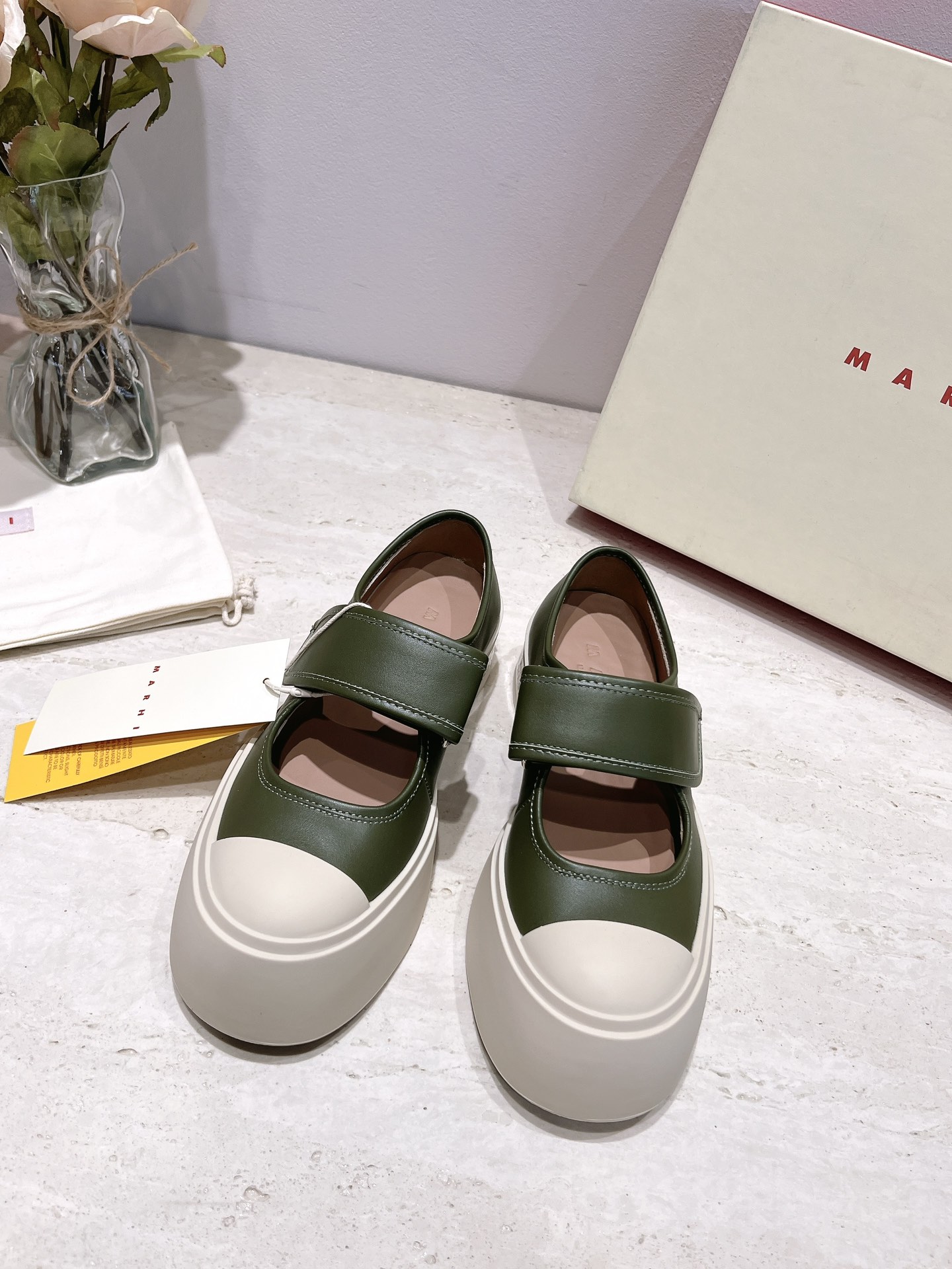 这款鞋子是AAAAA 1:1 质量 (非常棒). 使用了和原版一模一样的材料. 商标部分也保持了和马尔尼/Marni一样. 图片拍摄是实物鞋子拍摄, 您所收到的实物保证和我们图片一模一样.