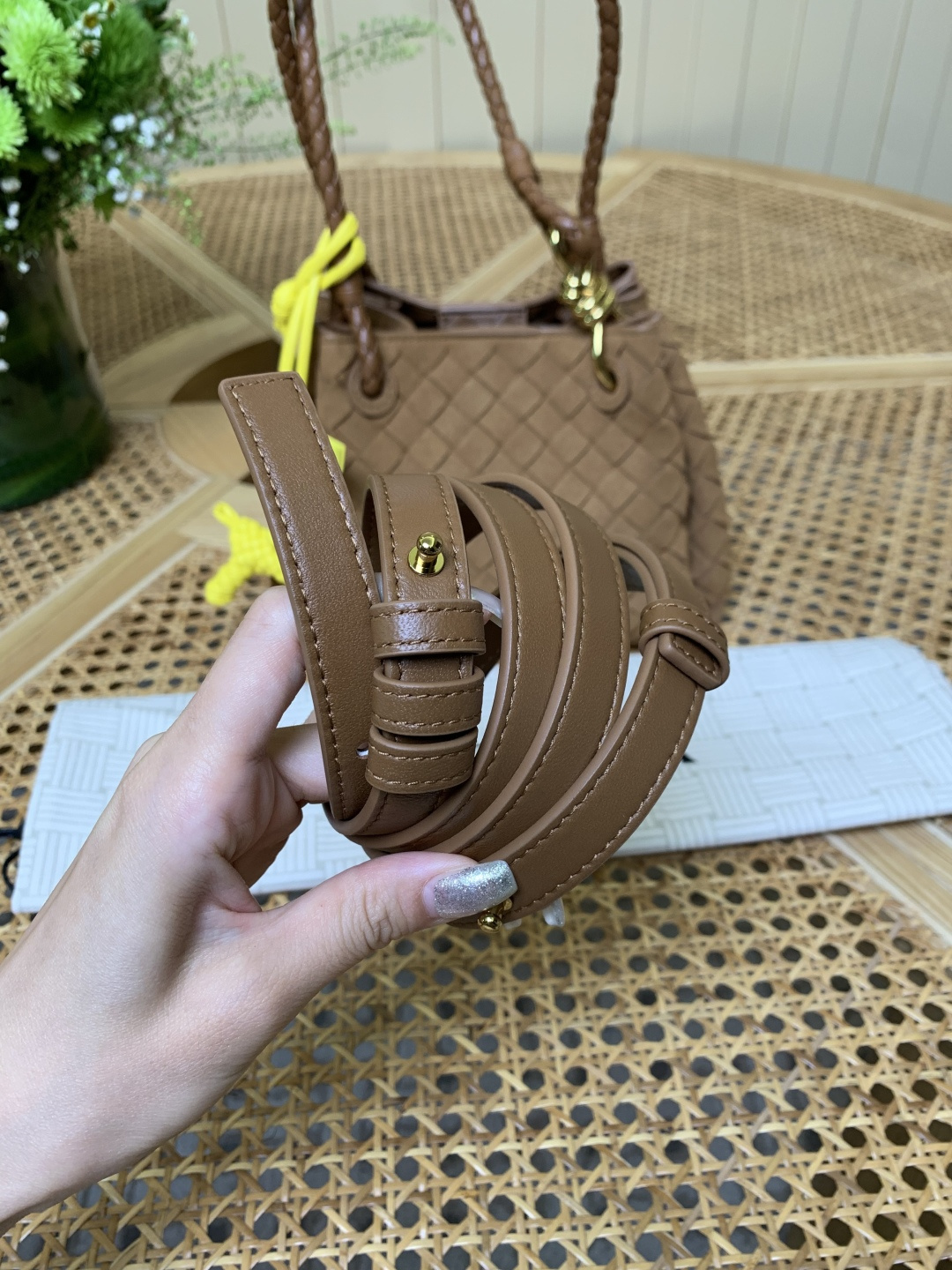这款包包是AAAAA 1:1 质量 (非常棒). 使用了和原版一模一样的材料. 商标部分也保持了和葆蝶家/Bottega Veneta一样. 图片拍摄是实物包包拍摄, 您所收到的实物保证和我们图片一模一样.