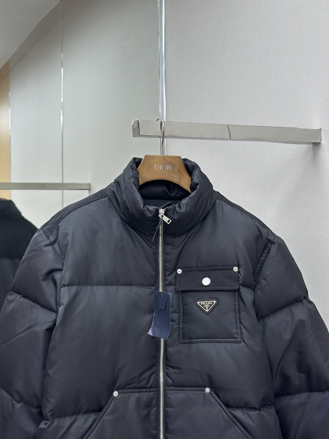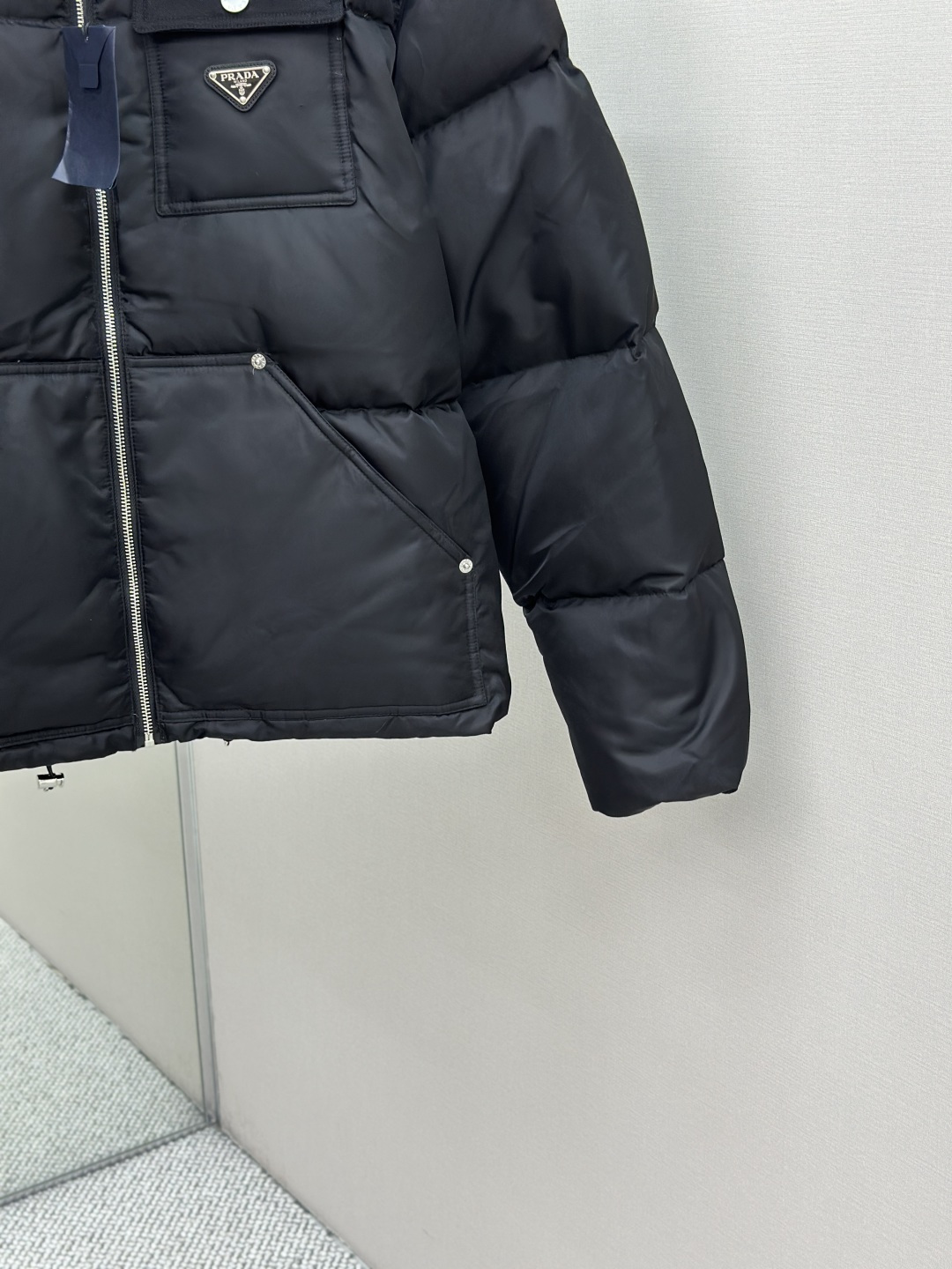 这款衣服是AAAAA 1:1 质量 (非常棒). 使用了和原版一模一样的材料. 商标部分也保持了和普拉达/Prada一样. 图片拍摄是实物衣服拍摄, 您所收到的实物保证和我们图片一模一样.
