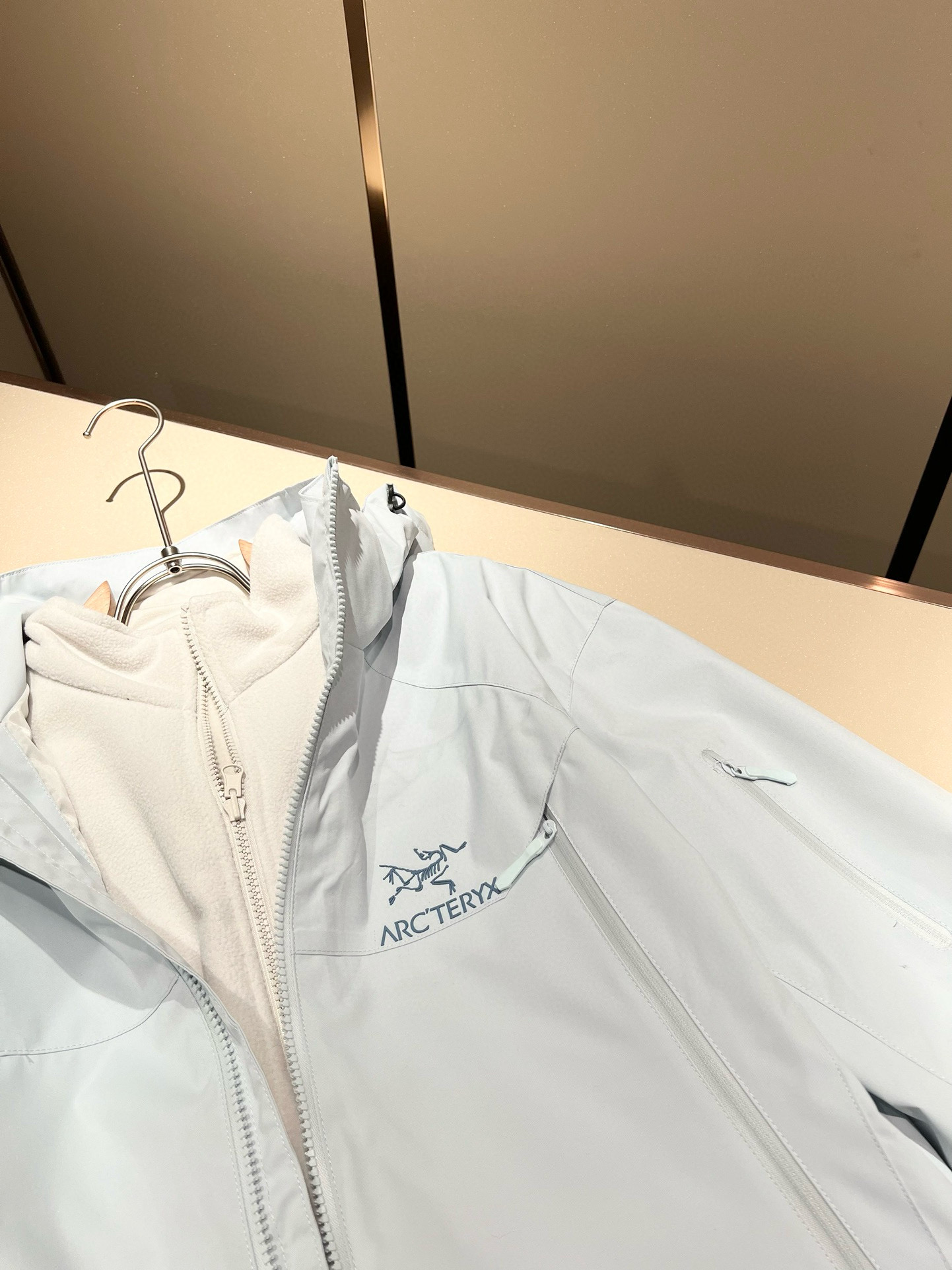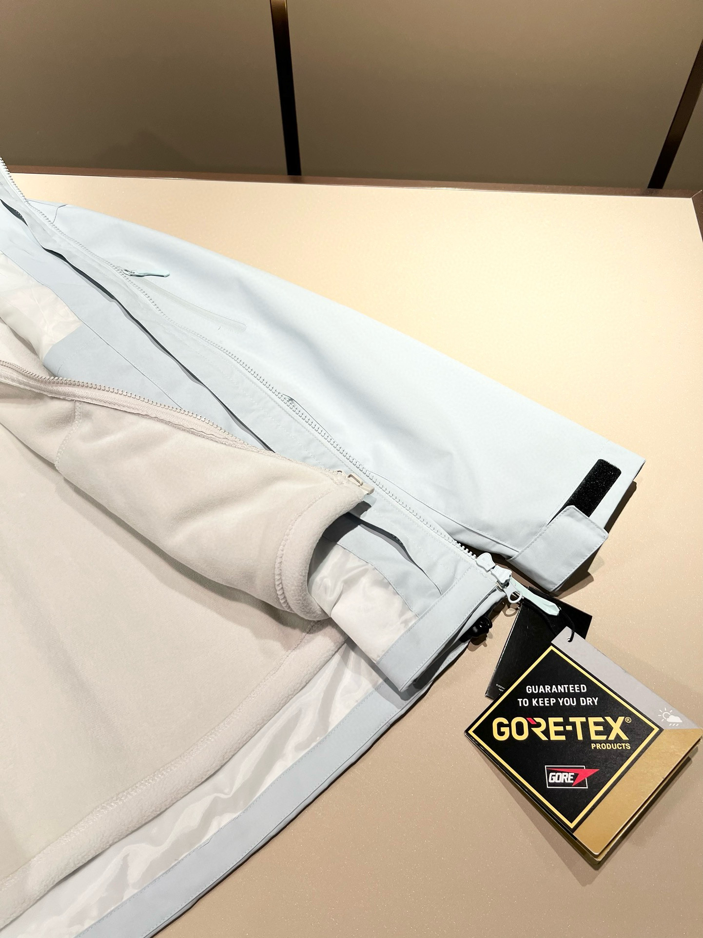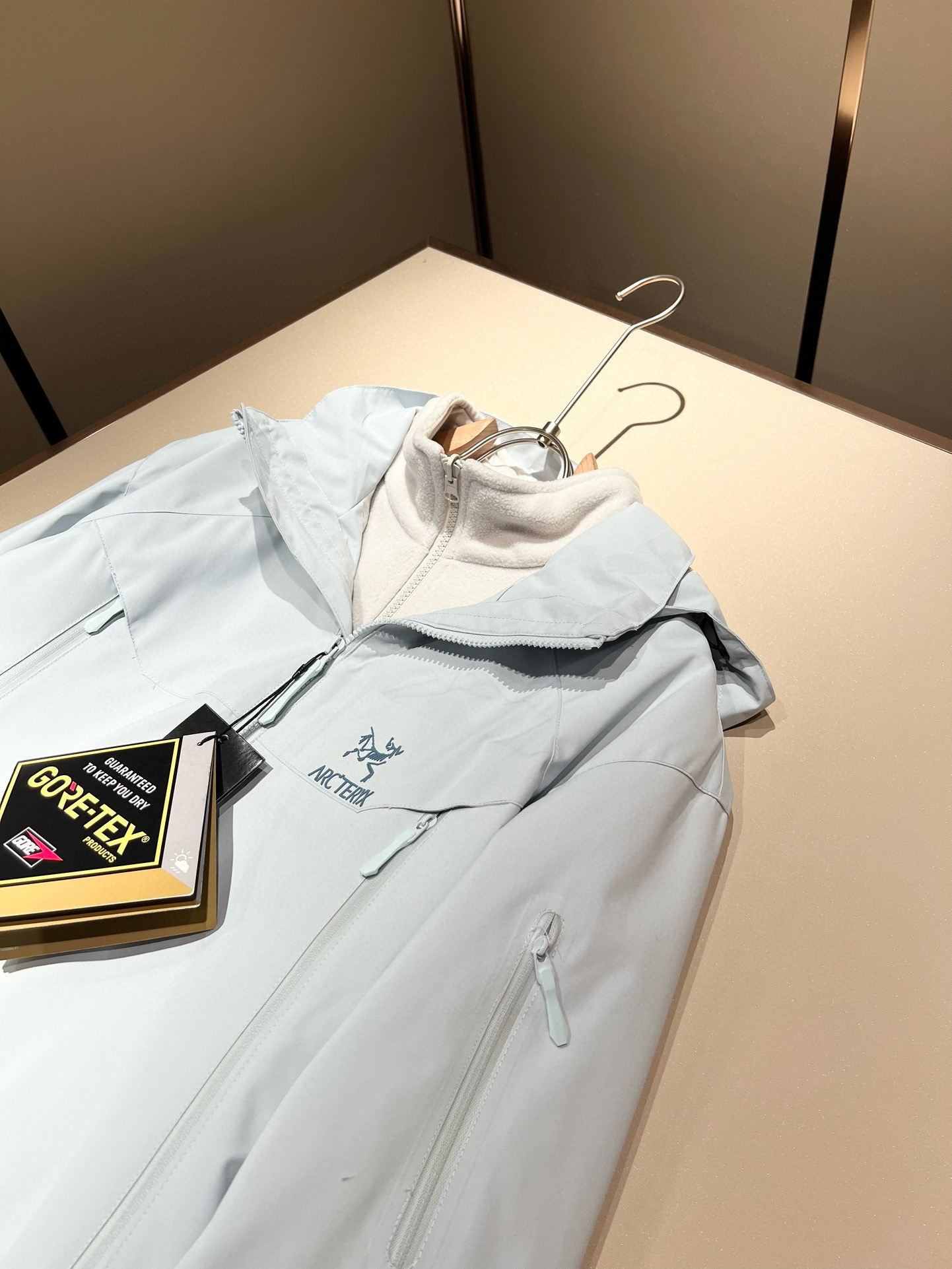 这款衣服是AAAAA 1:1 质量 (非常棒). 使用了和原版一模一样的材料. 商标部分也保持了和ARC'TERYX一样. 图片拍摄是实物衣服拍摄, 您所收到的实物保证和我们图片一模一样.