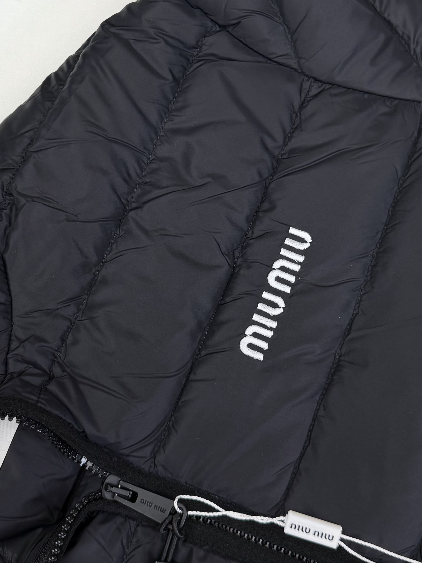 这款衣服是AAAAA 1:1 质量 (非常棒). 使用了和原版一模一样的材料. 商标部分也保持了和缪缪/Miu Miu一样. 图片拍摄是实物衣服拍摄, 您所收到的实物保证和我们图片一模一样.