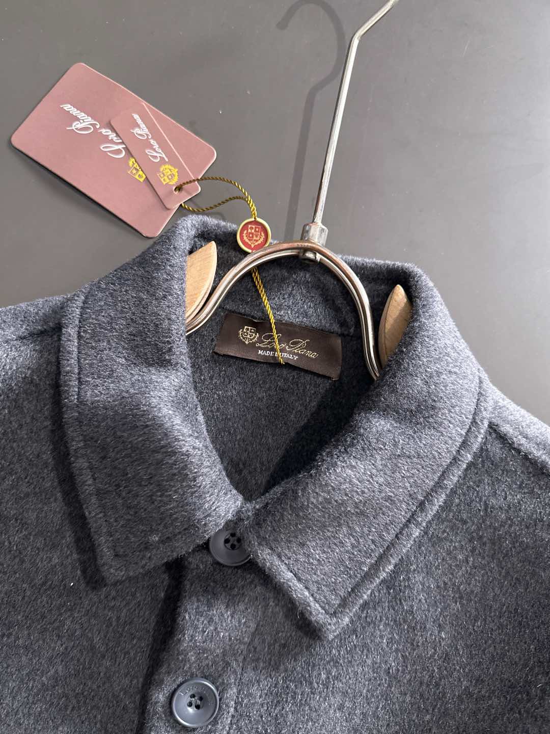 这款衣服是AAAAA 1:1 质量 (非常棒). 使用了和原版一模一样的材料. 商标部分也保持了和洛罗皮亚纳/Loro Piana一样. 图片拍摄是实物衣服拍摄, 您所收到的实物保证和我们图片一模一样.