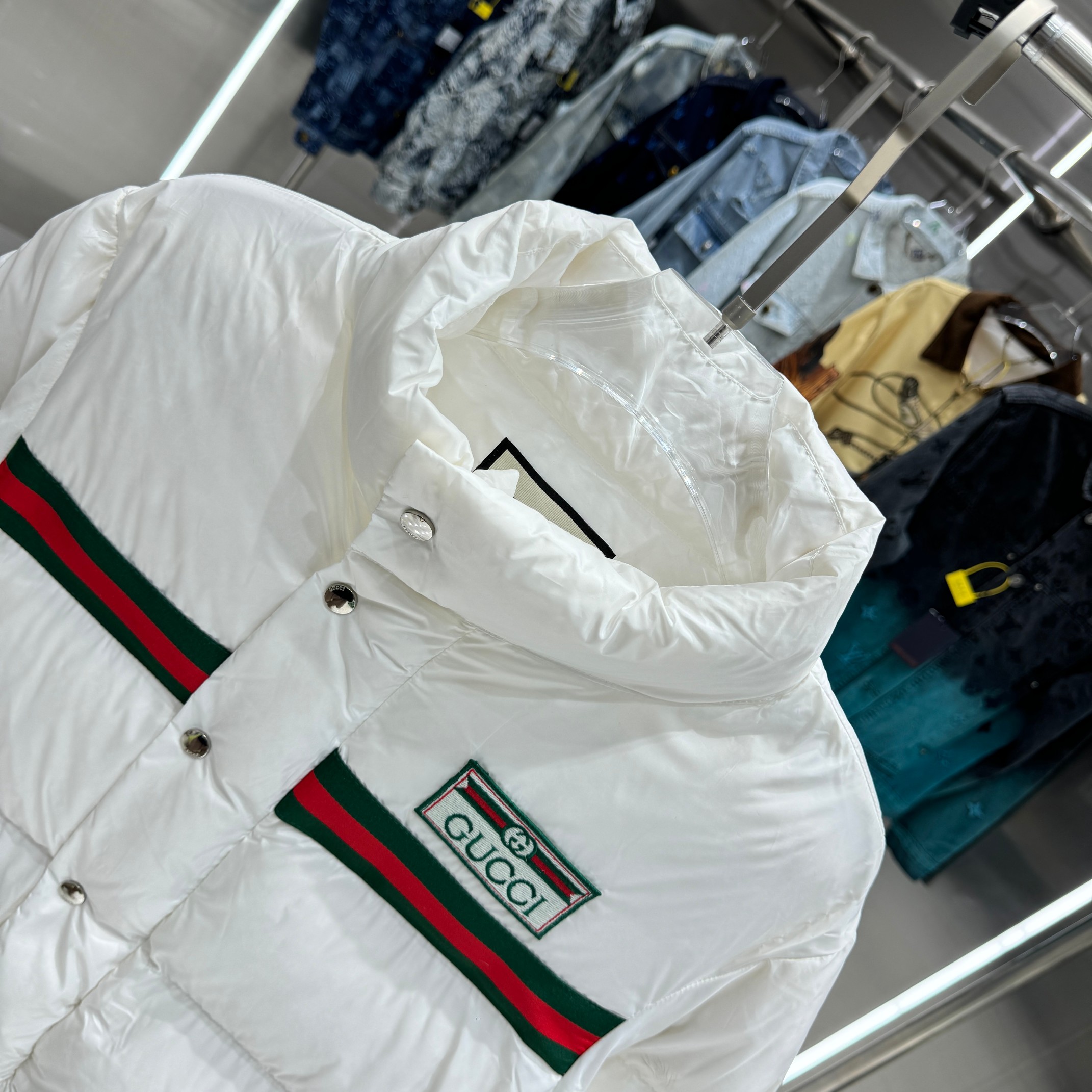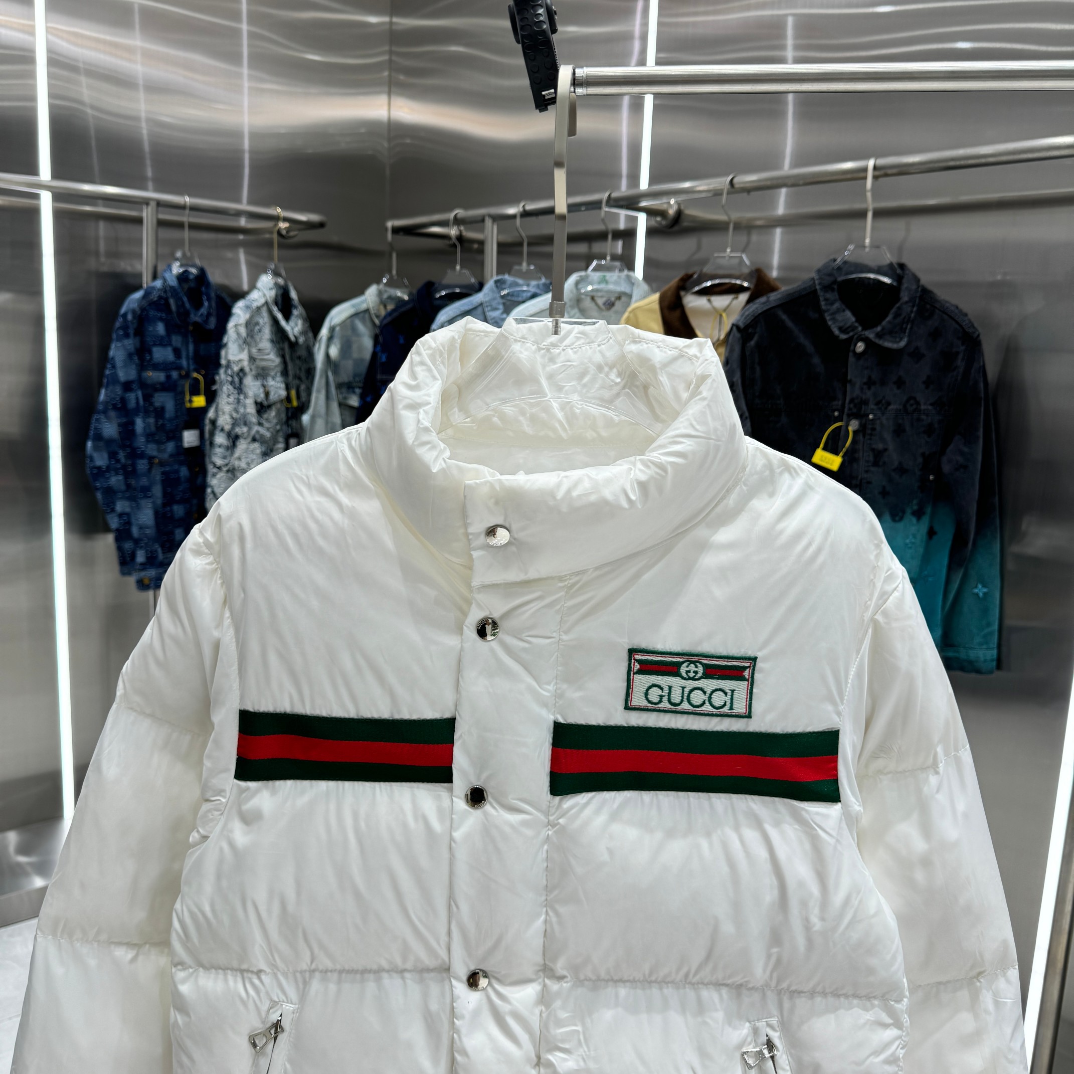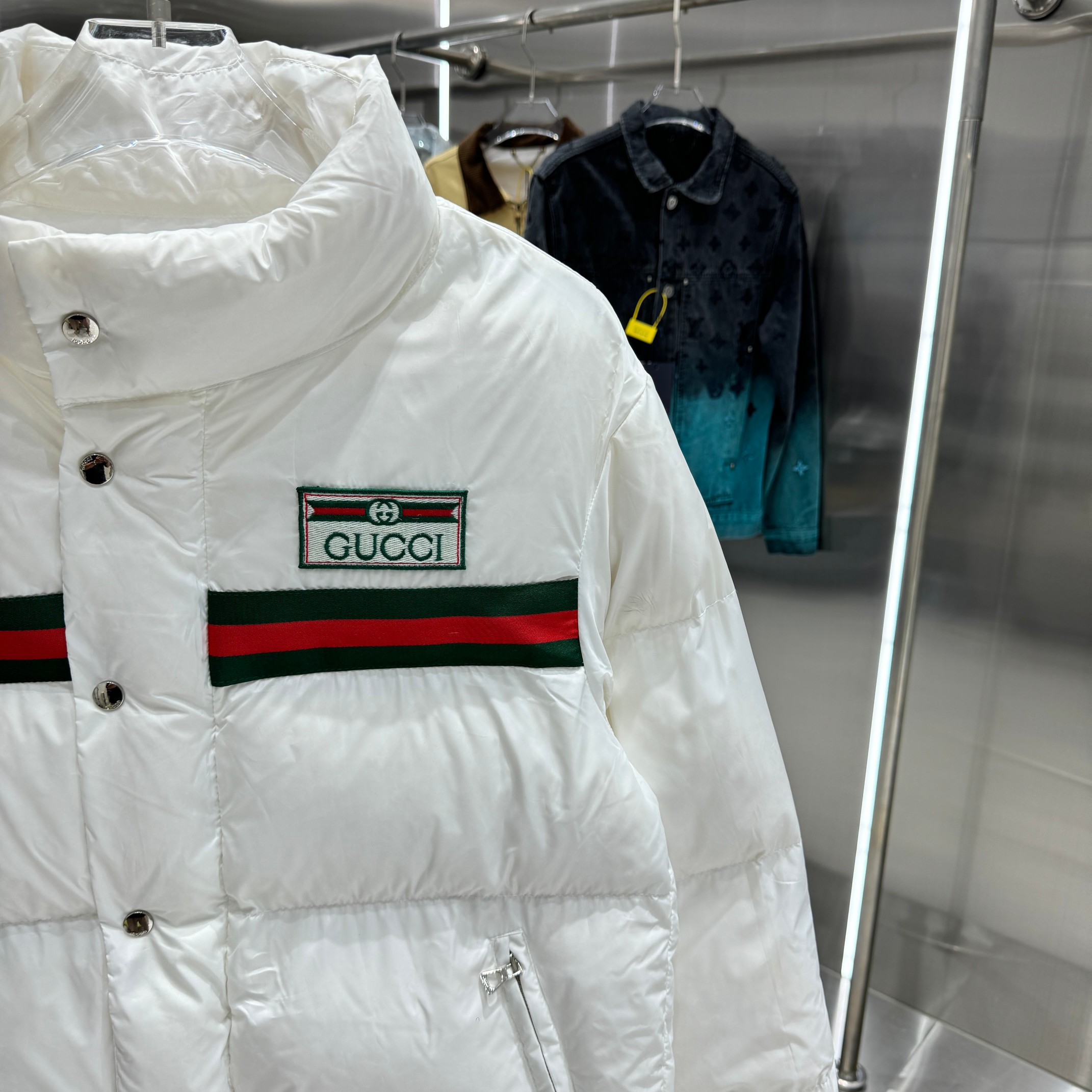 这款衣服是AAAAA 1:1 质量 (非常棒). 使用了和原版一模一样的材料. 商标部分也保持了和古奇/Gucci一样. 图片拍摄是实物衣服拍摄, 您所收到的实物保证和我们图片一模一样.