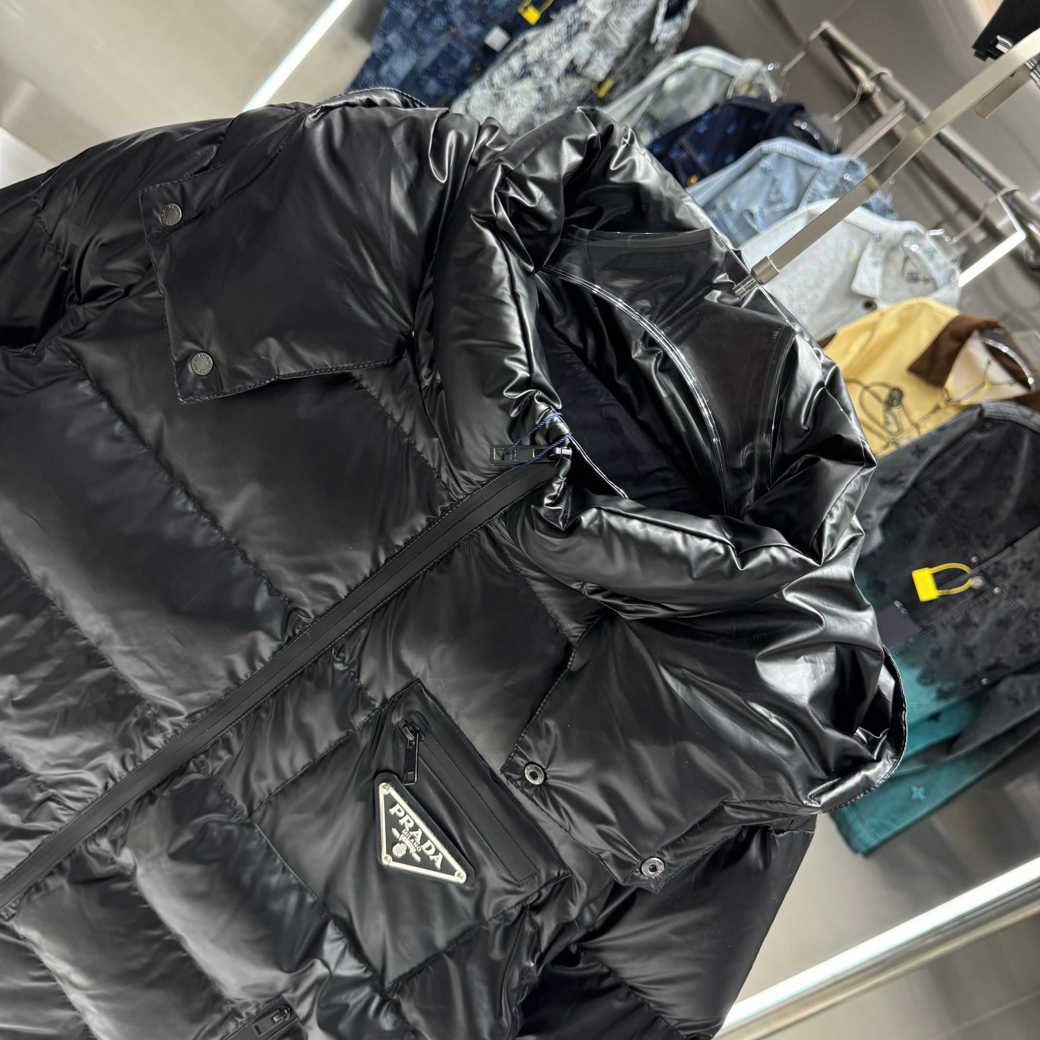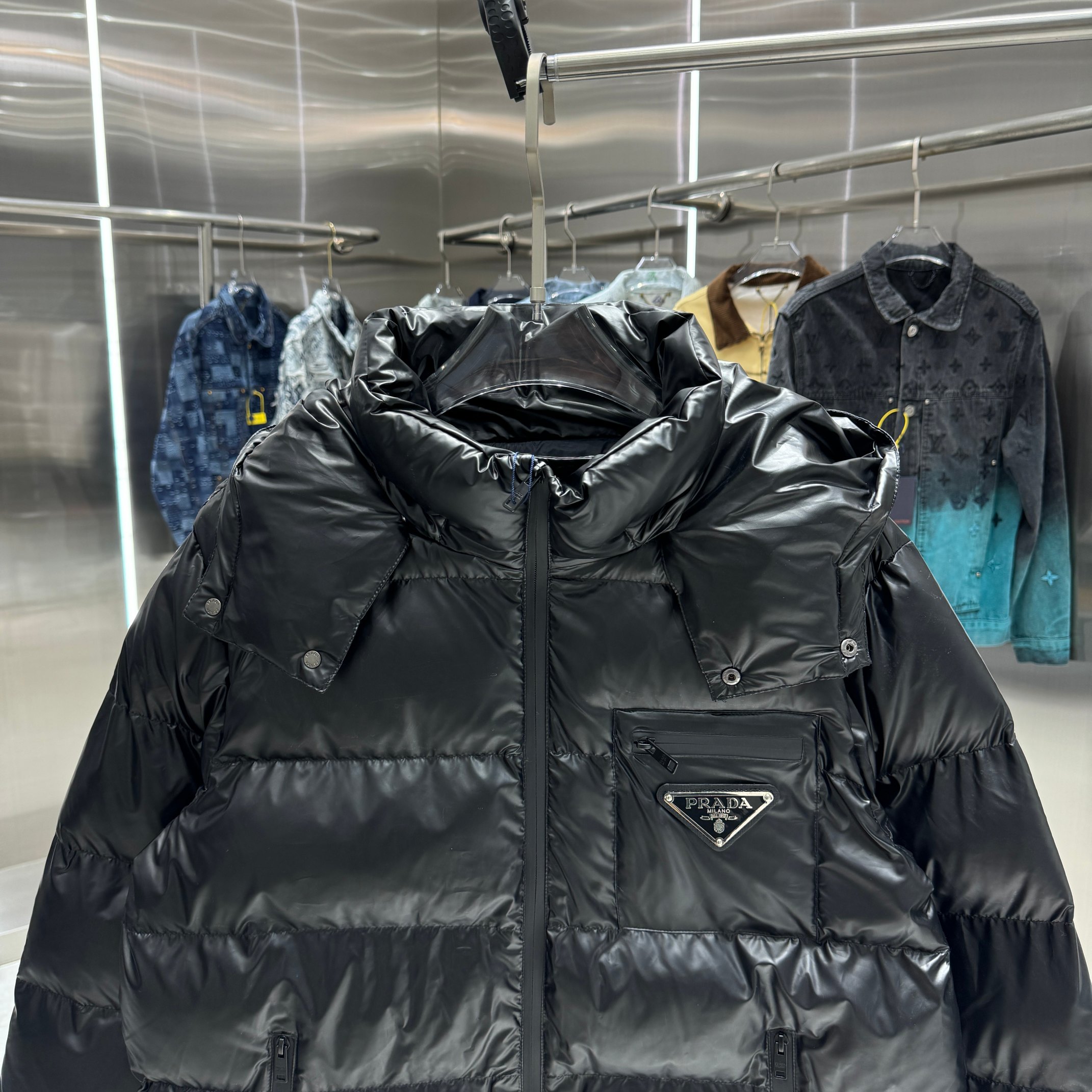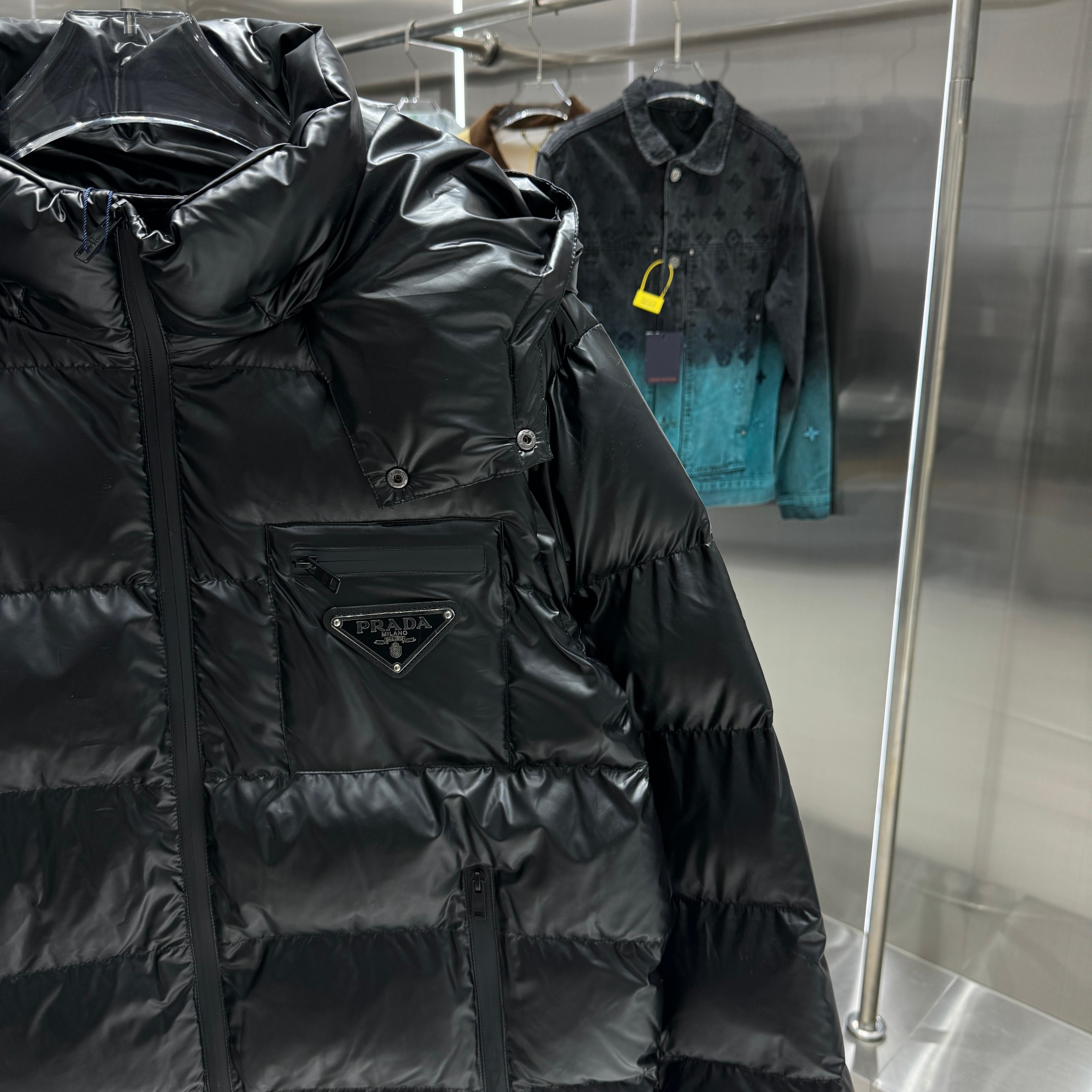 这款衣服是AAAAA 1:1 质量 (非常棒). 使用了和原版一模一样的材料. 商标部分也保持了和普拉达/Prada一样. 图片拍摄是实物衣服拍摄, 您所收到的实物保证和我们图片一模一样.
