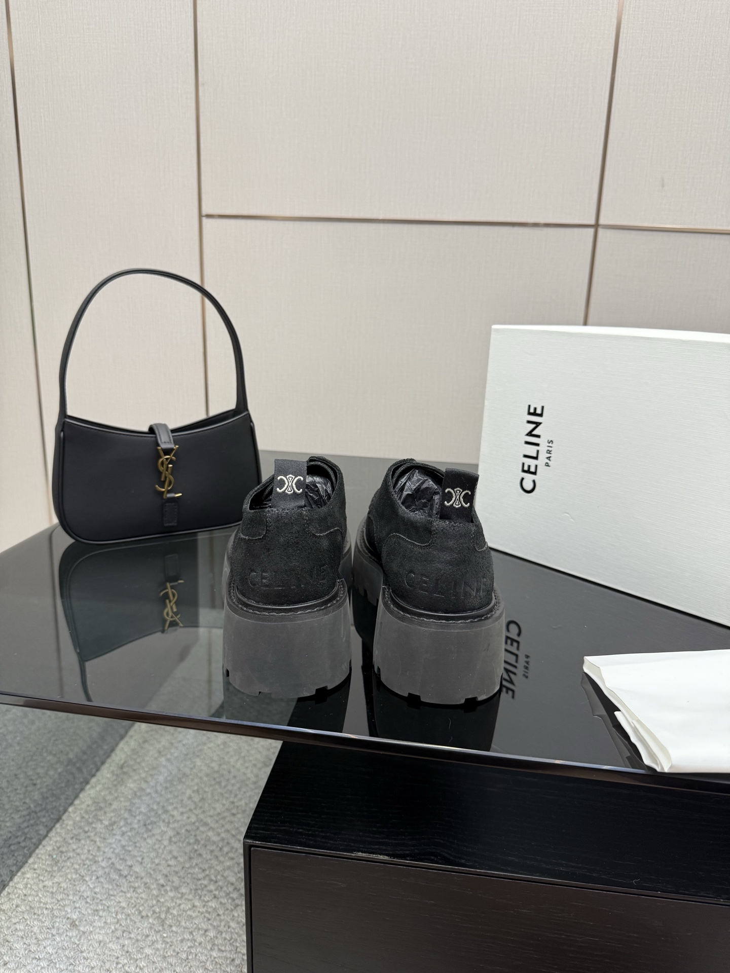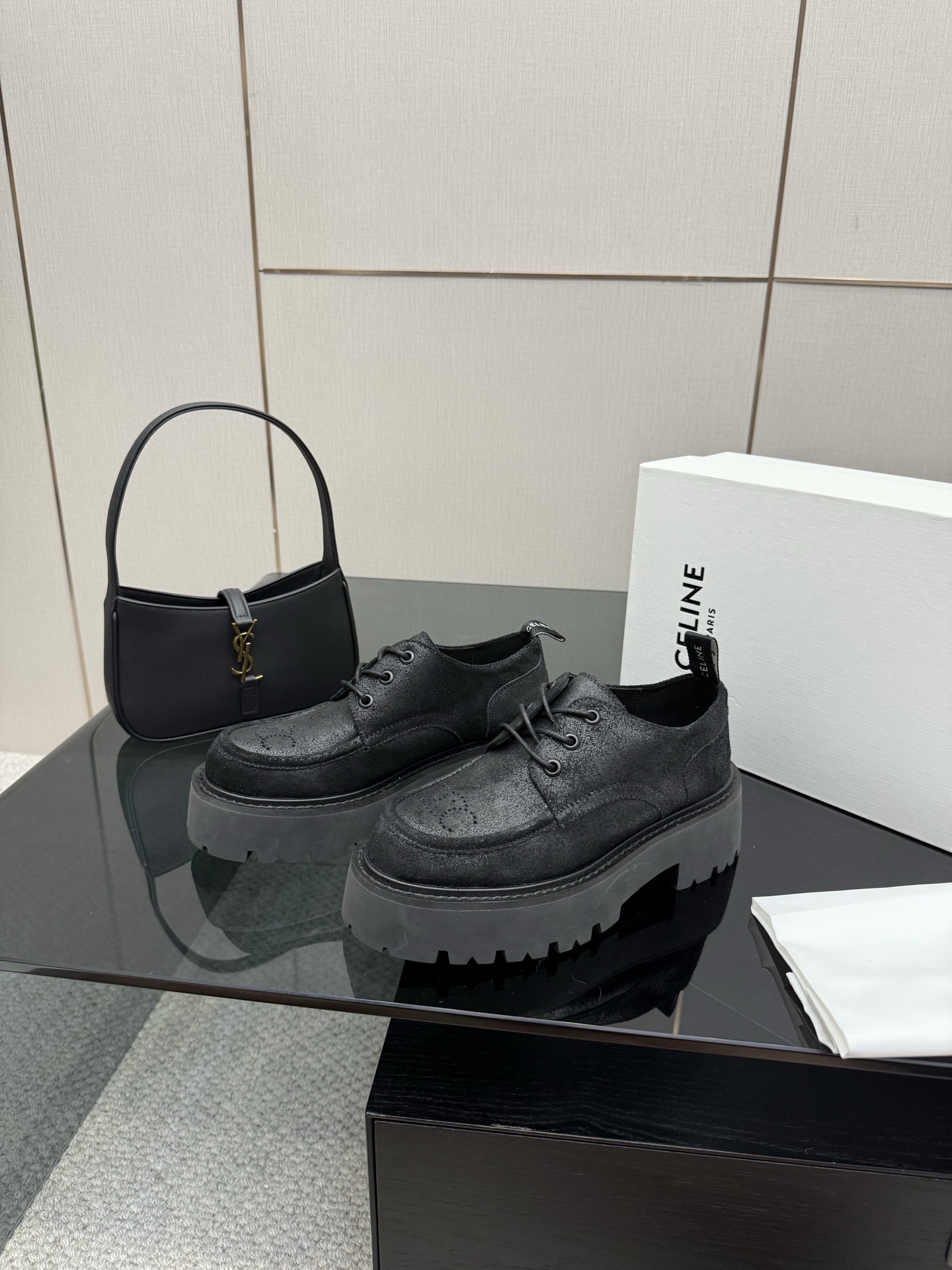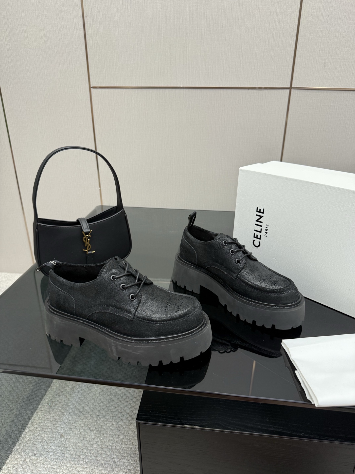 这款鞋子是AAAAA 1:1 质量 (非常棒). 使用了和原版一模一样的材料. 商标部分也保持了和思琳/Celine一样. 图片拍摄是实物鞋子拍摄, 您所收到的实物保证和我们图片一模一样.