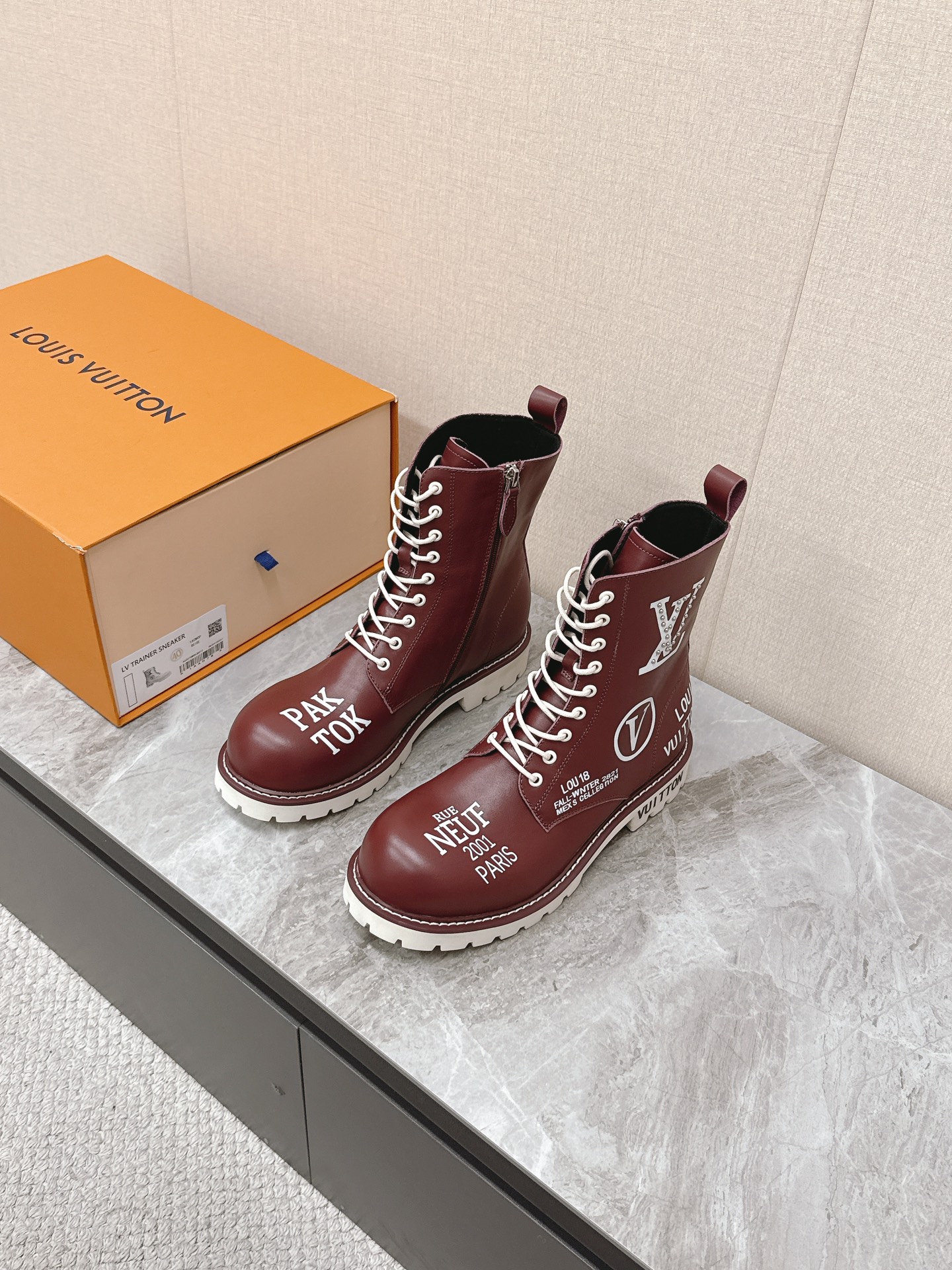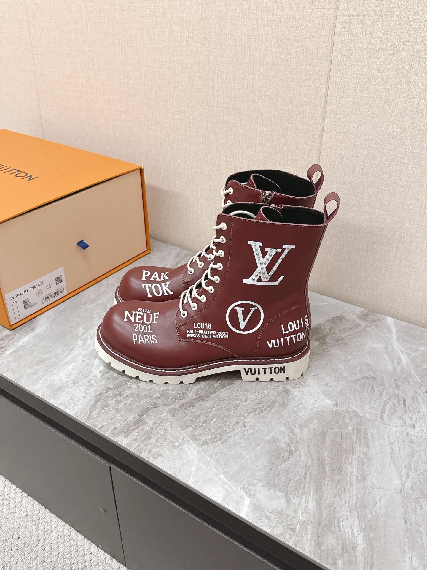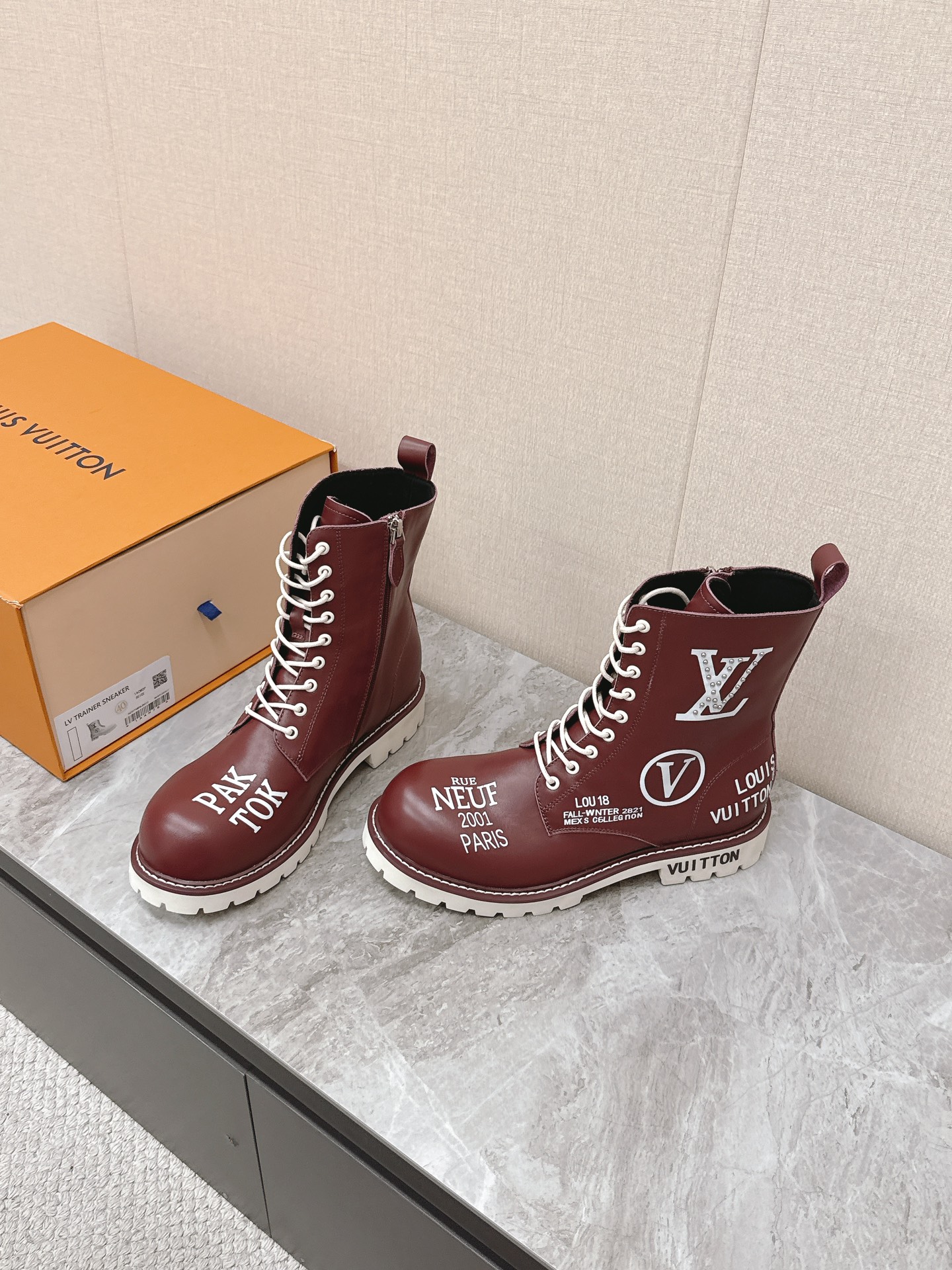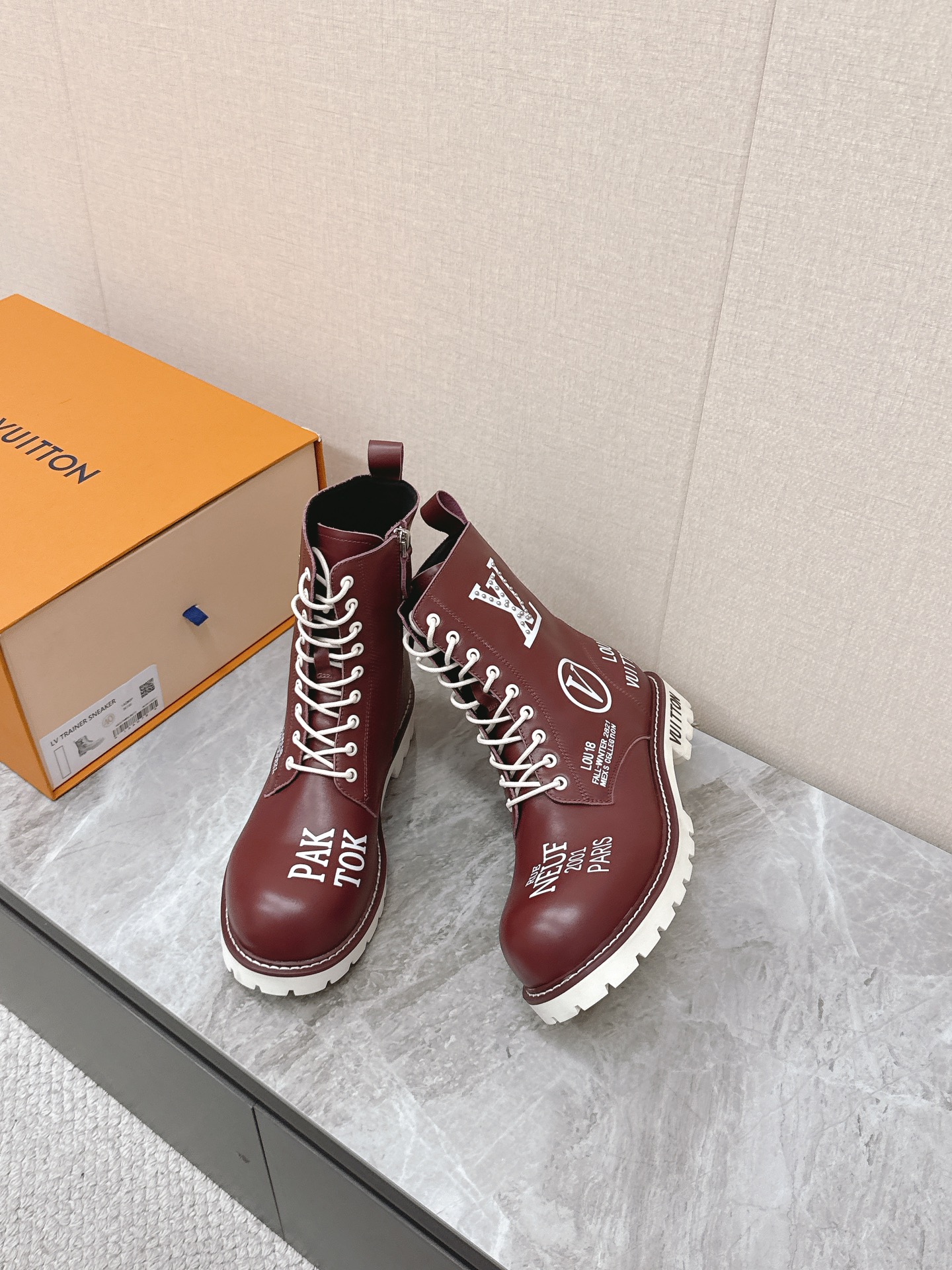这款鞋子是AAAAA 1:1 质量 (非常棒). 使用了和原版一模一样的材料. 商标部分也保持了和路易威登/Louis Vuitton一样. 图片拍摄是实物鞋子拍摄, 您所收到的实物保证和我们图片一模一样.
