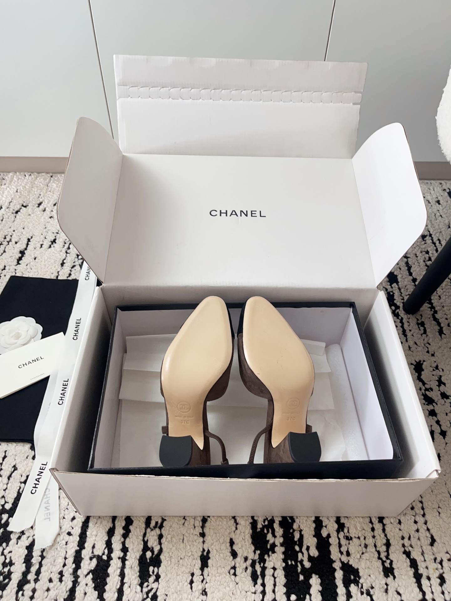 这款鞋子是AAAAA 1:1 质量 (非常棒). 使用了和原版一模一样的材料. 商标部分也保持了和香奈儿/Chanel一样. 图片拍摄是实物鞋子拍摄, 您所收到的实物保证和我们图片一模一样.