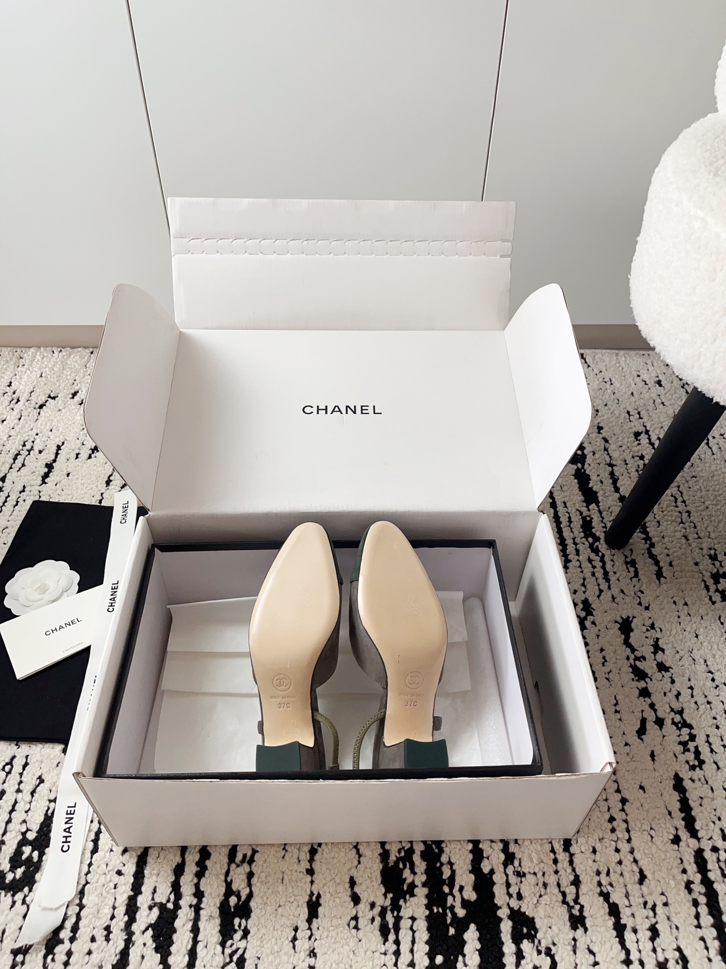 这款鞋子是AAAAA 1:1 质量 (非常棒). 使用了和原版一模一样的材料. 商标部分也保持了和香奈儿/Chanel一样. 图片拍摄是实物鞋子拍摄, 您所收到的实物保证和我们图片一模一样.