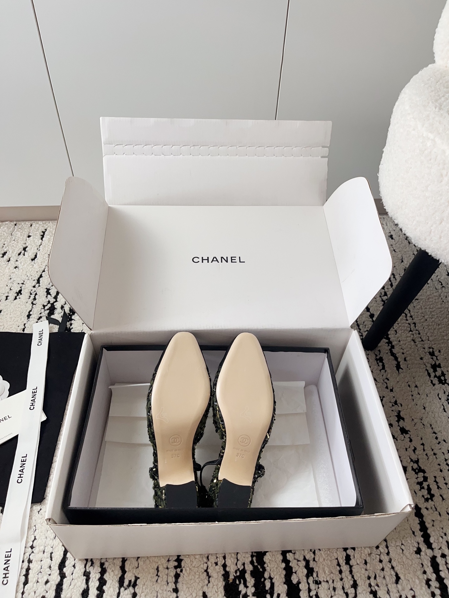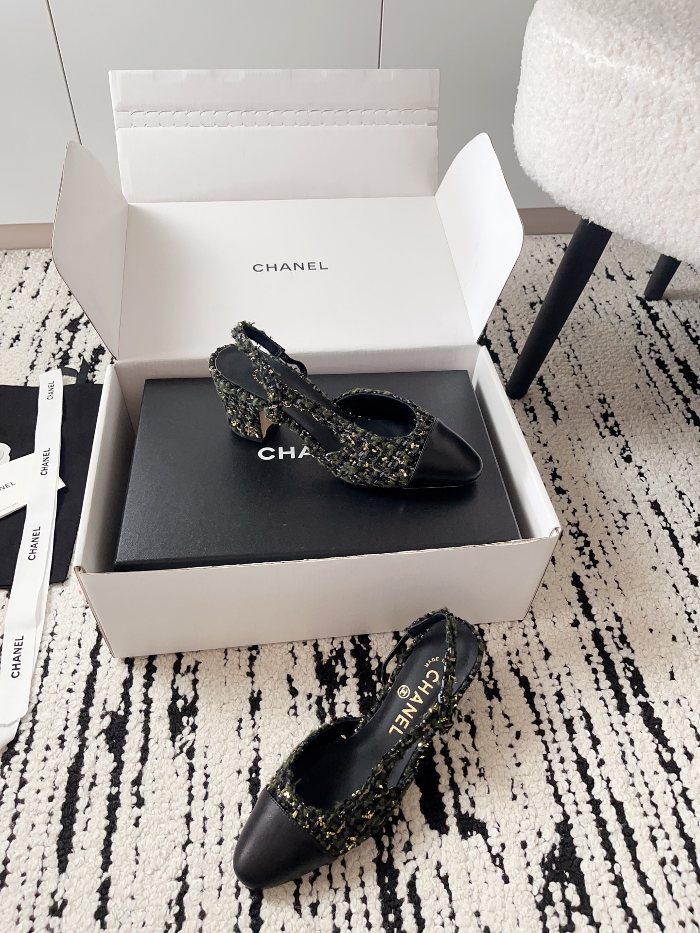 这款鞋子是AAAAA 1:1 质量 (非常棒). 使用了和原版一模一样的材料. 商标部分也保持了和香奈儿/Chanel一样. 图片拍摄是实物鞋子拍摄, 您所收到的实物保证和我们图片一模一样.