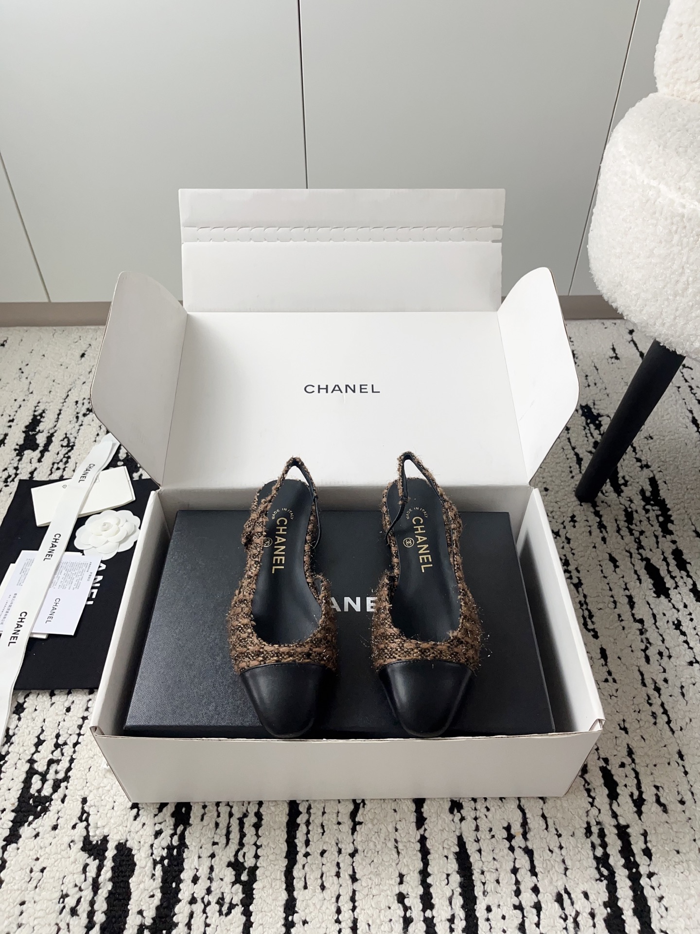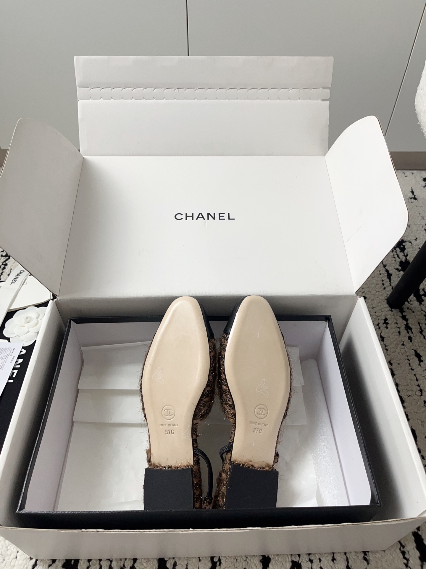 这款鞋子是AAAAA 1:1 质量 (非常棒). 使用了和原版一模一样的材料. 商标部分也保持了和香奈儿/Chanel一样. 图片拍摄是实物鞋子拍摄, 您所收到的实物保证和我们图片一模一样.