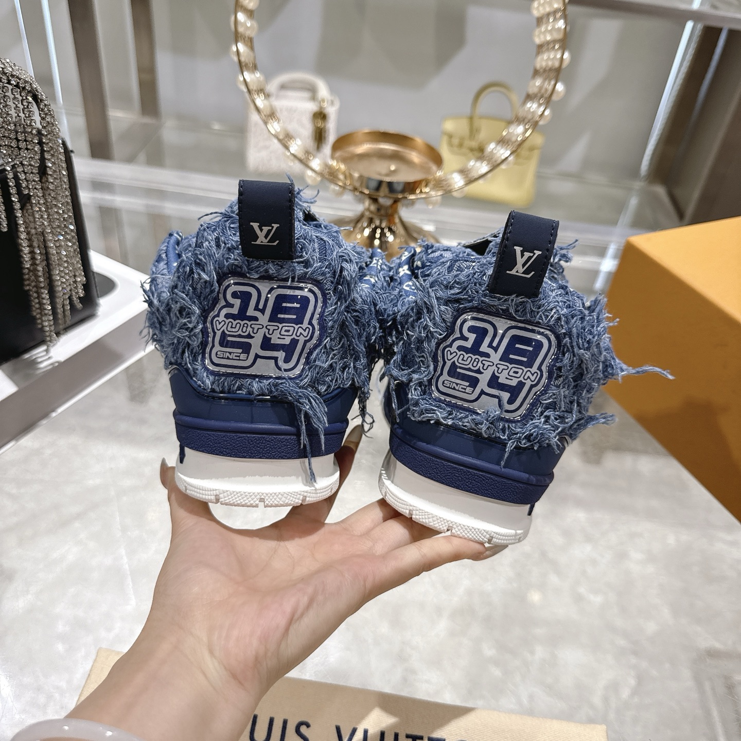 这款鞋子是AAAAA 1:1 质量 (非常棒). 使用了和原版一模一样的材料. 商标部分也保持了和路易威登/Louis Vuitton一样. 图片拍摄是实物鞋子拍摄, 您所收到的实物保证和我们图片一模一样.