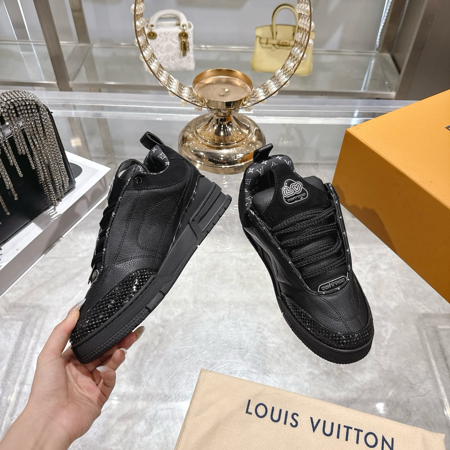 这款鞋子是AAAAA 1:1 质量 (非常棒). 使用了和原版一模一样的材料. 商标部分也保持了和路易威登/Louis Vuitton一样. 图片拍摄是实物鞋子拍摄, 您所收到的实物保证和我们图片一模一样.