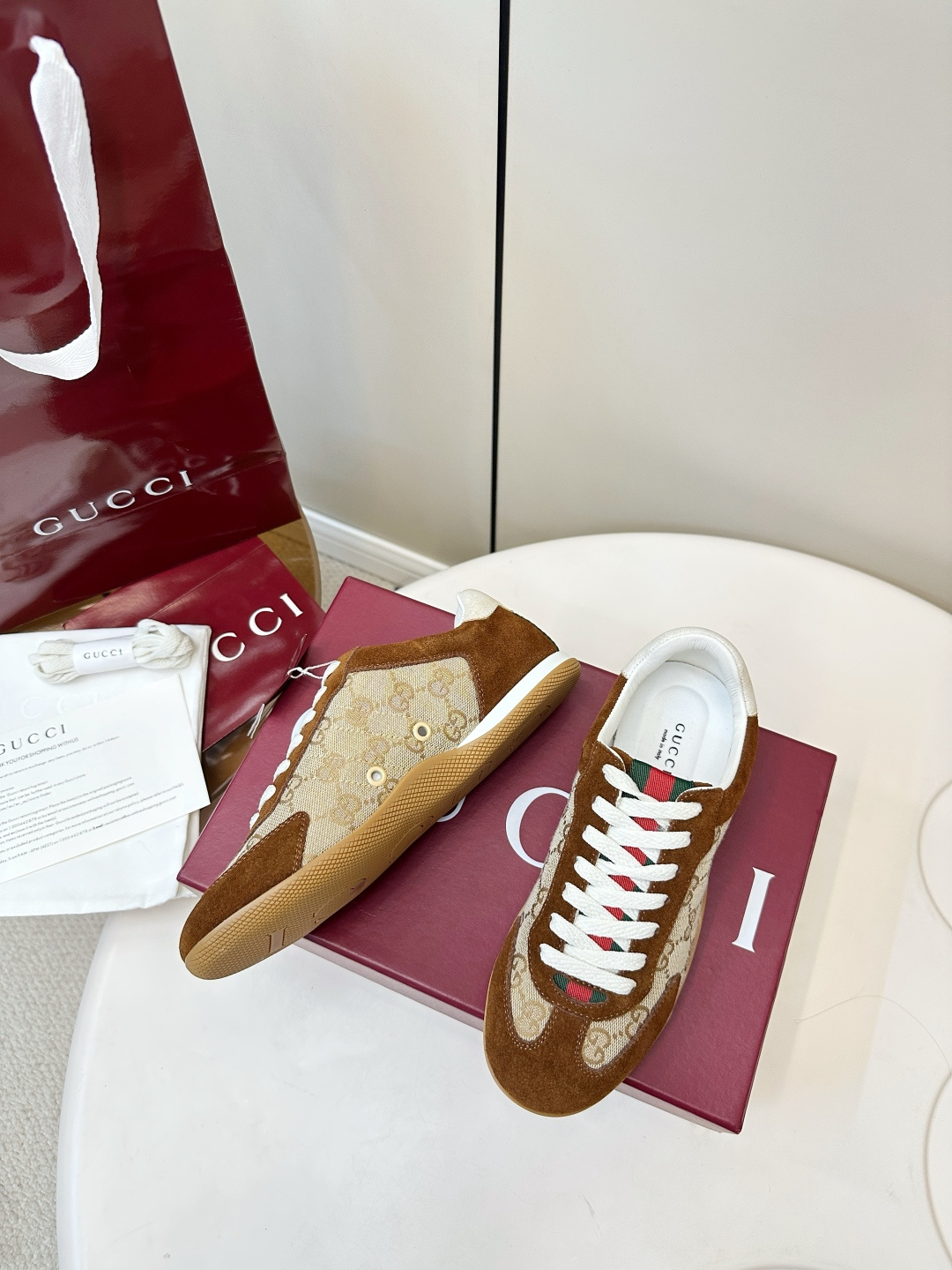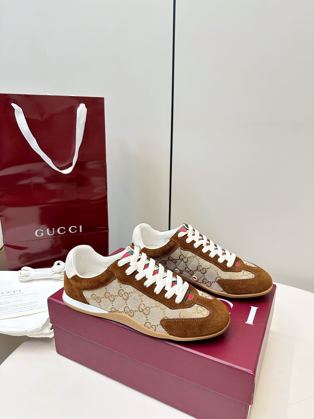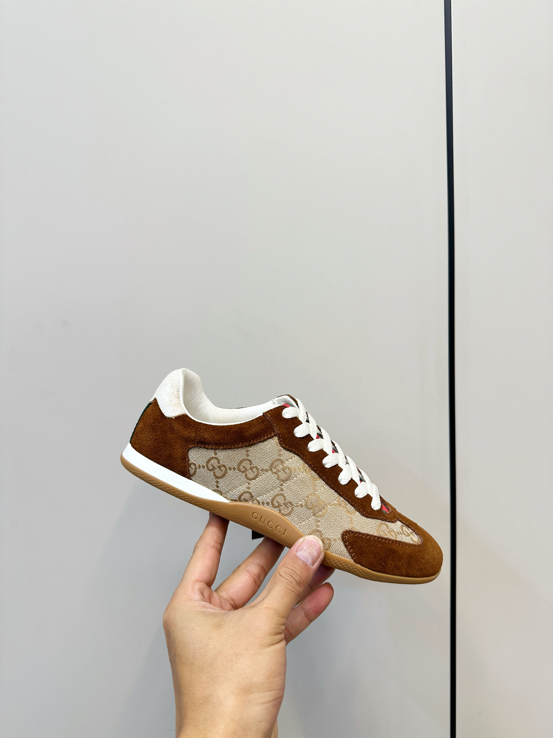 这款鞋子是AAAAA 1:1 质量 (非常棒). 使用了和原版一模一样的材料. 商标部分也保持了和古奇/Gucci一样. 图片拍摄是实物鞋子拍摄, 您所收到的实物保证和我们图片一模一样.