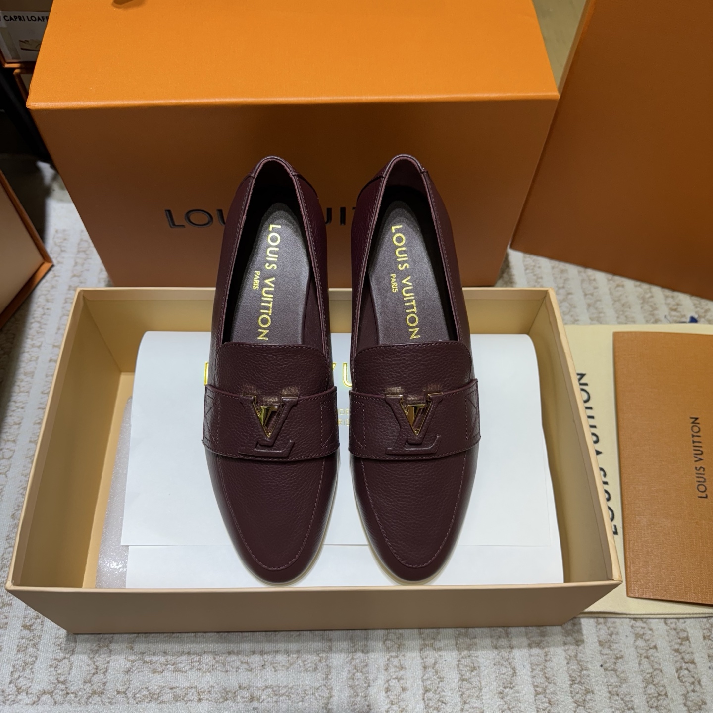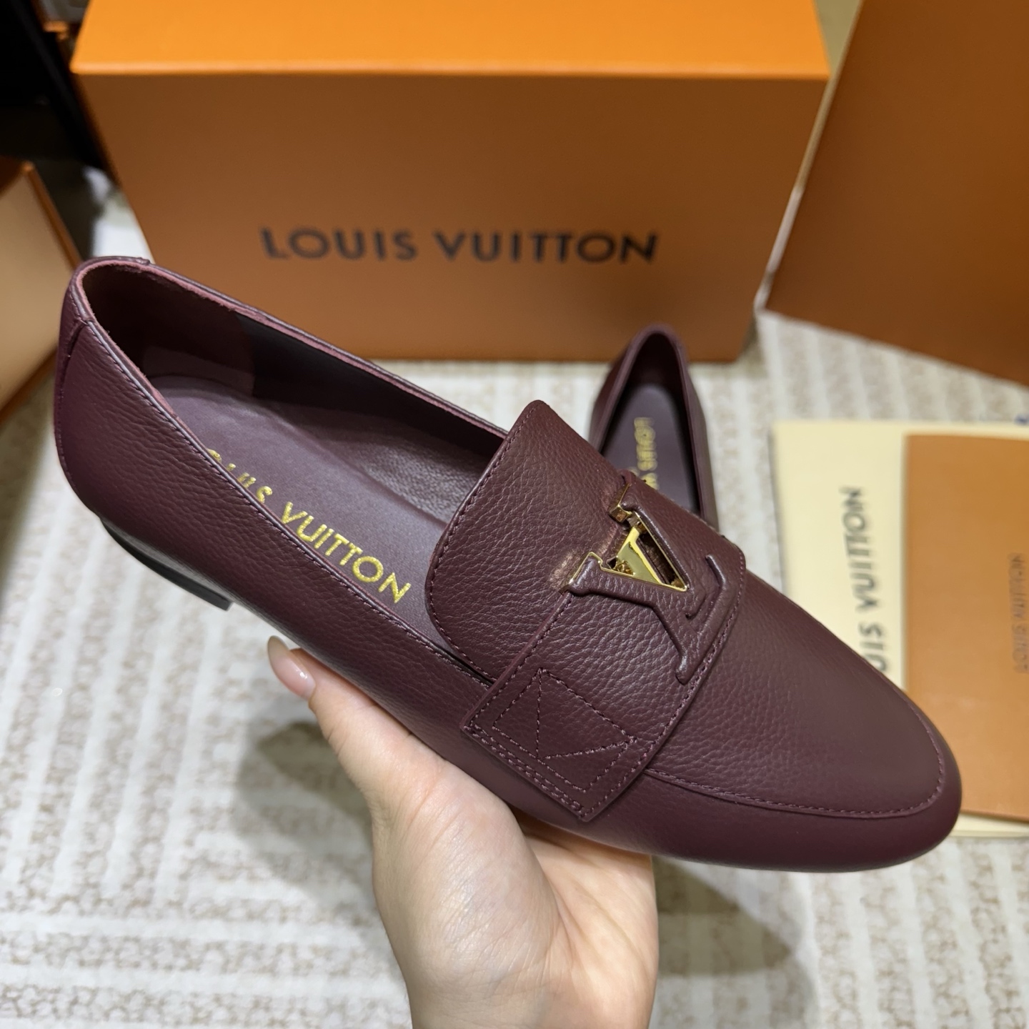 这款鞋子是AAAAA 1:1 质量 (非常棒). 使用了和原版一模一样的材料. 商标部分也保持了和路易威登/Louis Vuitton一样. 图片拍摄是实物鞋子拍摄, 您所收到的实物保证和我们图片一模一样.