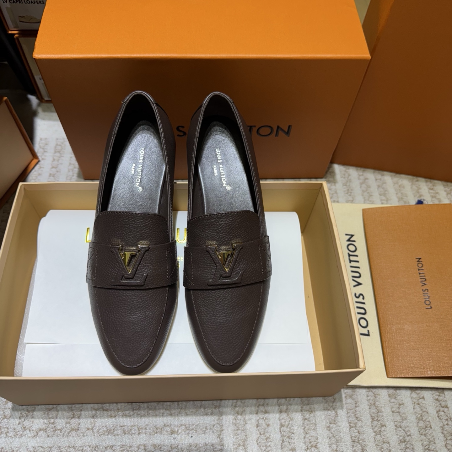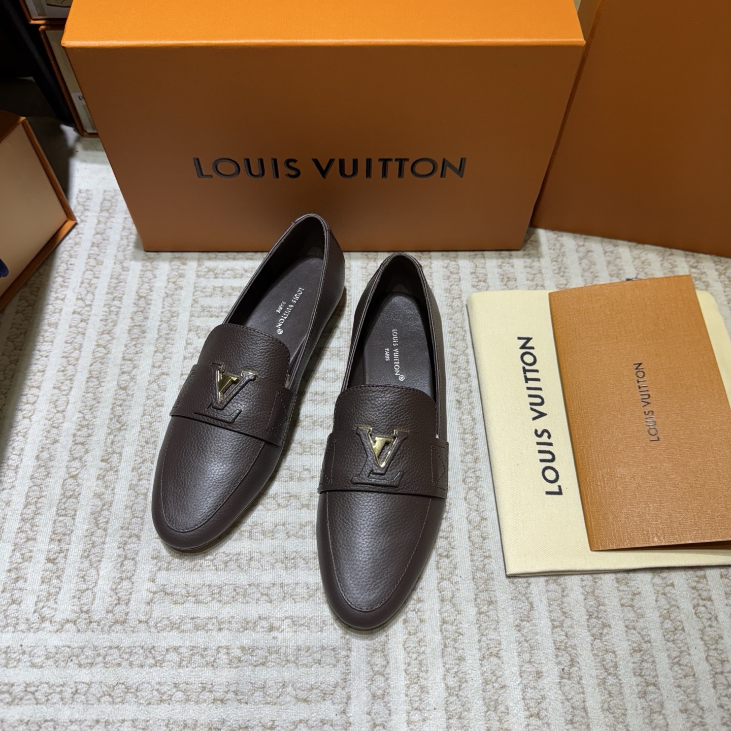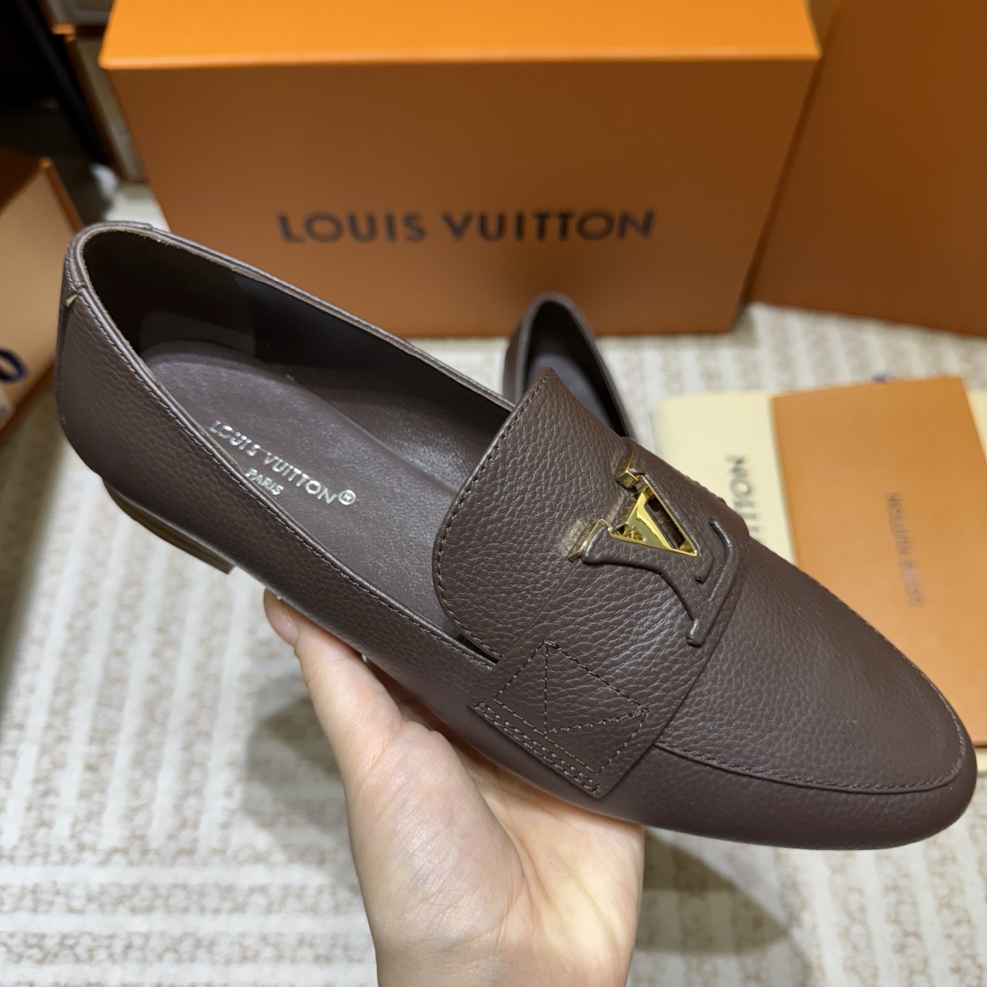 这款鞋子是AAAAA 1:1 质量 (非常棒). 使用了和原版一模一样的材料. 商标部分也保持了和路易威登/Louis Vuitton一样. 图片拍摄是实物鞋子拍摄, 您所收到的实物保证和我们图片一模一样.