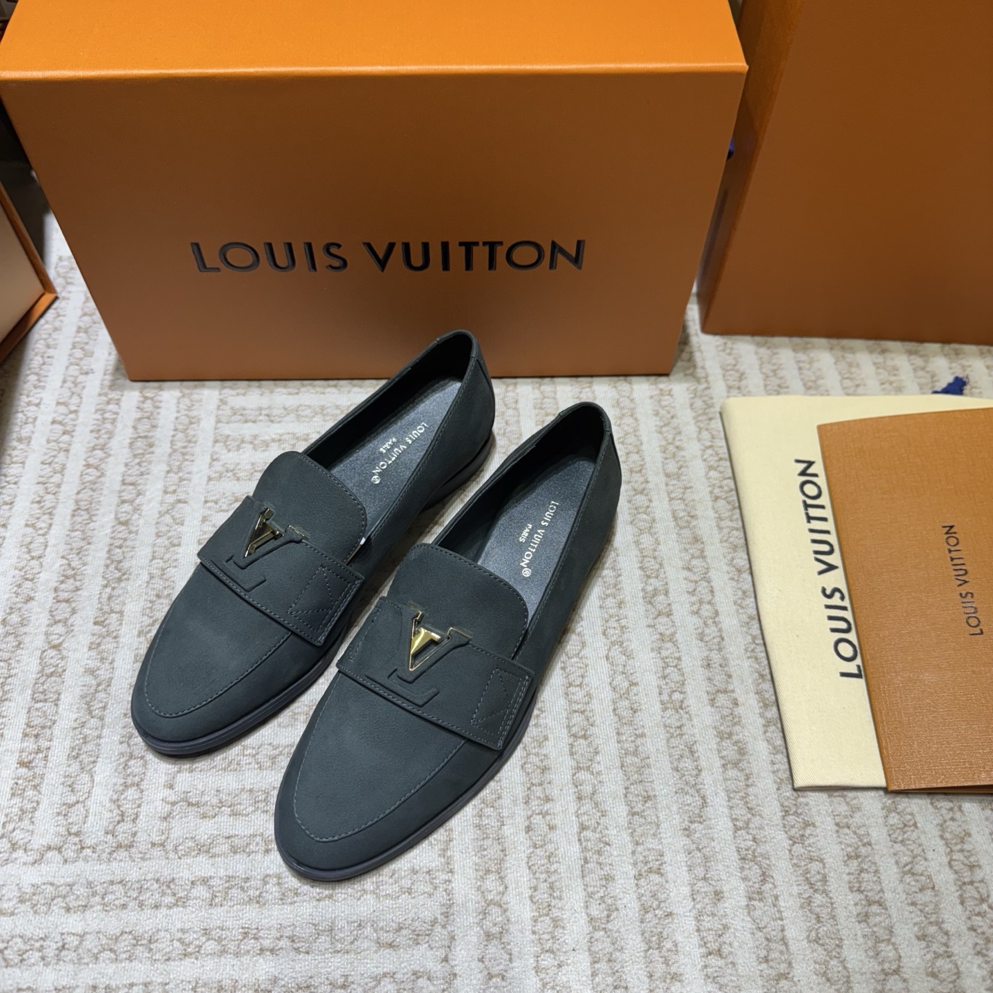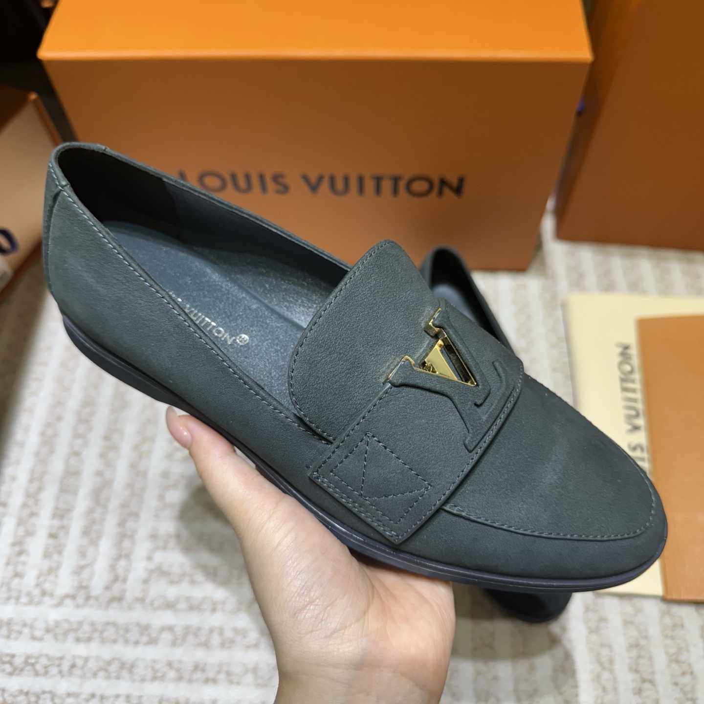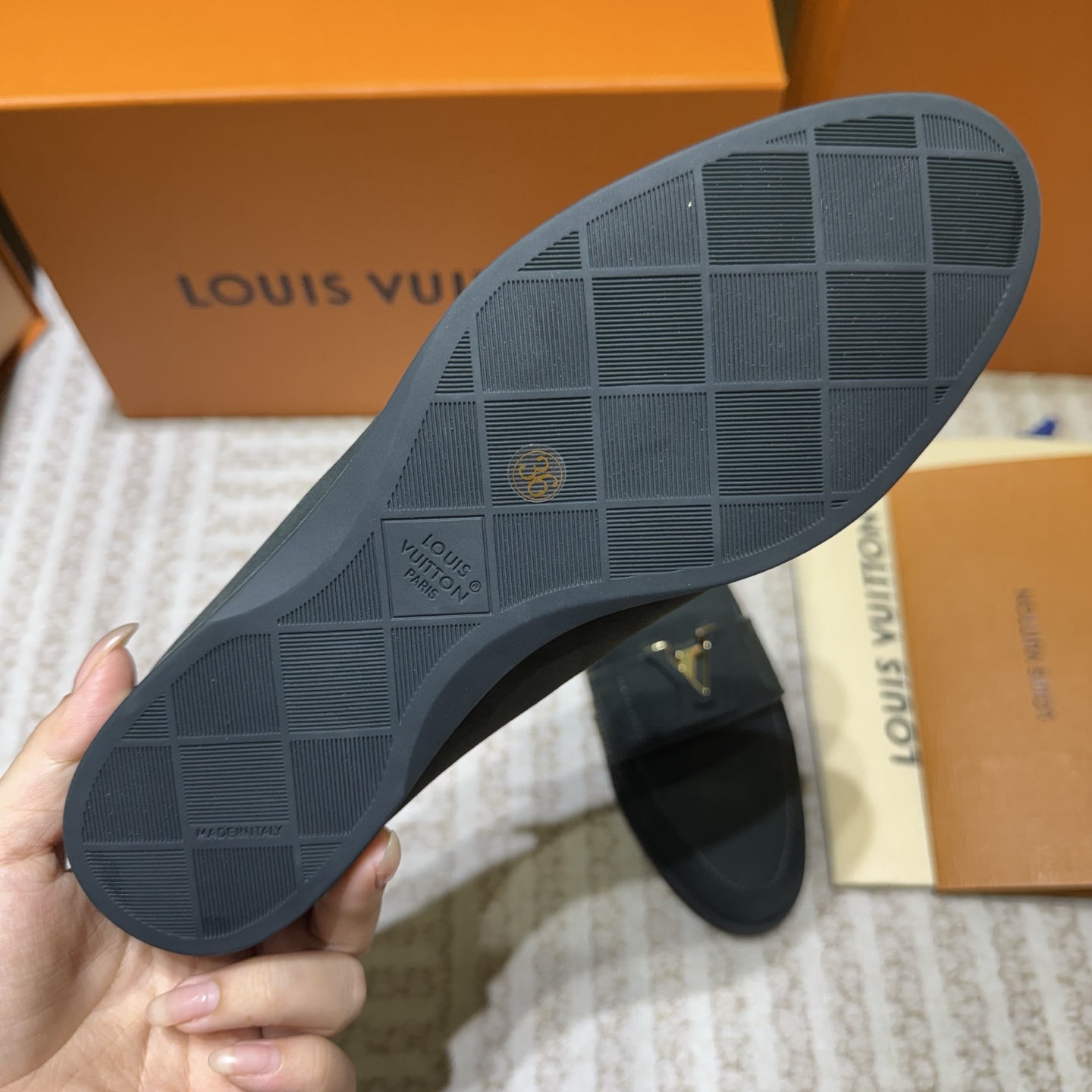 这款鞋子是AAAAA 1:1 质量 (非常棒). 使用了和原版一模一样的材料. 商标部分也保持了和路易威登/Louis Vuitton一样. 图片拍摄是实物鞋子拍摄, 您所收到的实物保证和我们图片一模一样.